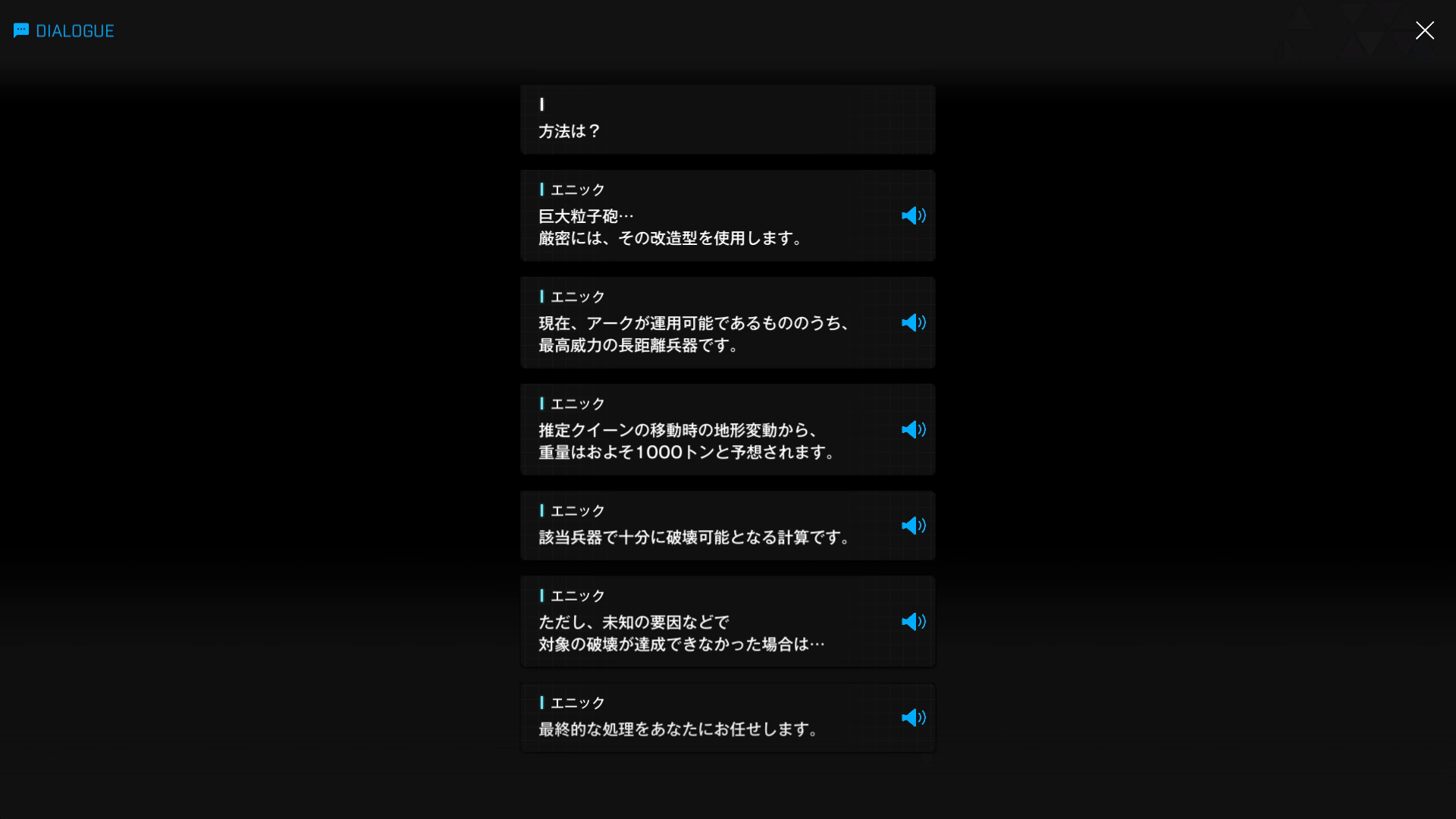 つまり、本来であれば『上記SSのデータで計算しなければならない』のに、エニックは『1の一般品で得たデータを基に試算』しています → 1000トン発言の時点で、メティスはおろか、アークに帰還中のイージス部隊含め、誰も2のサンプルを持ち帰っていない = データ分析すら開始していない & そのようなものがあることすら知りません
