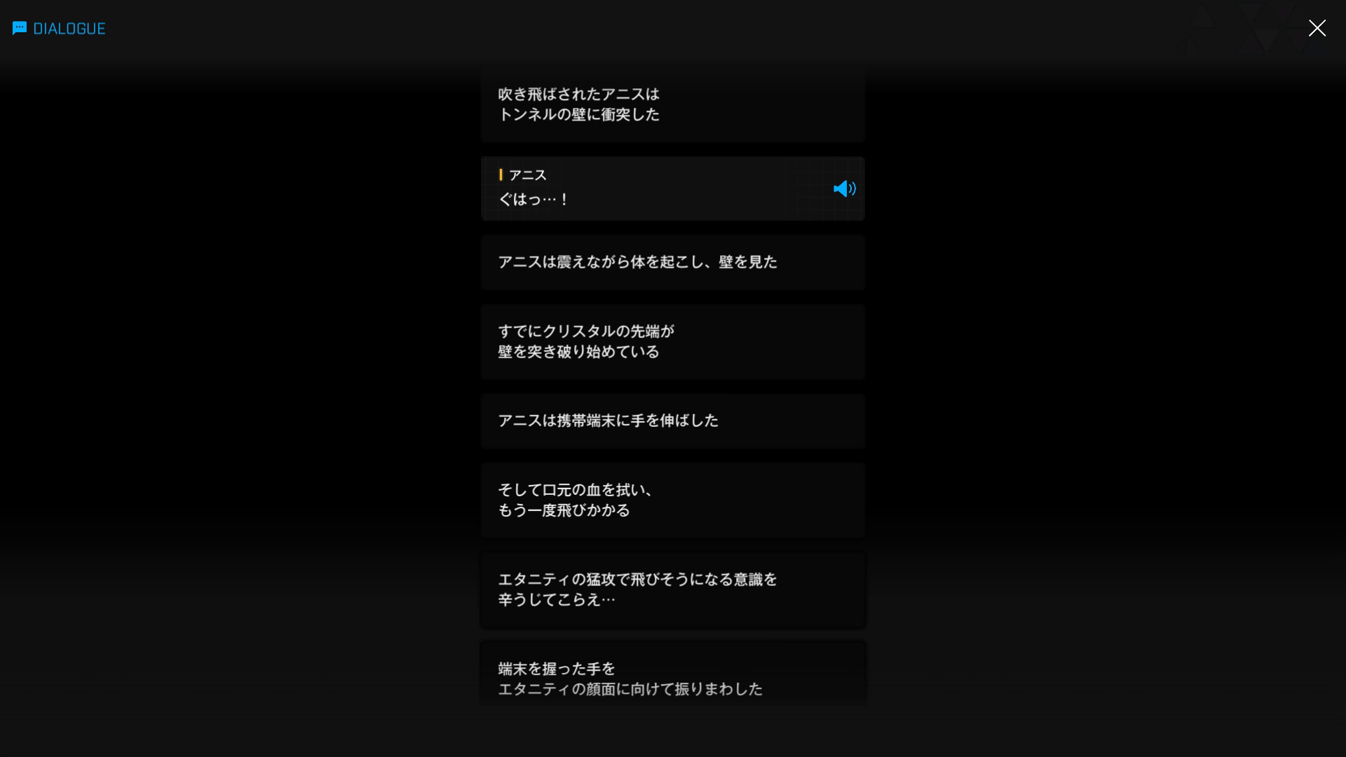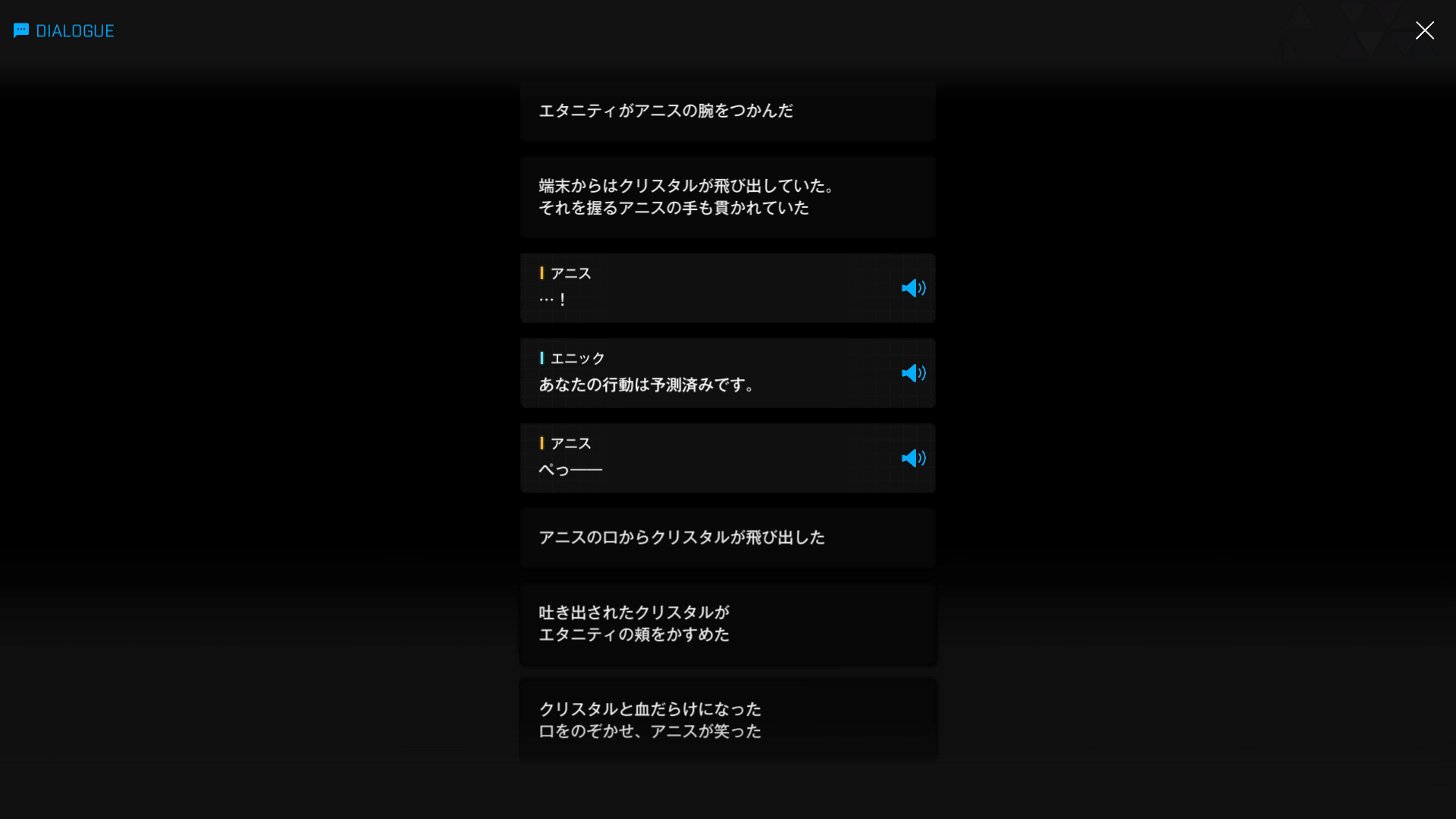④クリスタルの侵食速度:③でアニスが携帯にクリスタルを移植 & 何とかしてエタニティと接触させようと思案した結果、以下SSのような手段でようやく一矢報います → そう、『口元の血を拭った』際、『口内にも転移させていた』わけです