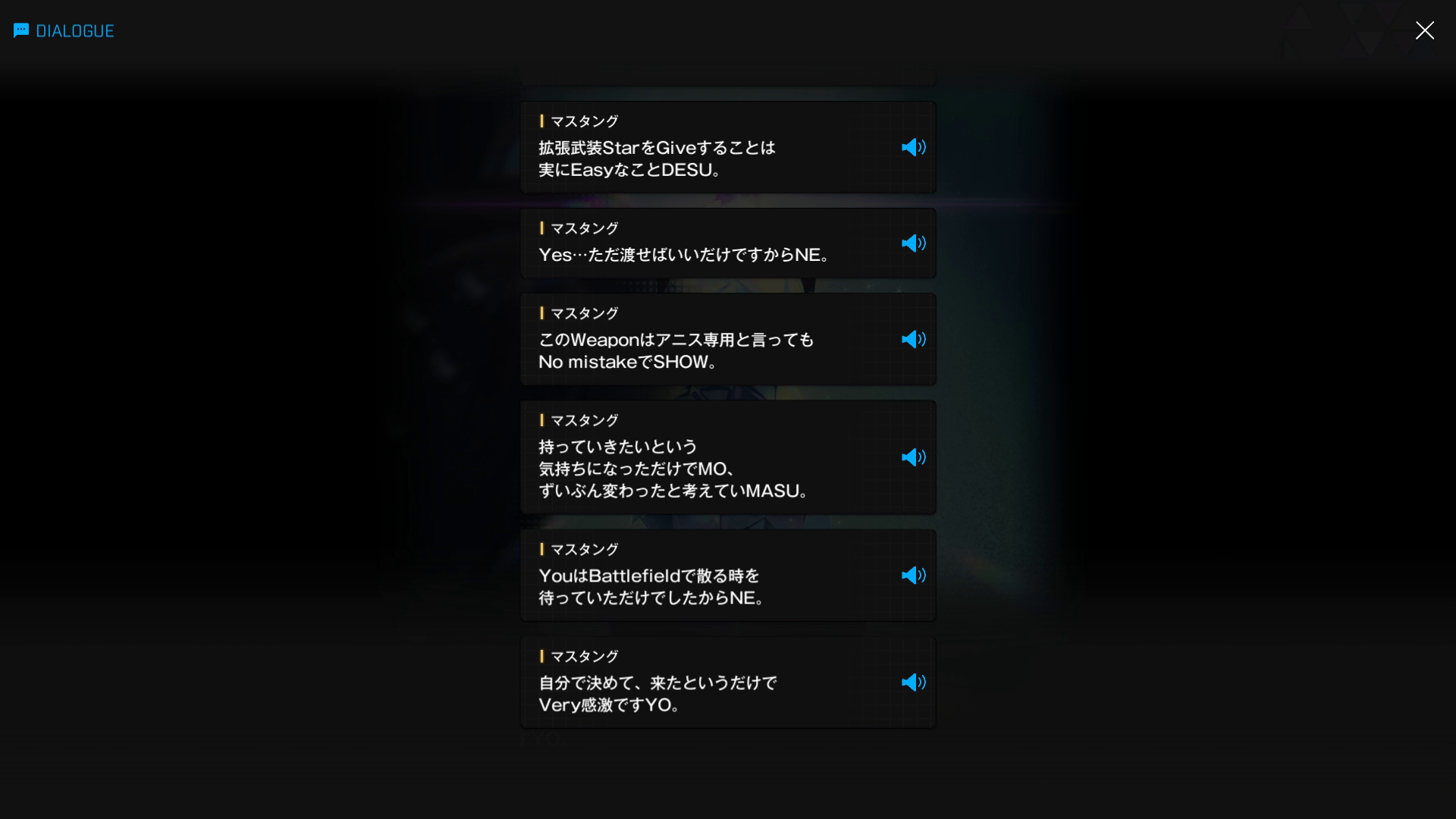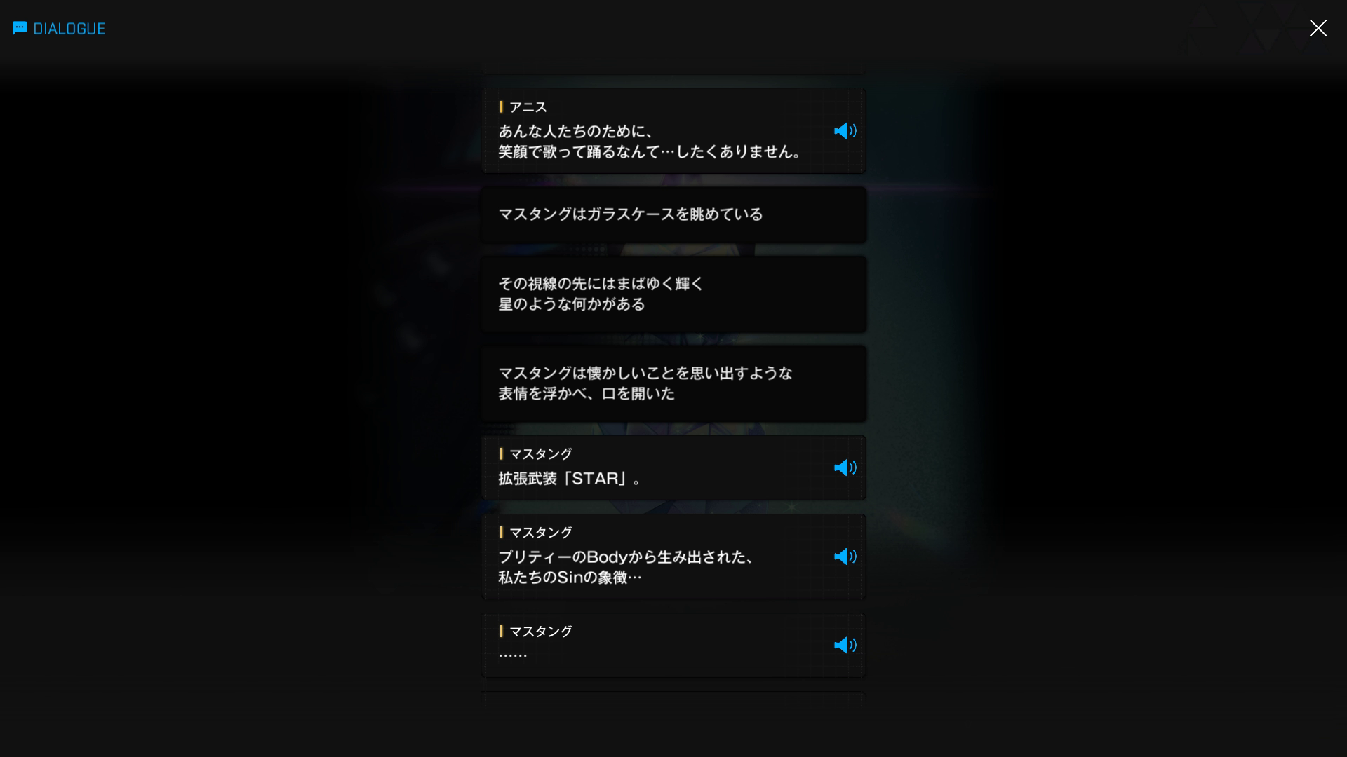 ・以下SSのとおり、マスタングが「アーク初のニケアイドル」と明言している → 彼は「ニケ」と言っていないものの、こちらの⑩と照らし合わせれば一目瞭然 (イベント『Cherry Blossom』の『花の誓い』より)