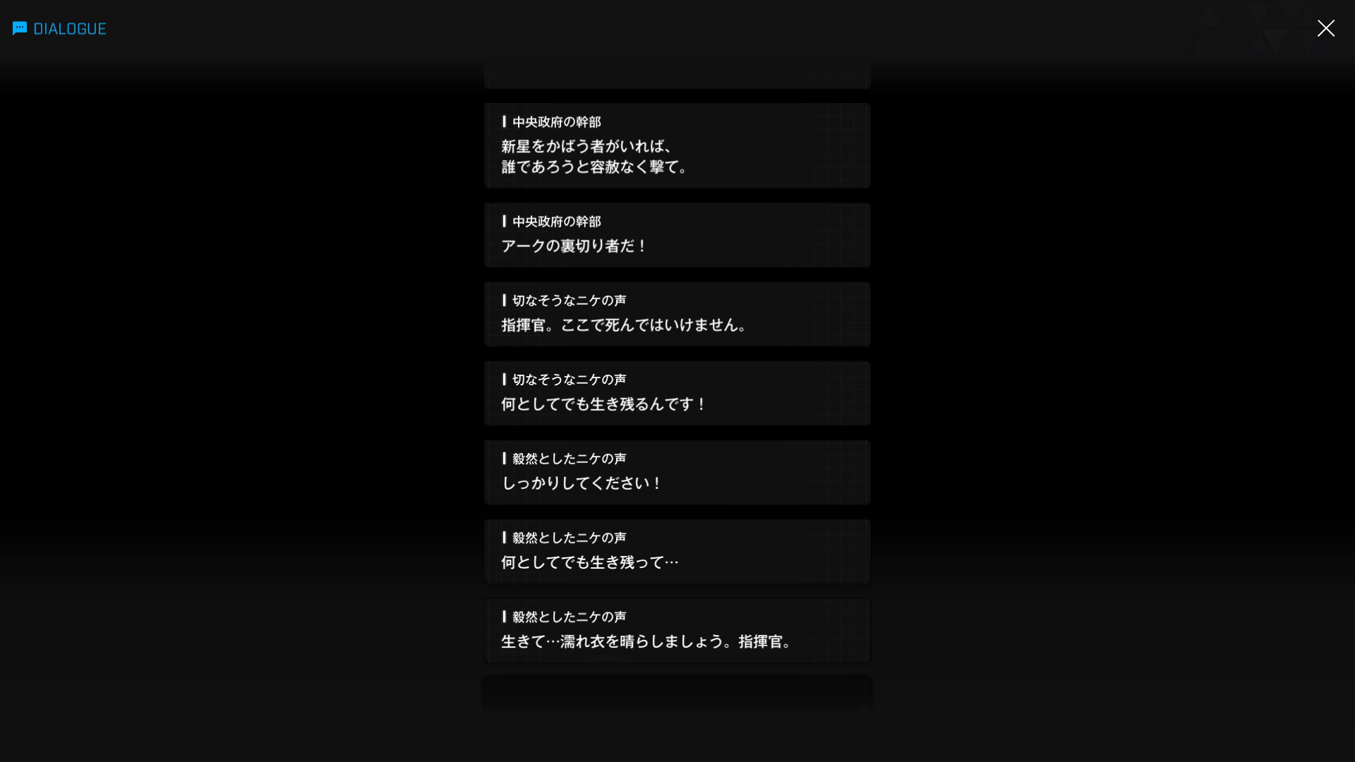 ・彼がエデンに合流した経緯は、以下SSのとおり → イベント『FOOTSTEP, WALK, RUN』の内容とも重複するが、絶滅の危機に瀕していても、人間は誰かに罪を擦り付け & 利己主義に走る愚かな生物らしい(『捨てられた英雄が見る夢』より)