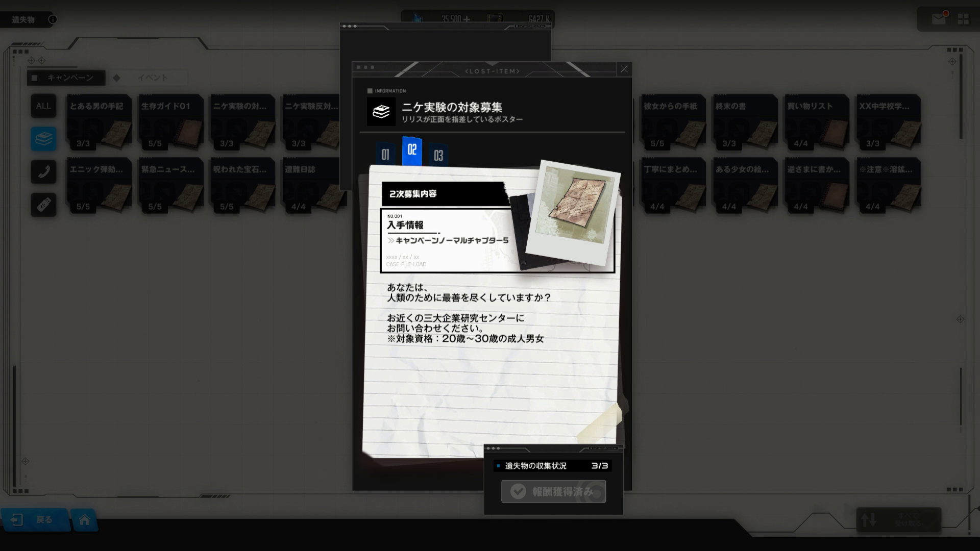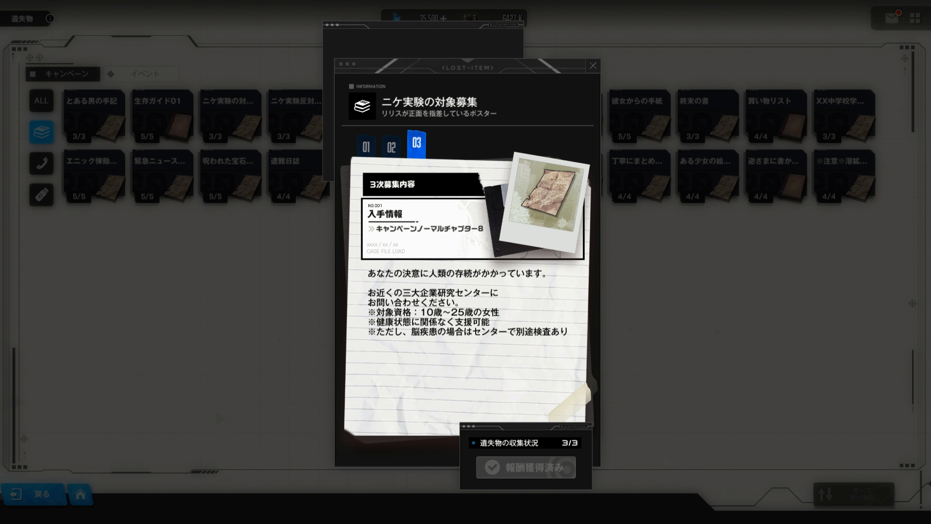 ・『1月20日に73号機エレベーター(モデル:AHWDD-93760)にラプチャーの侵入を許し、マイルズ副司令官が介入するまでに兵力の60%を失ったため、新星(ヨハン)が更生館へ送致決定された』という内容が残っている(『遺失物』キャンペーンの『デイリーアークの記事スクラップ:05』より)