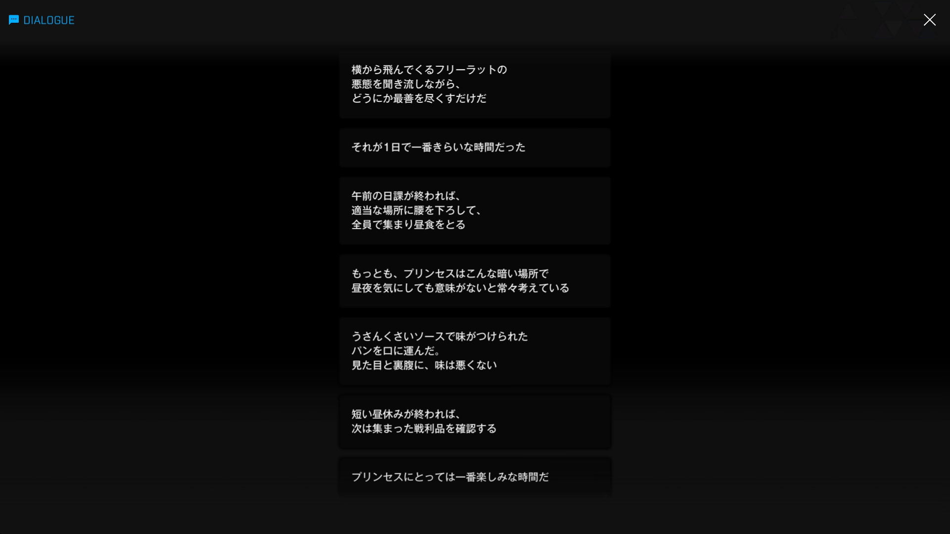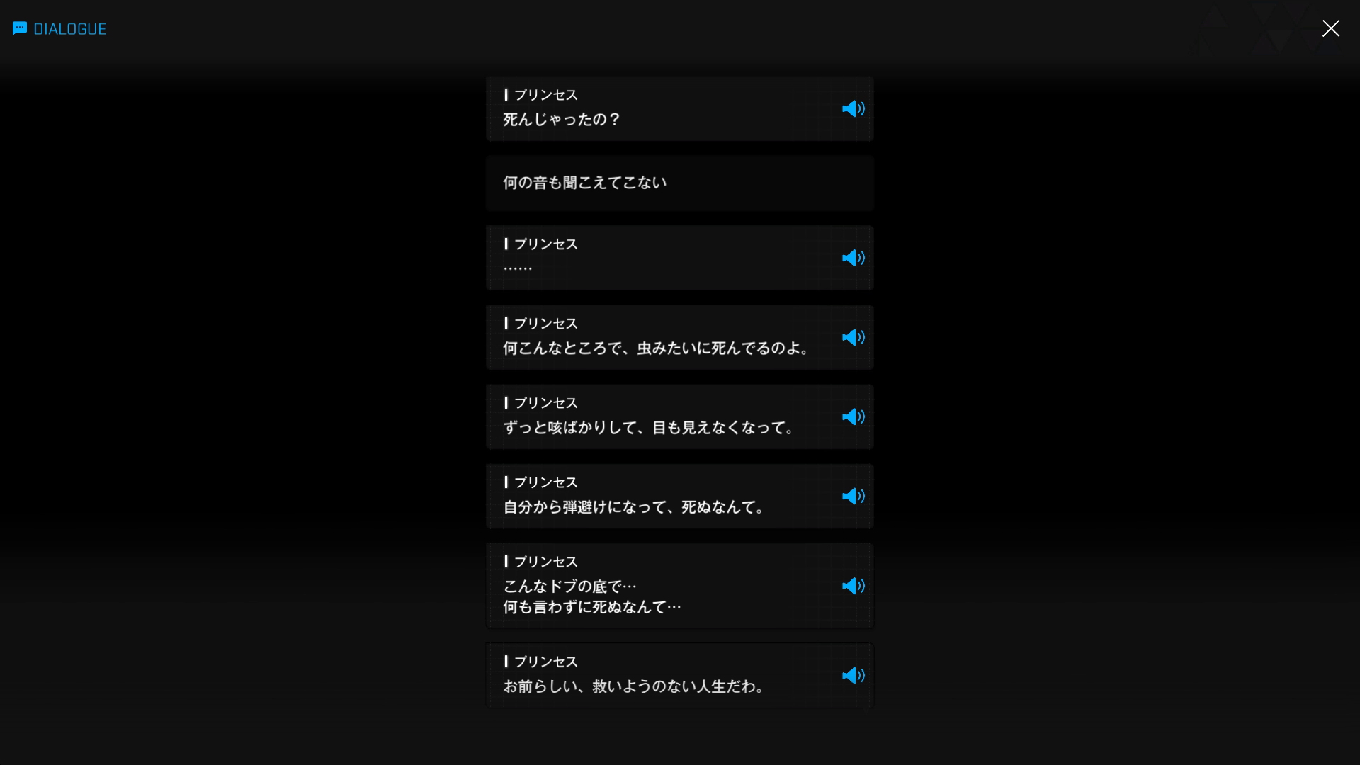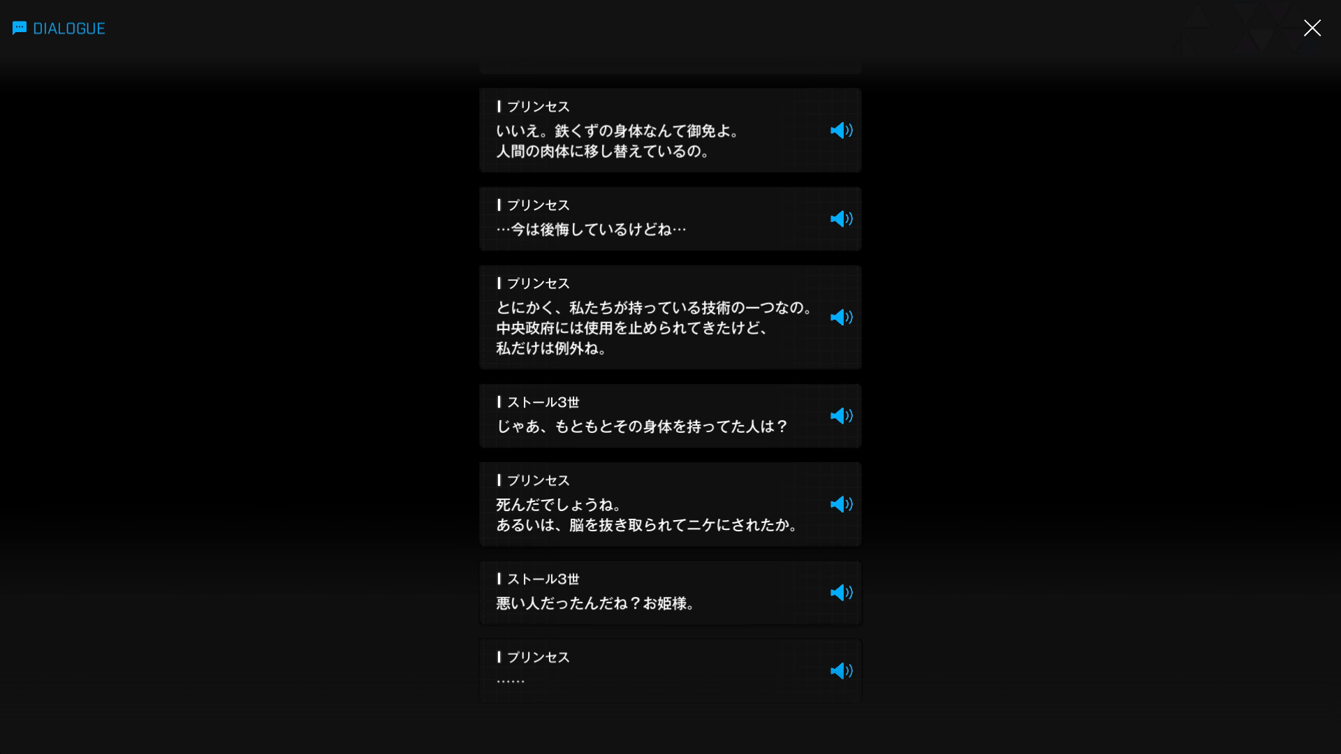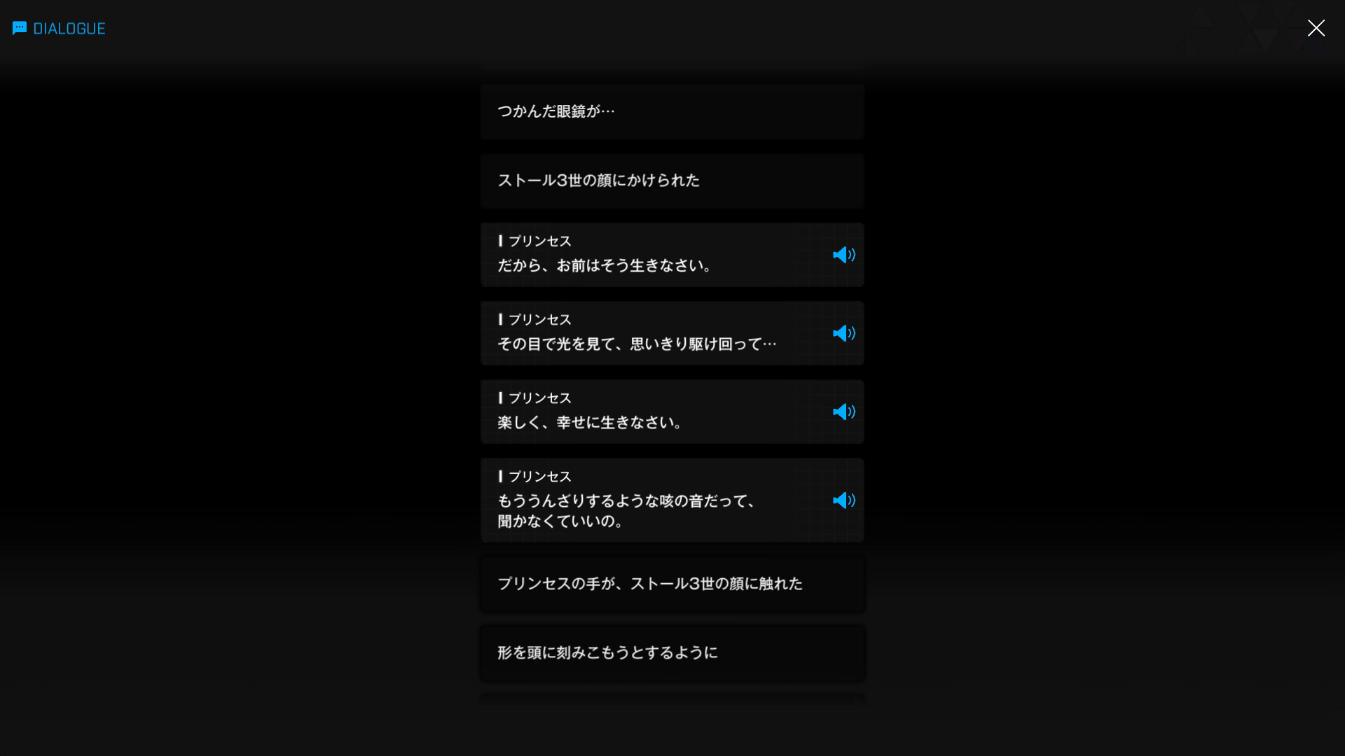 ・当時のネオン = ストール3世は直接耳にすることはなかったが、上記SSのとおり、プリンセス最後の肉声は「ありがとう」→ しかし、火力崇拝者でなければ解除不可能な、赤眼鏡に隠された『真の意味での遺言』は、以下SSのような短い言葉だったと判明(『パスワード』より)