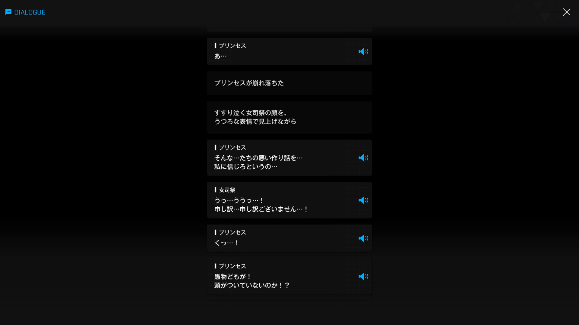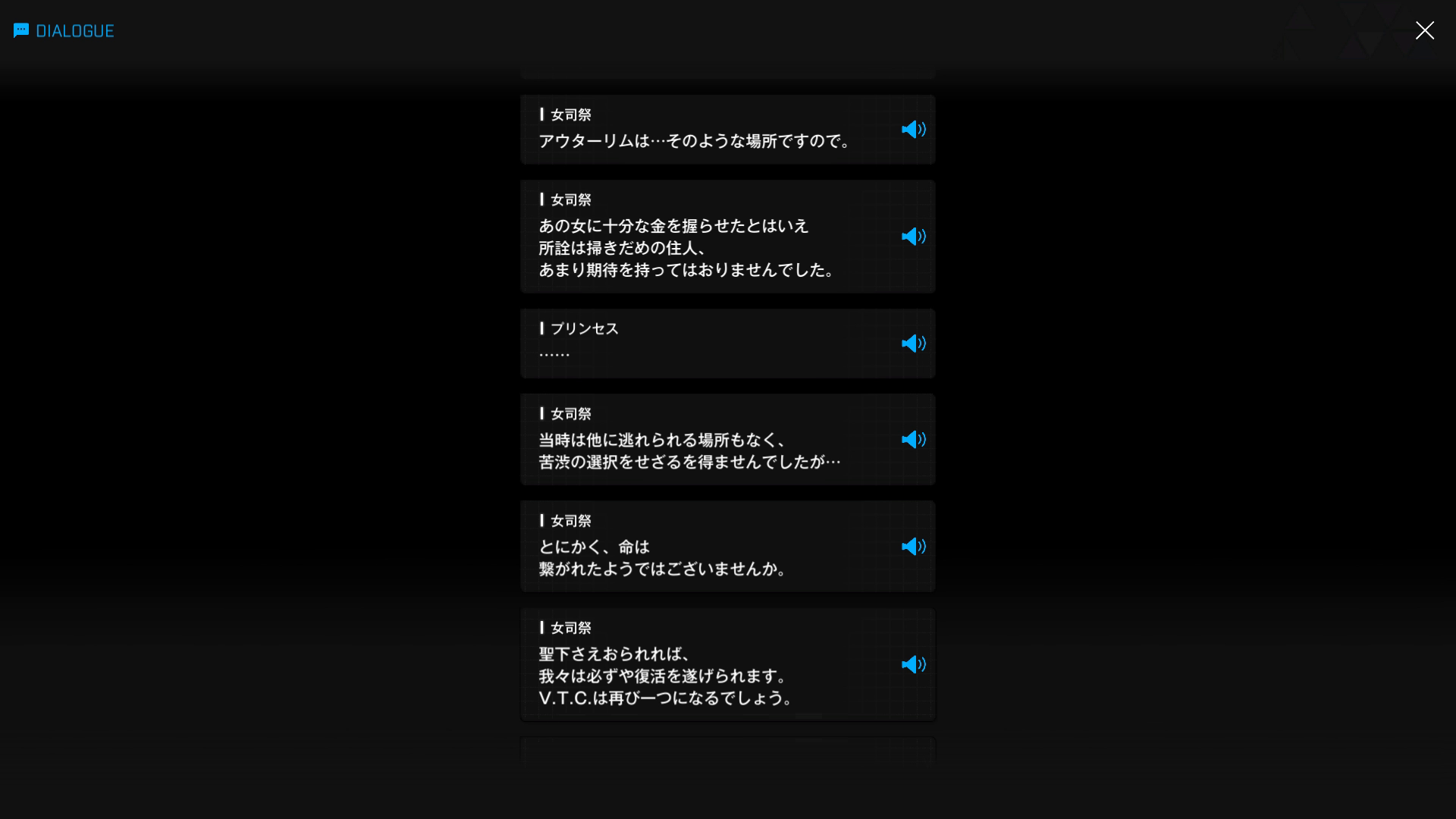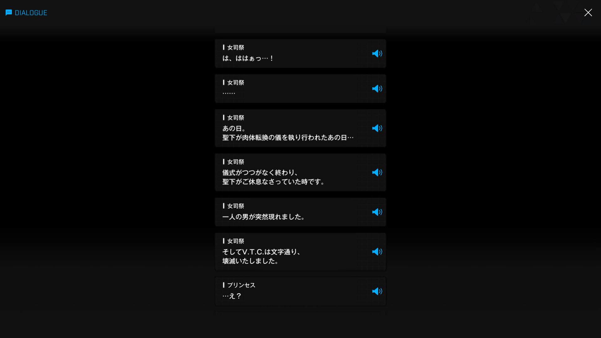 ・女司祭からV.T.C.壊滅の理由を聞かされたあと、以下SSのように詰問する → 詳細はあちらの『V.T.C.』& こちらを参照