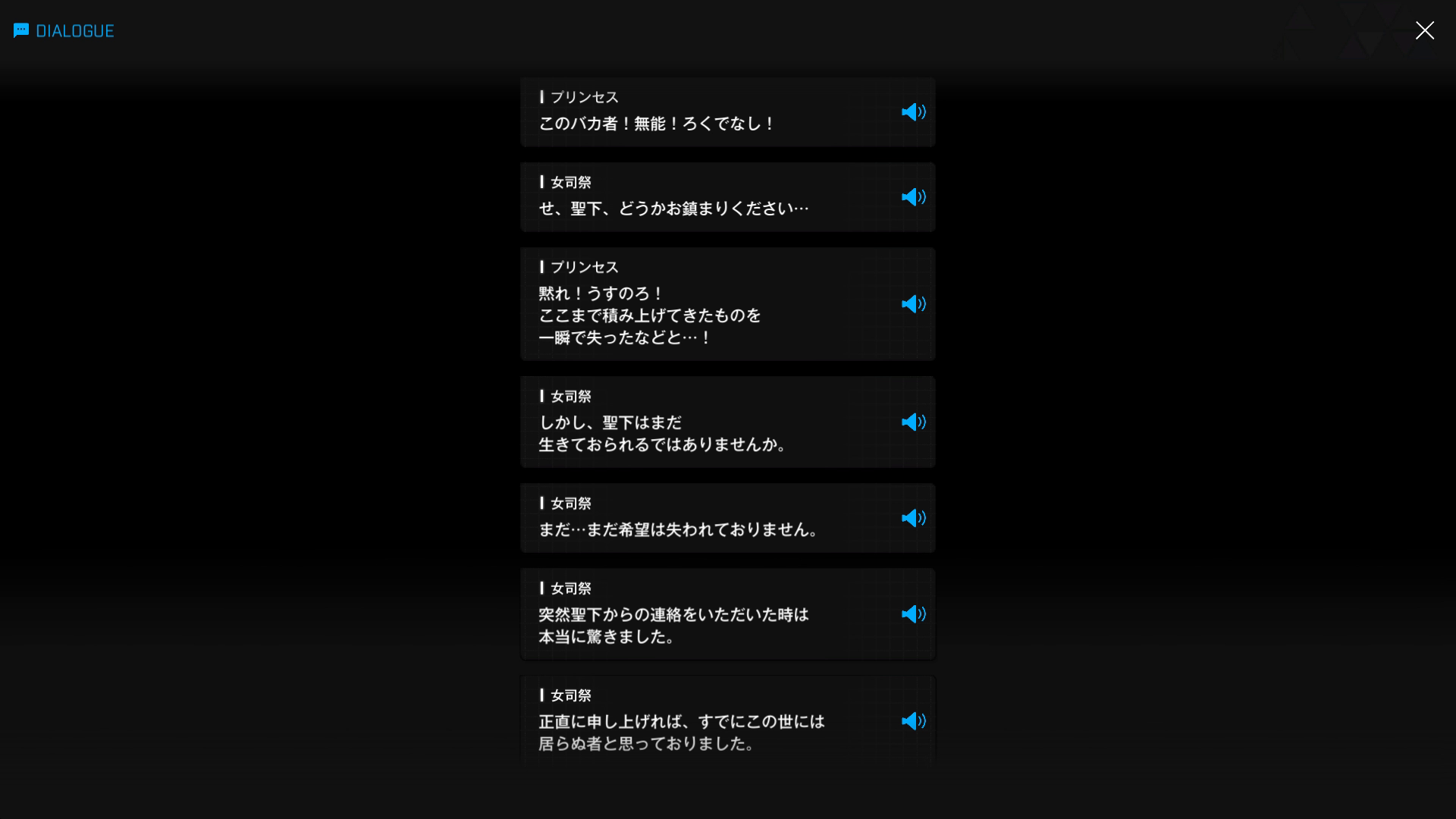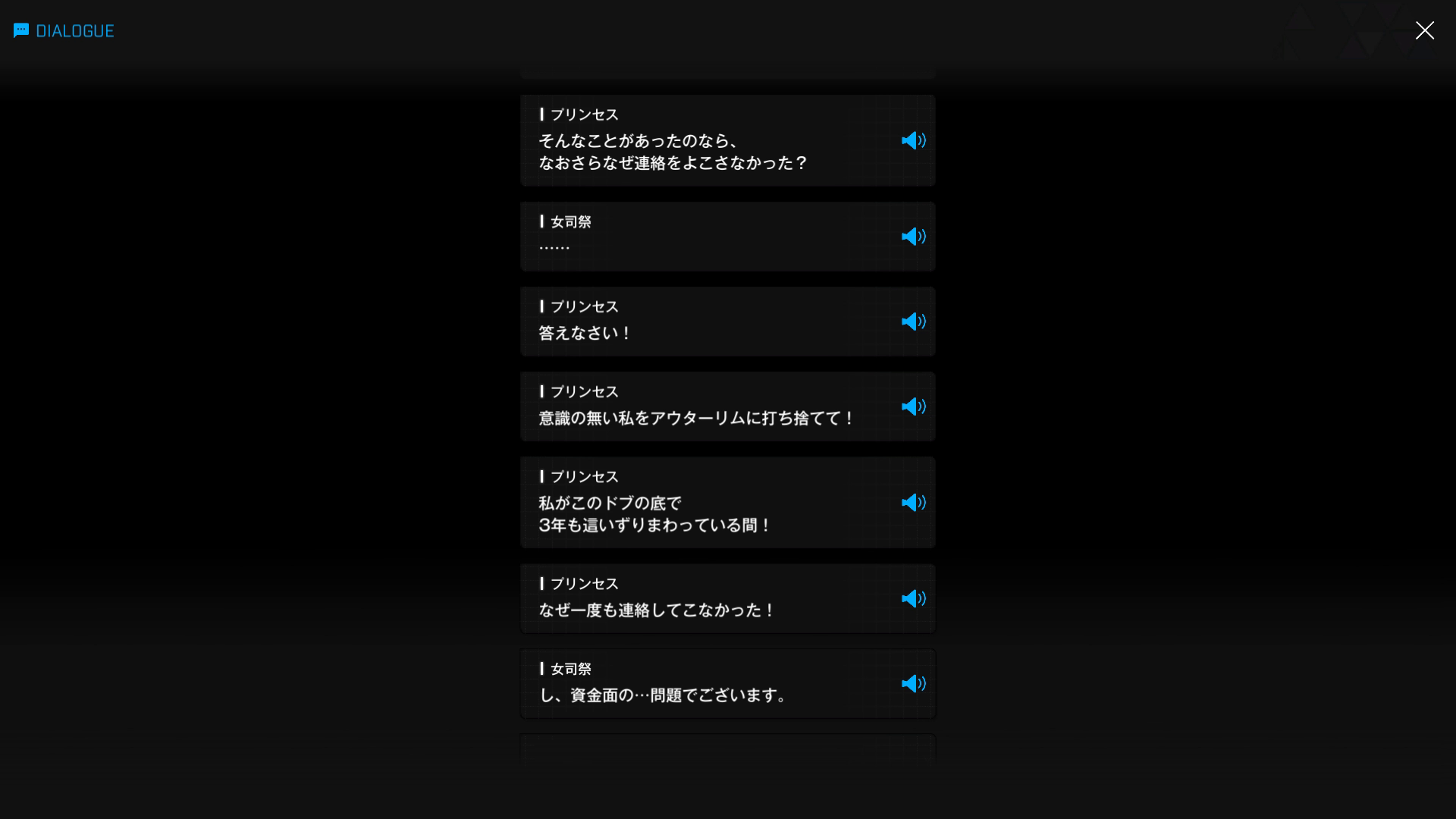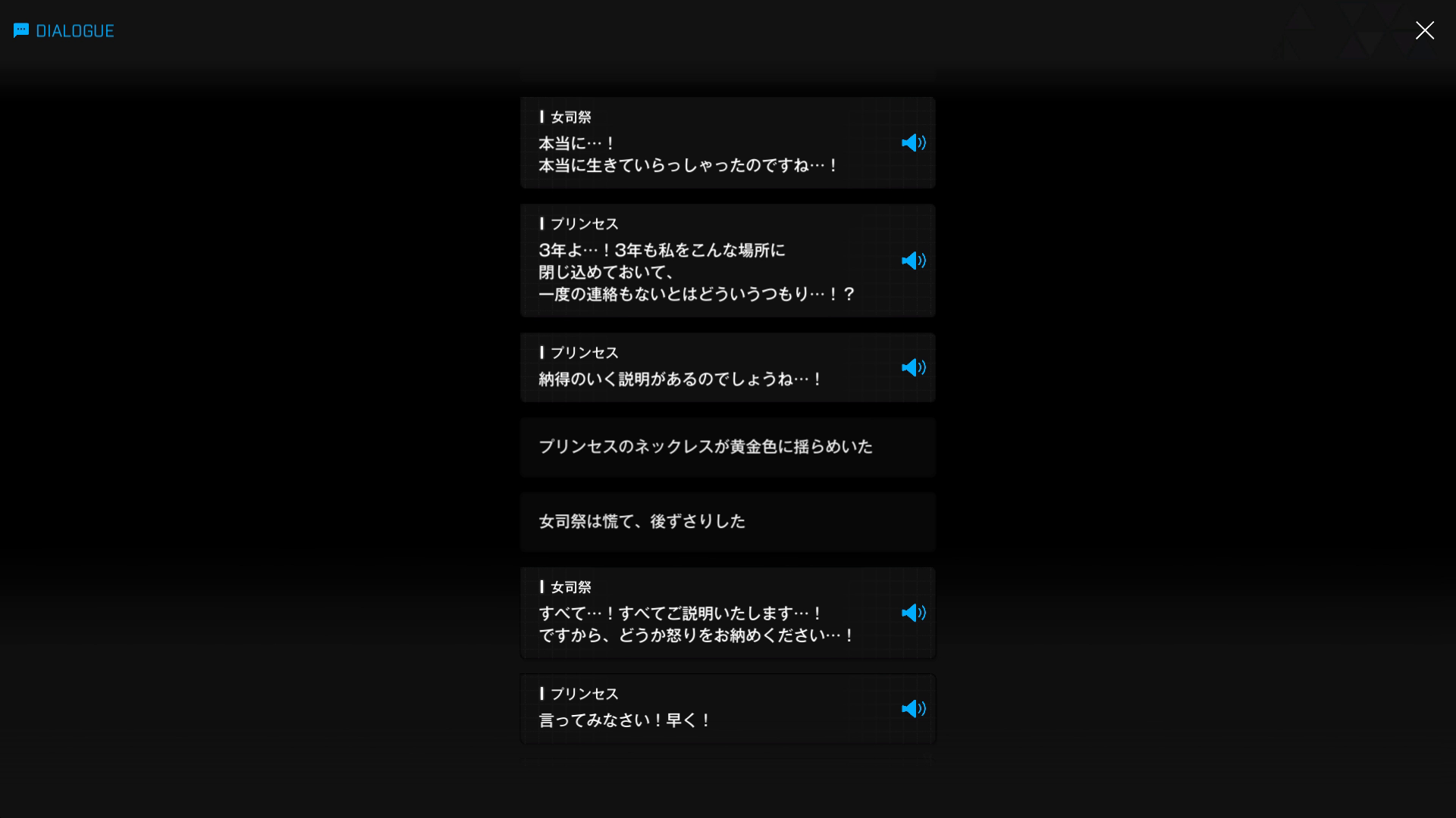 ・女司祭からV.T.C.壊滅の理由を聞かされたあと、以下SSのように詰問する → 詳細はあちらの『V.T.C.』& こちらを参照