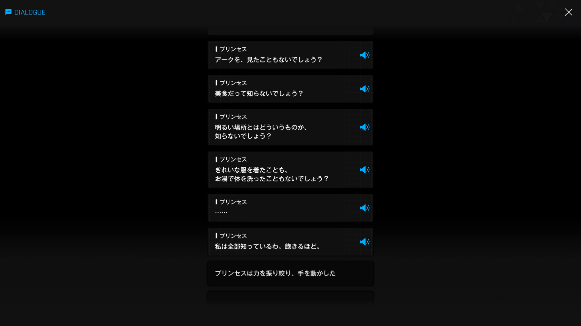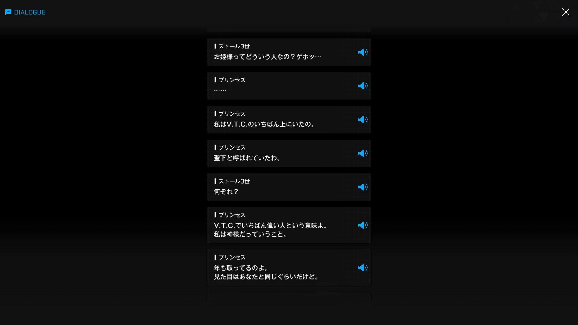 ・あちらのストール3世同様、彼女の秘密がいくつか明かされる → 以下SSの内容により、なぜ彼女が『プリンセス』という名前で呼ばれ、以前「2年なんて刹那のうち」&「時間ならいくらでもある」などと言っていた理由も判明(『聖下』より)