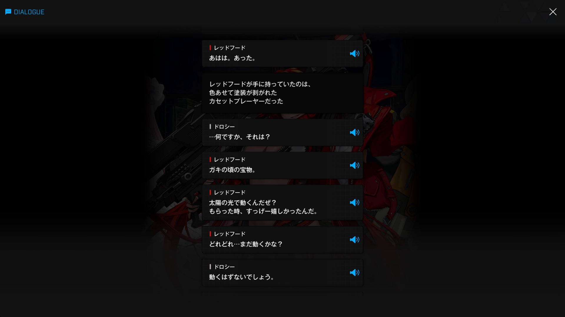 ⑨ジュークBOX:最初から置いてあったものの他に、レッドフードから受け取った形見の品も一緒にあるはず → 再生すると流れる曲の歌詞はこちら(CHAPTER.26『戻りたくて:A』より)