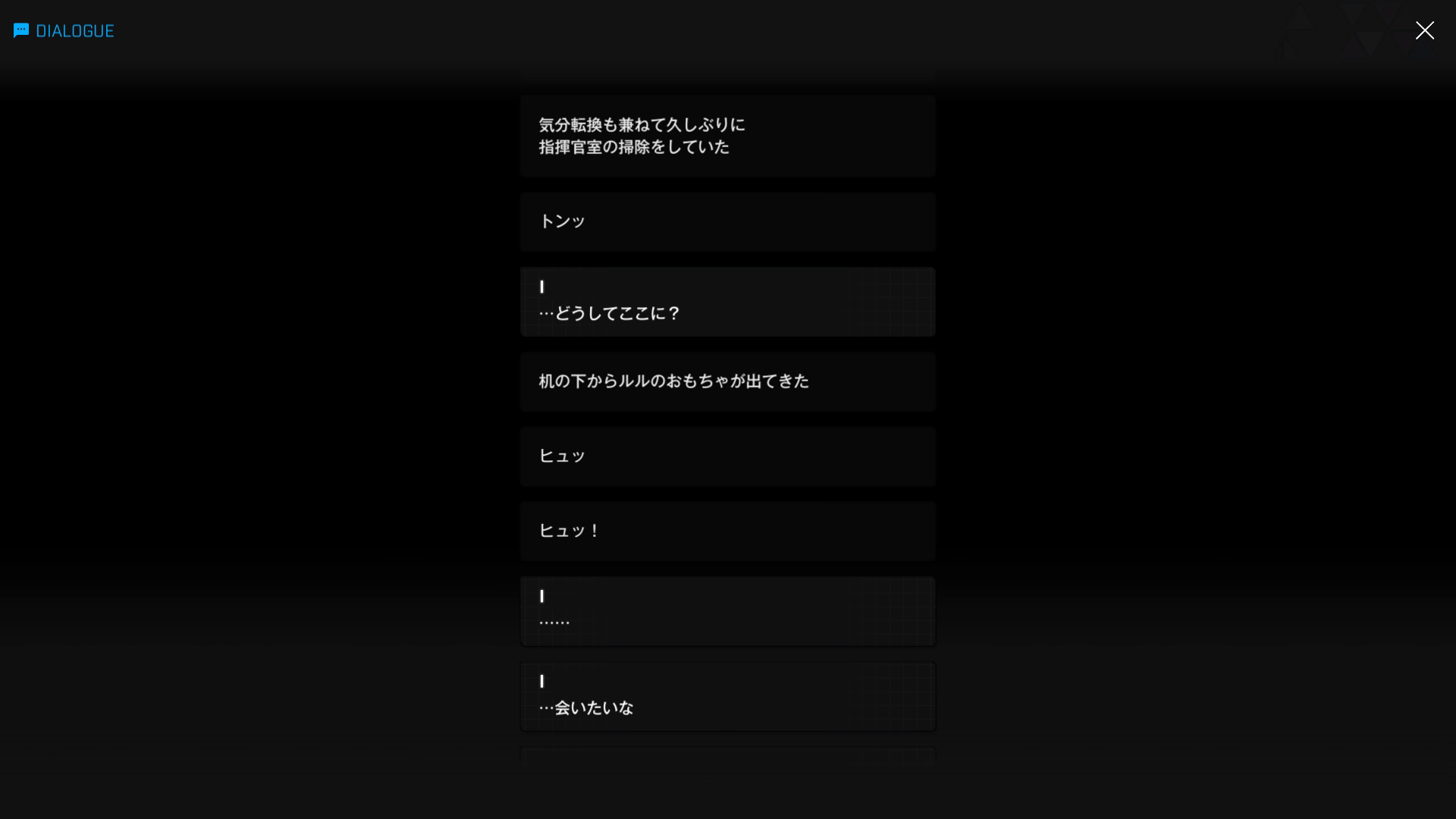 ㉑クローゼット:主人公の私服 & 制服を指揮官室に置いておくわけがないため、とりあえず右上 & 左下のどちらかにあるものとして配置 → 確認 & 判明済みの衣類を以下に記載しておく