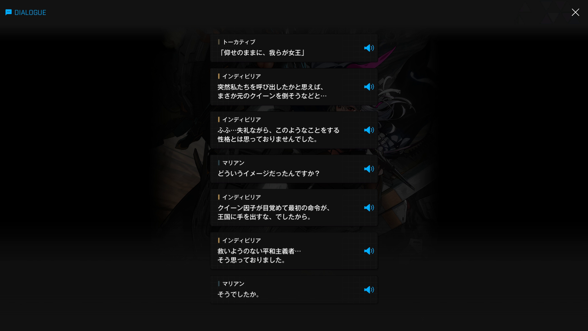 ・インディビリアにとっては全く話にならない内容のため、頭ごなしに拒否される → 無理やりにでも言うことを聞かせようと強引な手段に出たものの、クイーンからの強烈な支配力で圧倒される(『支配力:B』より)