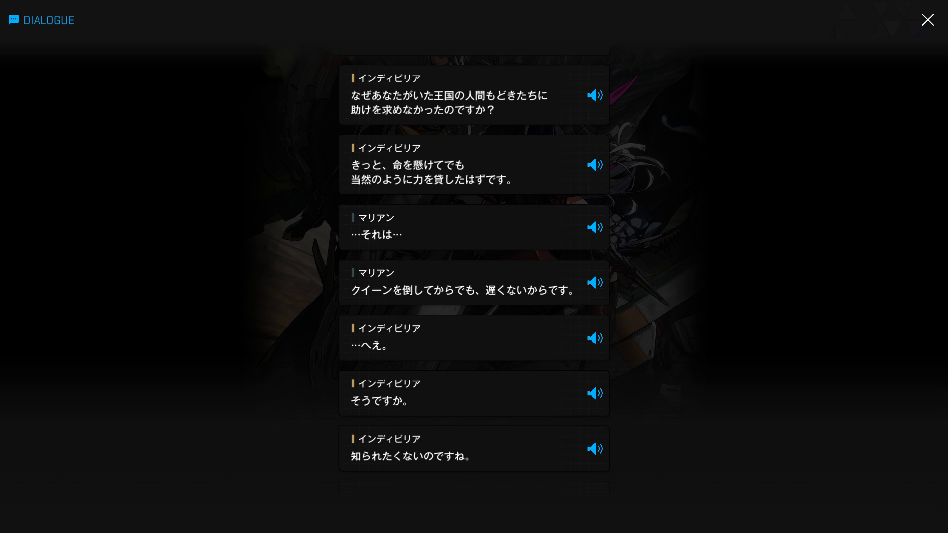 ・心の底から願って止まなかった称号をヨハンに与えてもらったあと、彼女もイサベル同様、主人公に最期の言葉を遺し、2番目の戦死者となる → 管理人も白紅蓮のように、「彼女もまたゴッデスだった」と言ってあげたい(『誇り高き称号』より)