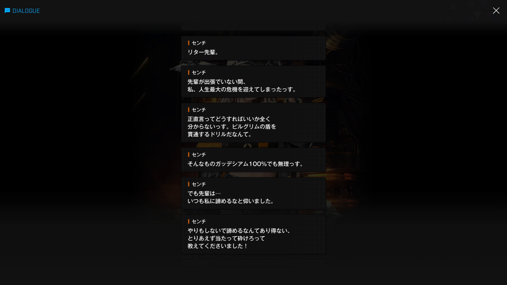 ・インヘルト所属のピルグリムに関する数少ない秘密は、以下SSのとおり → 最後の段落で発言している「他の機能」は、『かわいく見えるための飾り』らしい(ノア面談:19より)