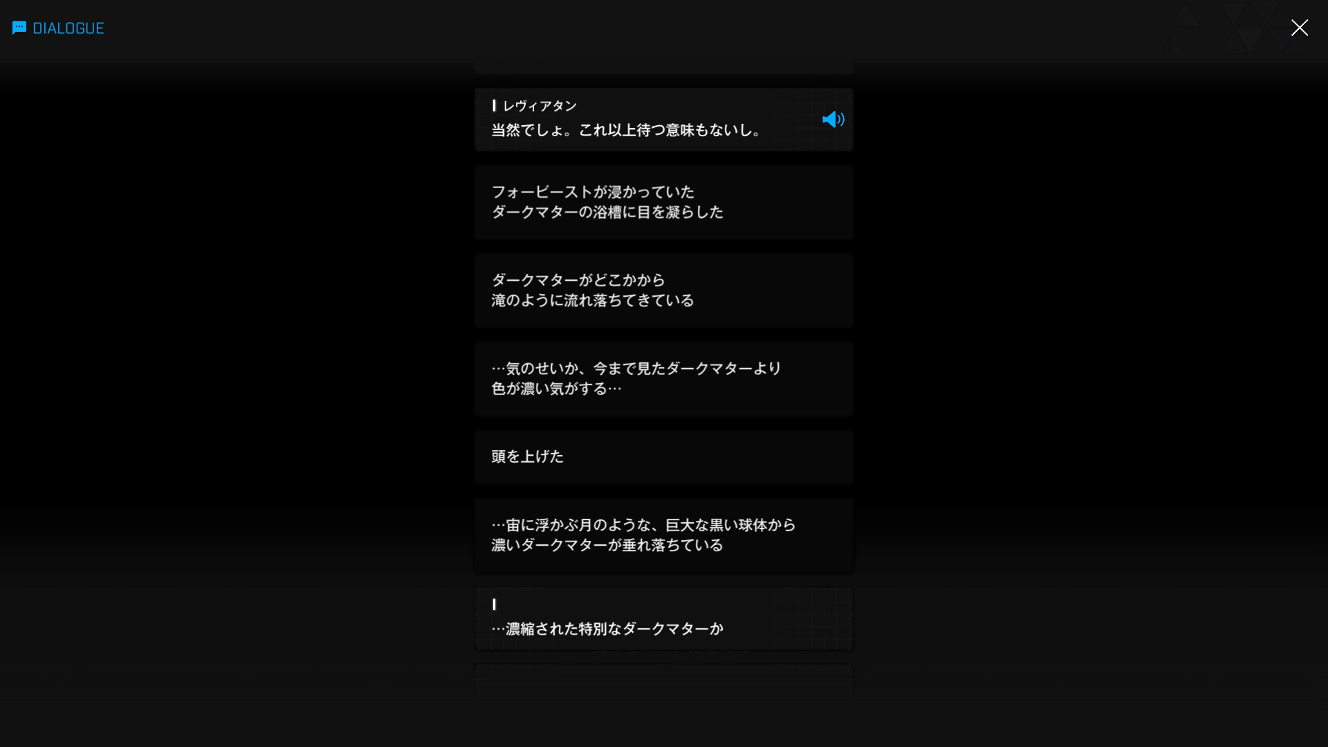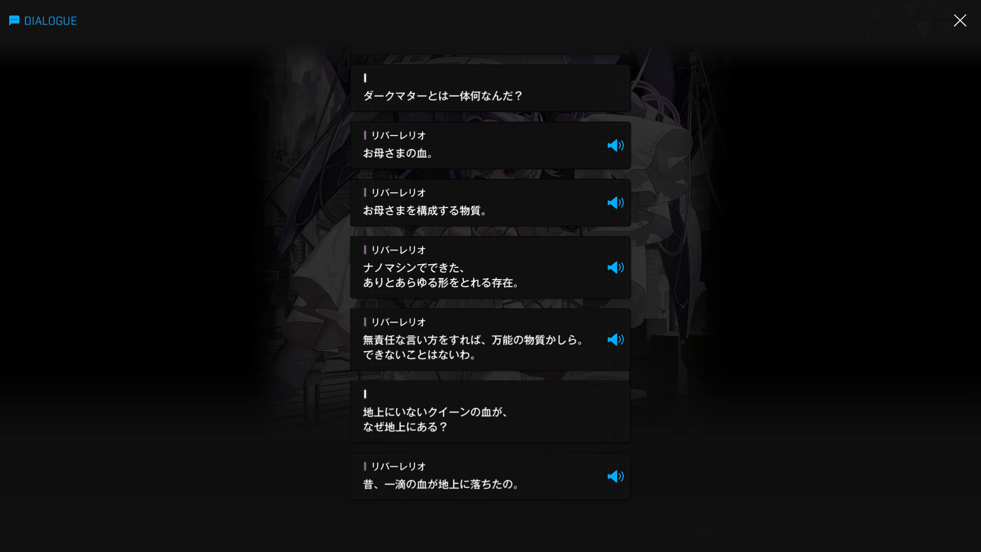 ・主人公とリバーレリオでは『共存』の定義が異なるため、彼らの話が噛み合うことはなかった → その後、ダークマターについて、クラゲちゃんから以下SSのような情報を入手する