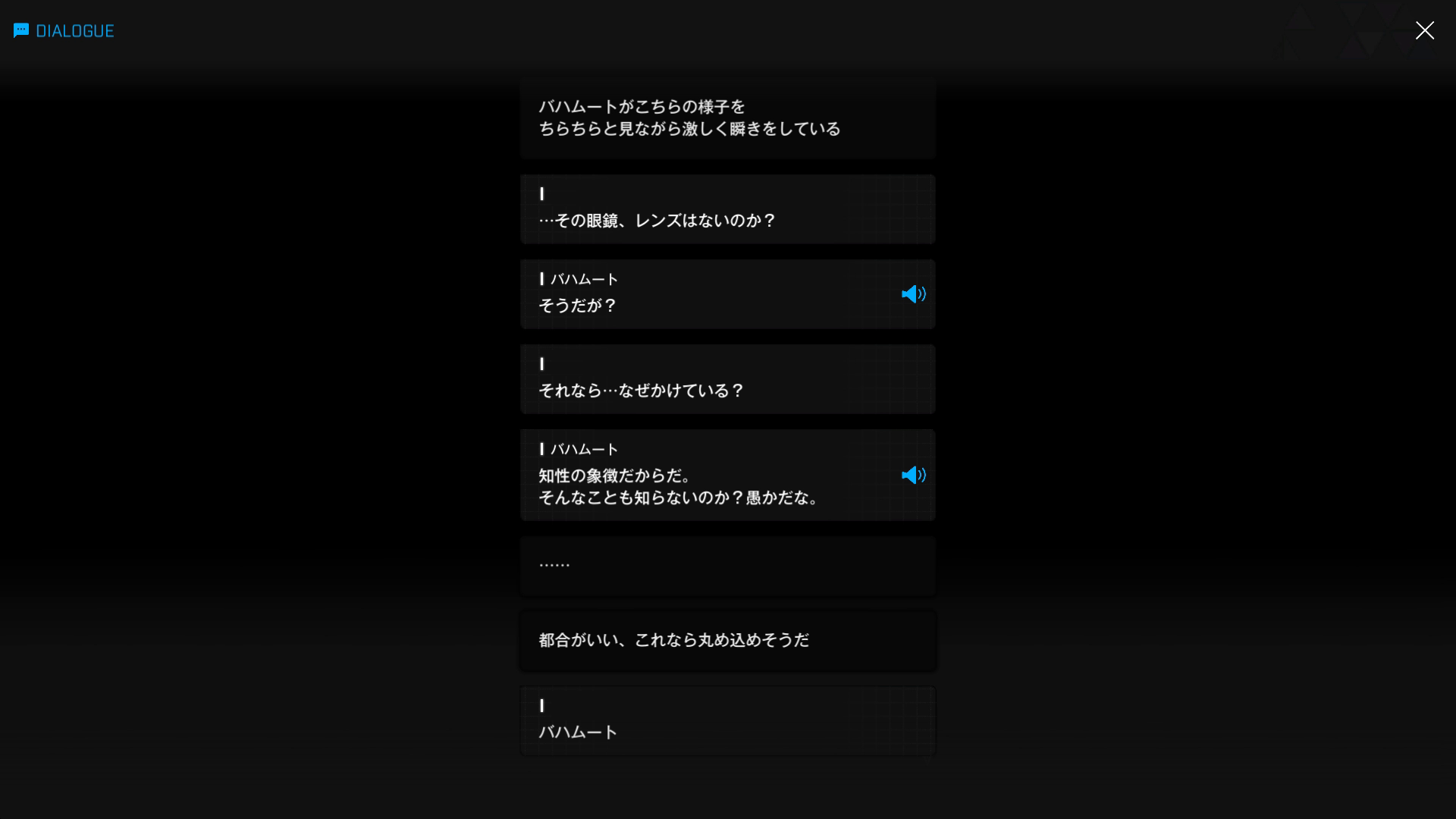 バハムートが『上記のナユタ同様、わざと頭の悪いふりをして主人公を煙に巻いていた』とは到底思えないが、管理人からすれば『彼の方がこちらでシンデレラにウザ絡みしていたラプラス』のように見える → 管理人が賢くない眼鏡の立場なら、おそらくナユタ式 = 上述の3つ目を駆使して黙らせただろう(例えば、1枚目2段落には「そのまま好きなだけ漏らせ」& 3枚目3段落なら「さっさと首でも斬り落としたらどうだ?」、4枚目4段落には「早よ死ね」など)