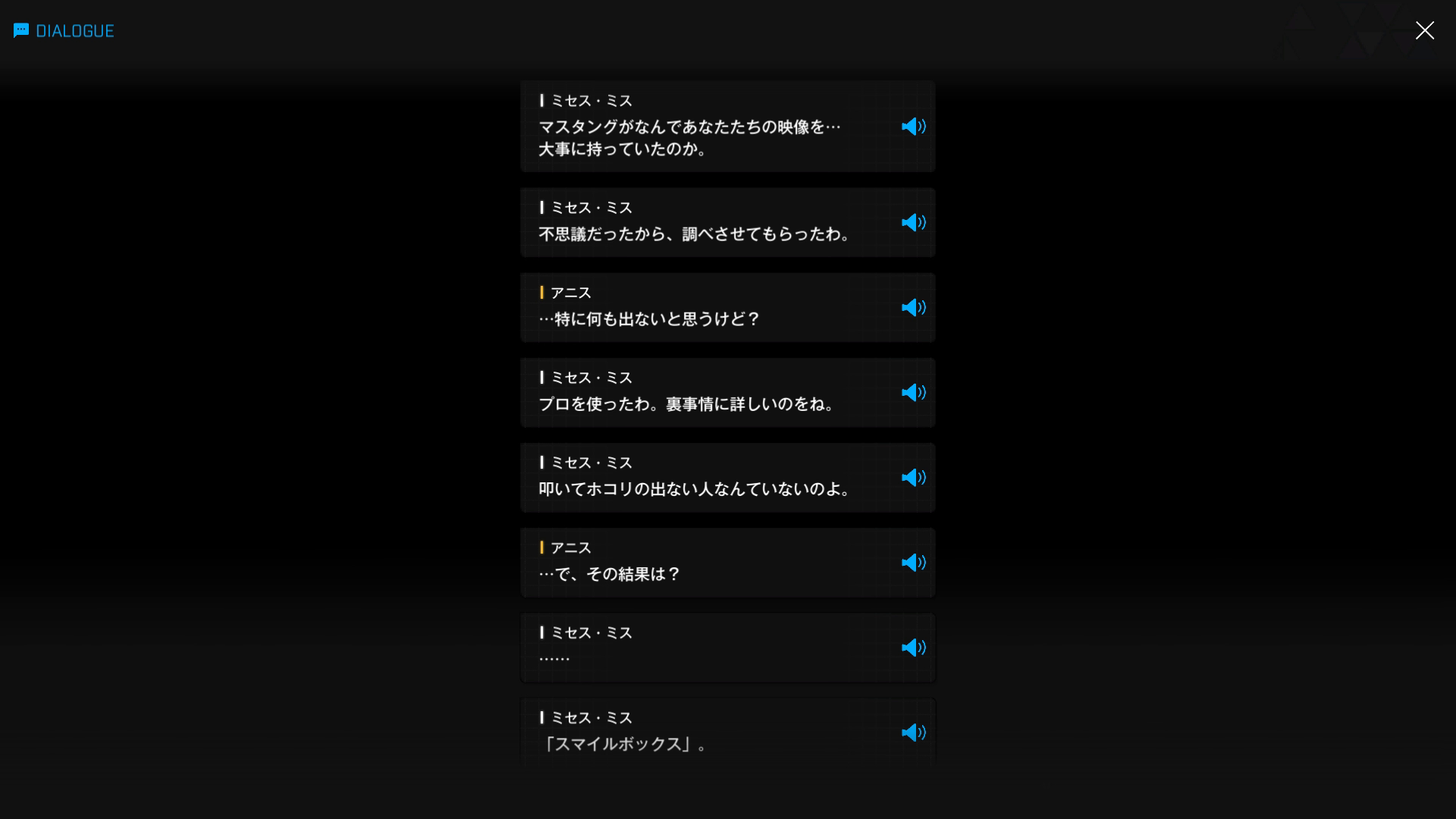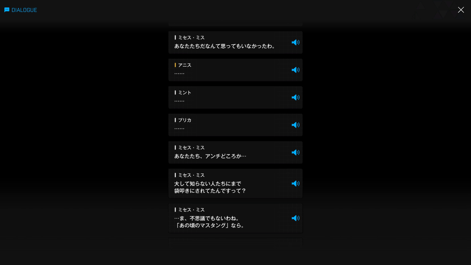 ・お茶をしながら話をすることになった際、ミセス・ミスからいくつか新事実が語られる → まずはプリティーに関する内容で、詳細はこちら(以下SSはアニス達 & マスタングの話だが、ここで『某イベント』のフラグ回収が発生)