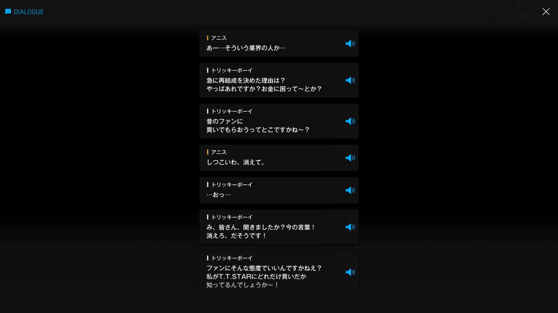 おそらく、当時のマスタングは「IDOLは所詮偶像に過ぎまSEN。ARKの人々にとっTE、TOYに過ぎないのDESU!」などと寝言を抜かしていた & アニス達が上記のような酷い仕打ちを受けていることを知りながら、まともな対処などしていなかったと思われる → イベント『COINS IN RUSH』で「BAD GUY」と自称していたのは、過去の彼が「HAHAHA、それも一種のENTERTAINMENTですYO!」とはっちゃけ続けた結果プリティーが死亡 & その時点でようやく目が覚め、今までの行動が間違っていたと気付いたことによるものだろう(理由はあちらの『アークのスター』で「私たちのSIN = 罪の象徴」と語っているためで、詳細はこちらの『プリティー』を参照)