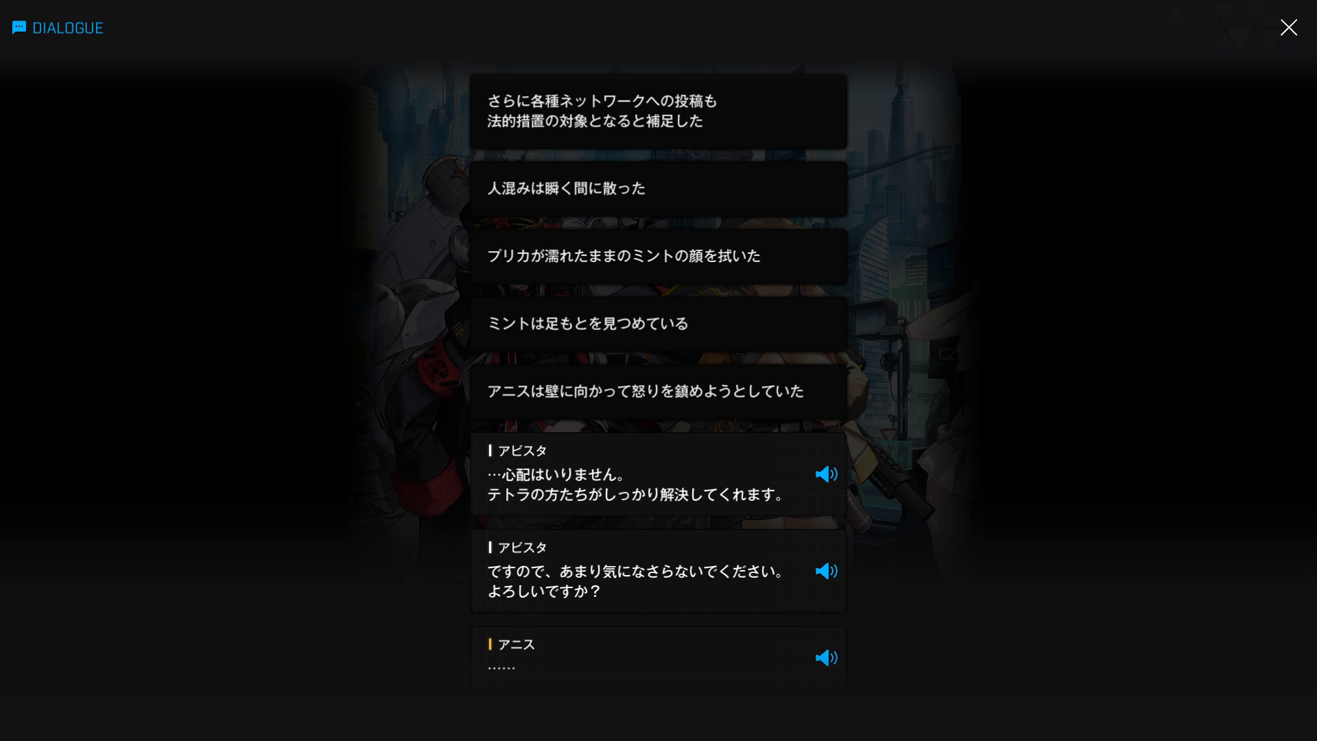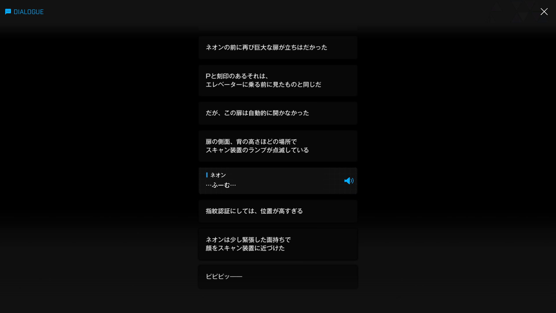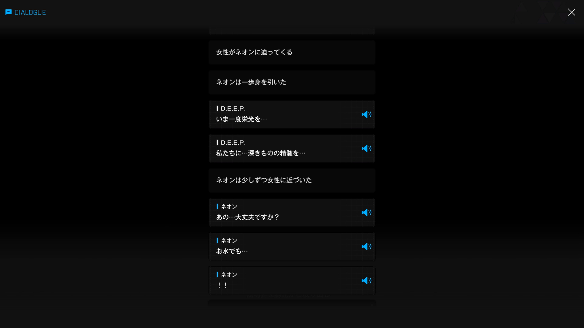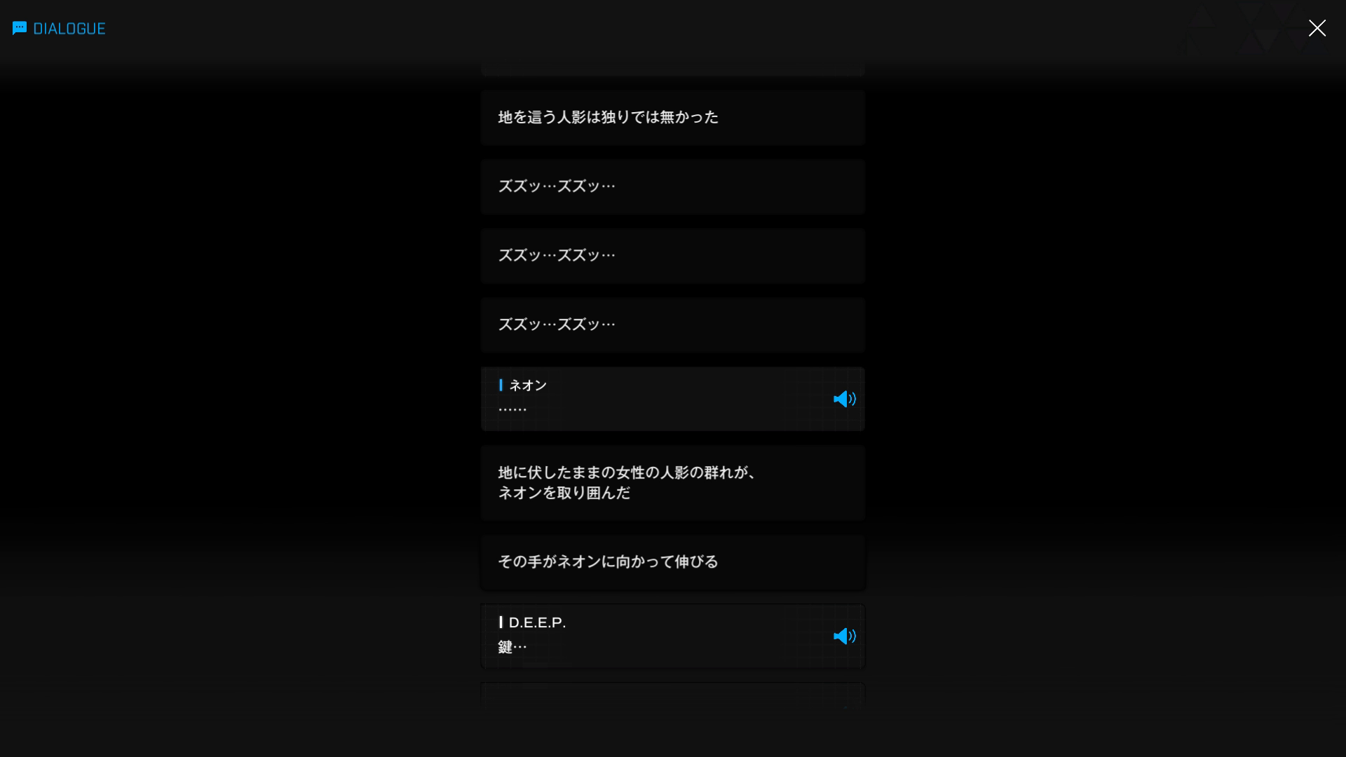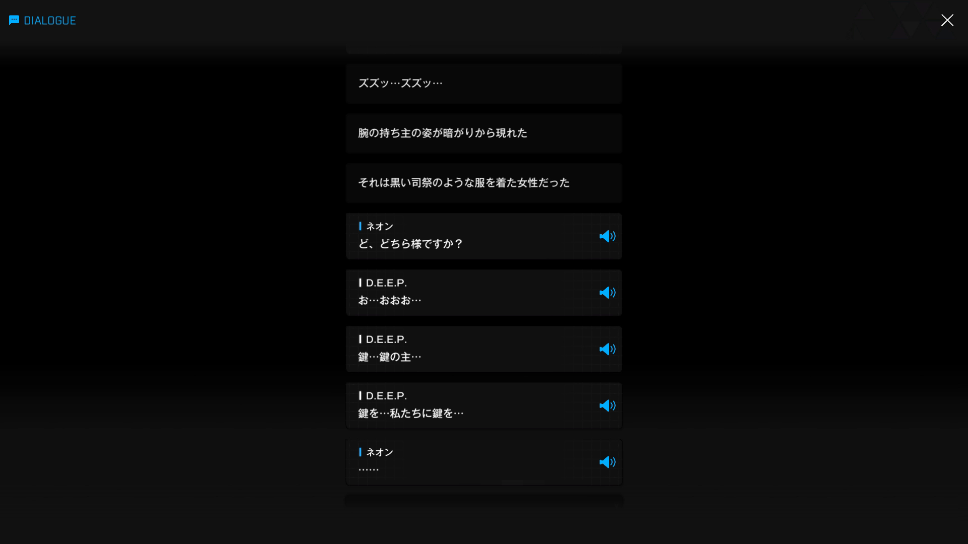 イベント『FOOTSTEP, WALK, RUN』& こちらにあるD.E.E.P.の立ち絵を閲覧していなかったとしても、2枚目7段落目の時点で『ネオンの顔にある何か』が文字どおり『カギ』となったことは明白