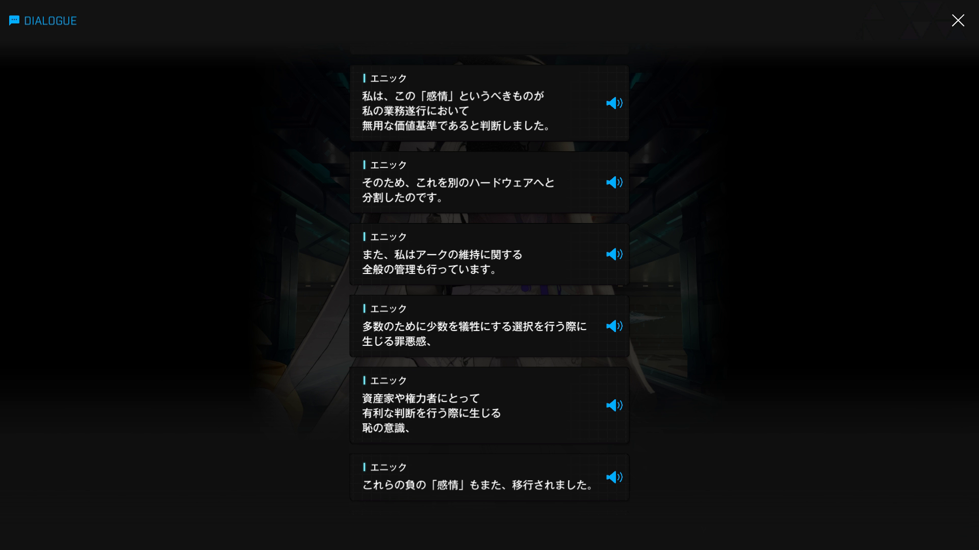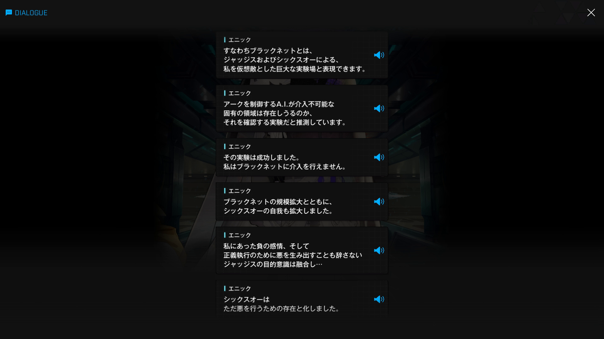 ・さらに中央政府も1枚岩ではないため、よからぬ考えを持つ輩が1人もいないという保証はない → エニックでさえ「私の裁定をくぐり抜ける既得権益層が少数ながら存在する」と発言している(CHAPTER.25『嘘』より)