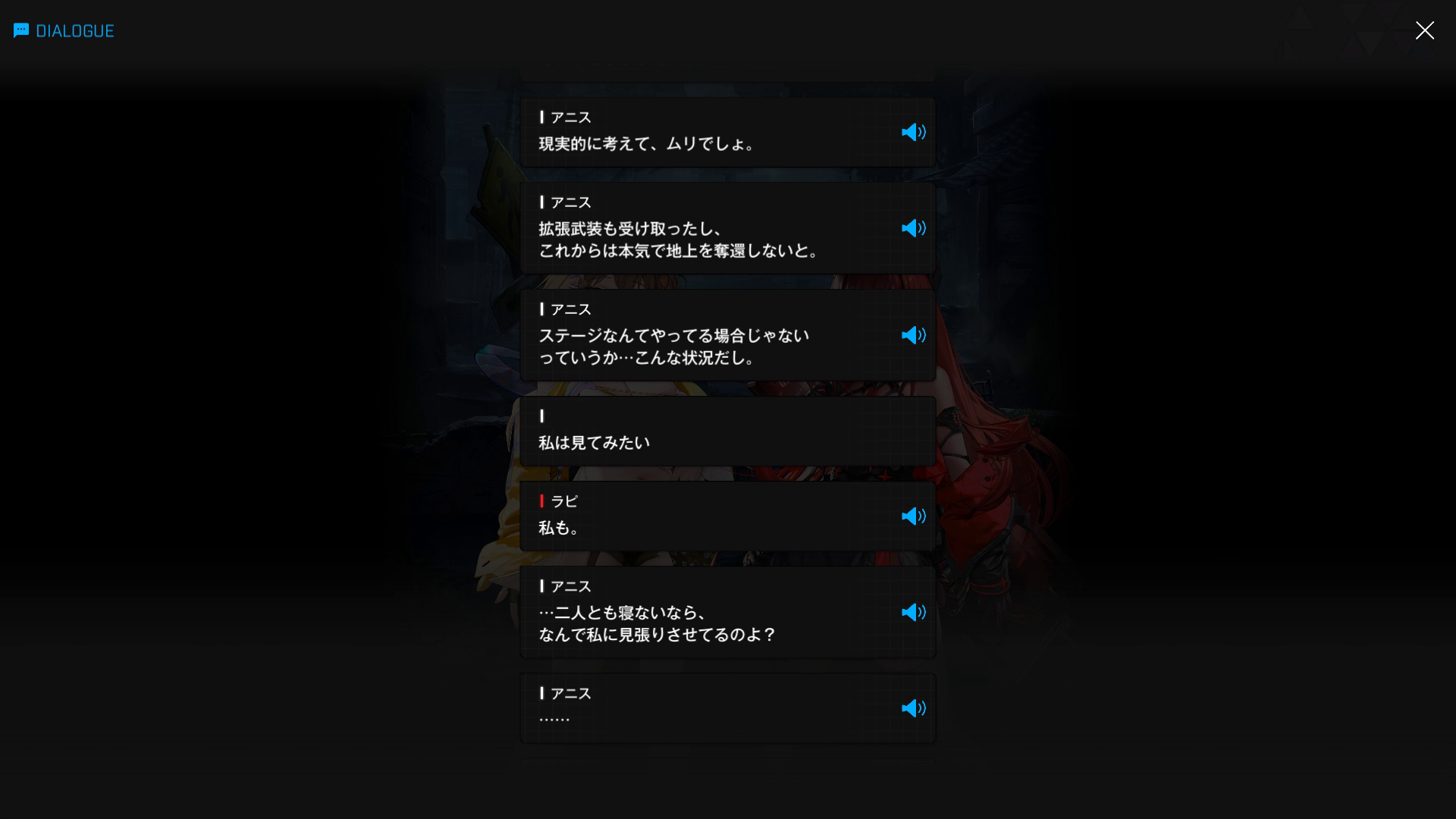 ・ラピRH & アニスSSRの3名で地上に出た際、以下SSのような会話をする