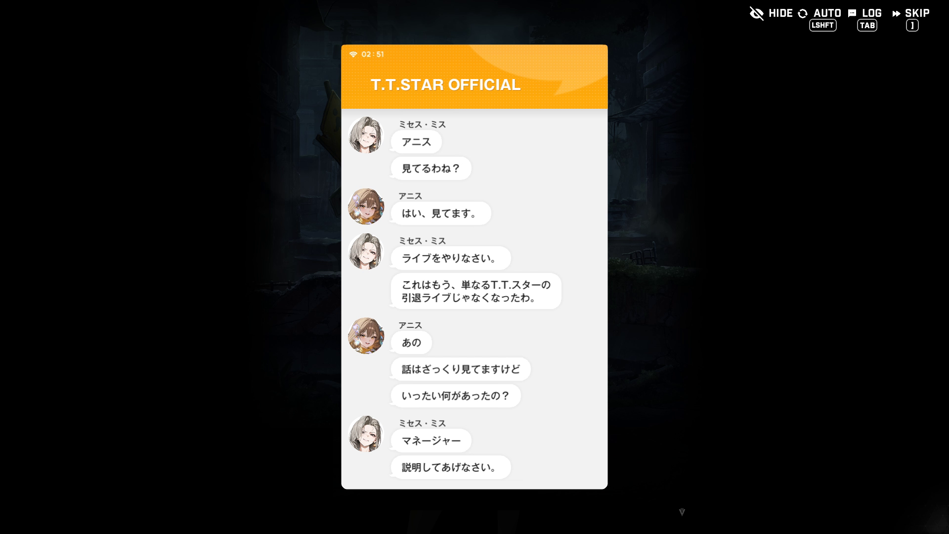 ・管理人は「⋯⋯あ~、やっぱりこうなる展開は避けられなかったか~、まぁ当然だよね~」と、片肘を突きながらマウスをポチポチしつつ、特に驚くこともなく読んでいた → 実際、こうなることはすでにこちらで運営がネタ晴らし済み = 容易に推測可能だったため(本文を抜粋すると「2月にアップデートされるメインストーリーは、今まで築いてきた様々な物語が一度整理され、前に進むべき部分は確実に進んでいく区間となる予定です。物語の流れ上、ビルドアップに該当する時期ですが、その中でも印象的に感じられるシーンが描かれています」と明確に書かれている)
