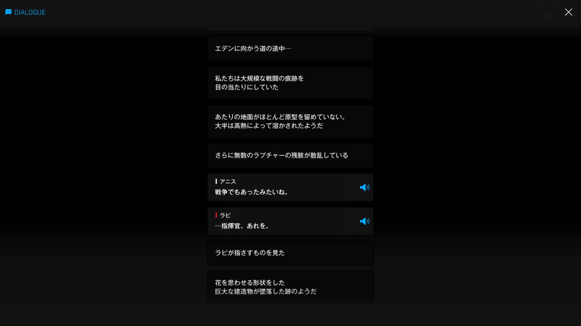 ・エデンへと近づくにつれ、主人公達が以下SSのような光景を目の当たりにする → ラピRHの言うとおり「非常事態があった」とみて間違いなく、墜落した宇宙ステーションを横目に先を急ぐ