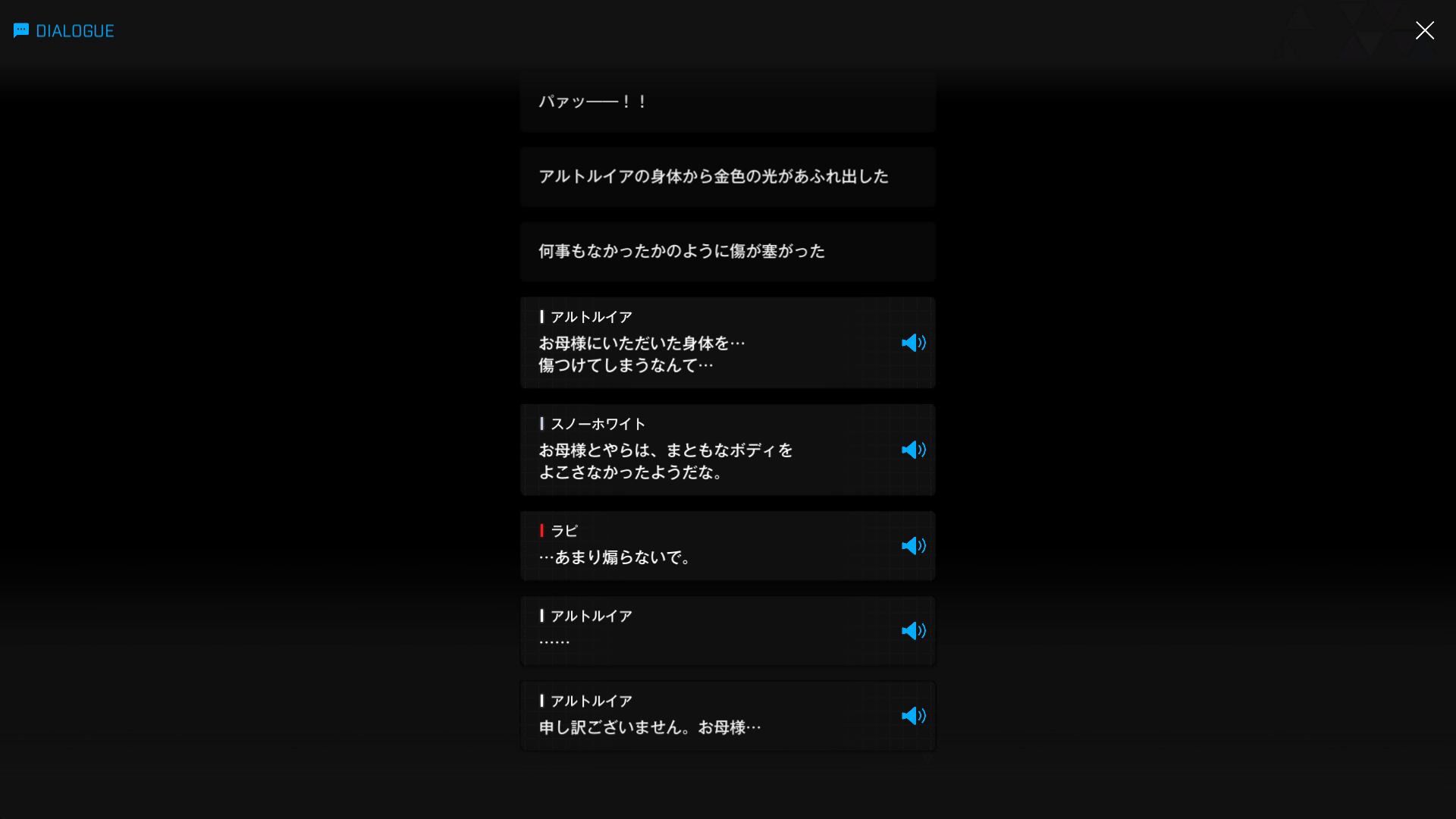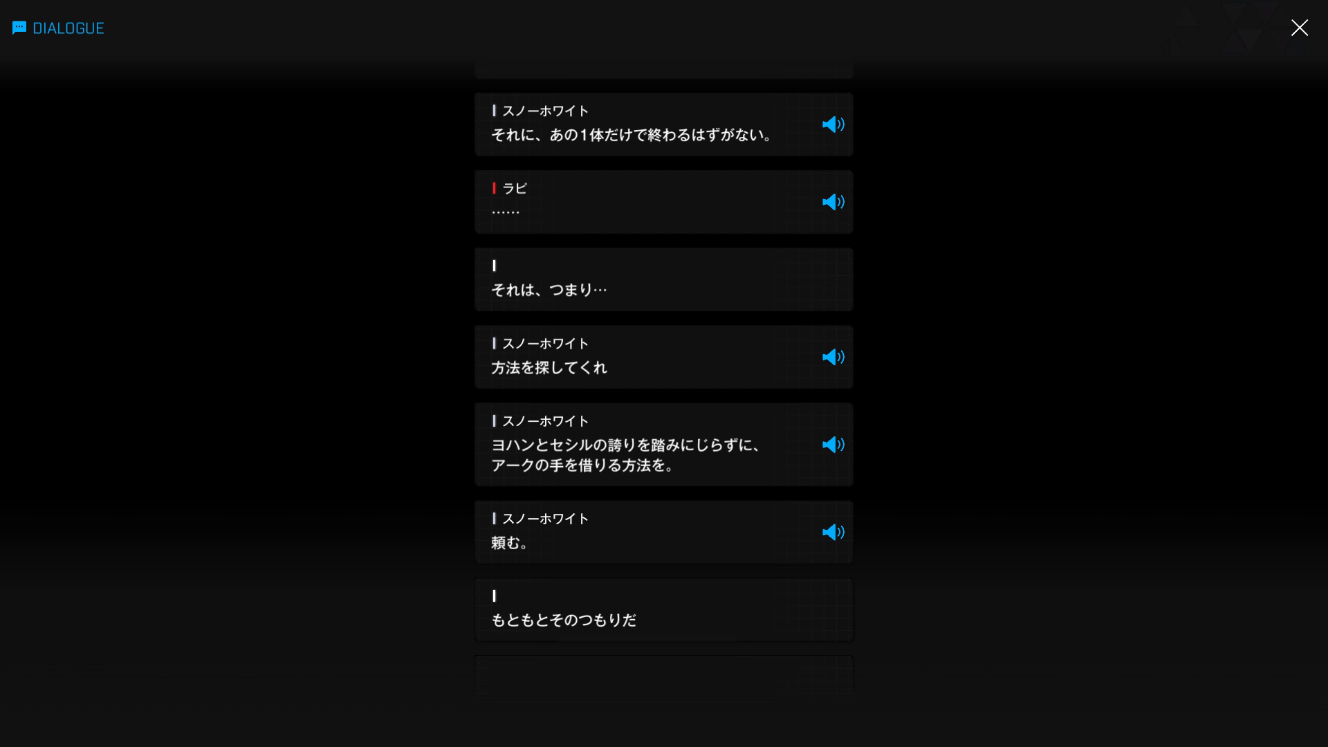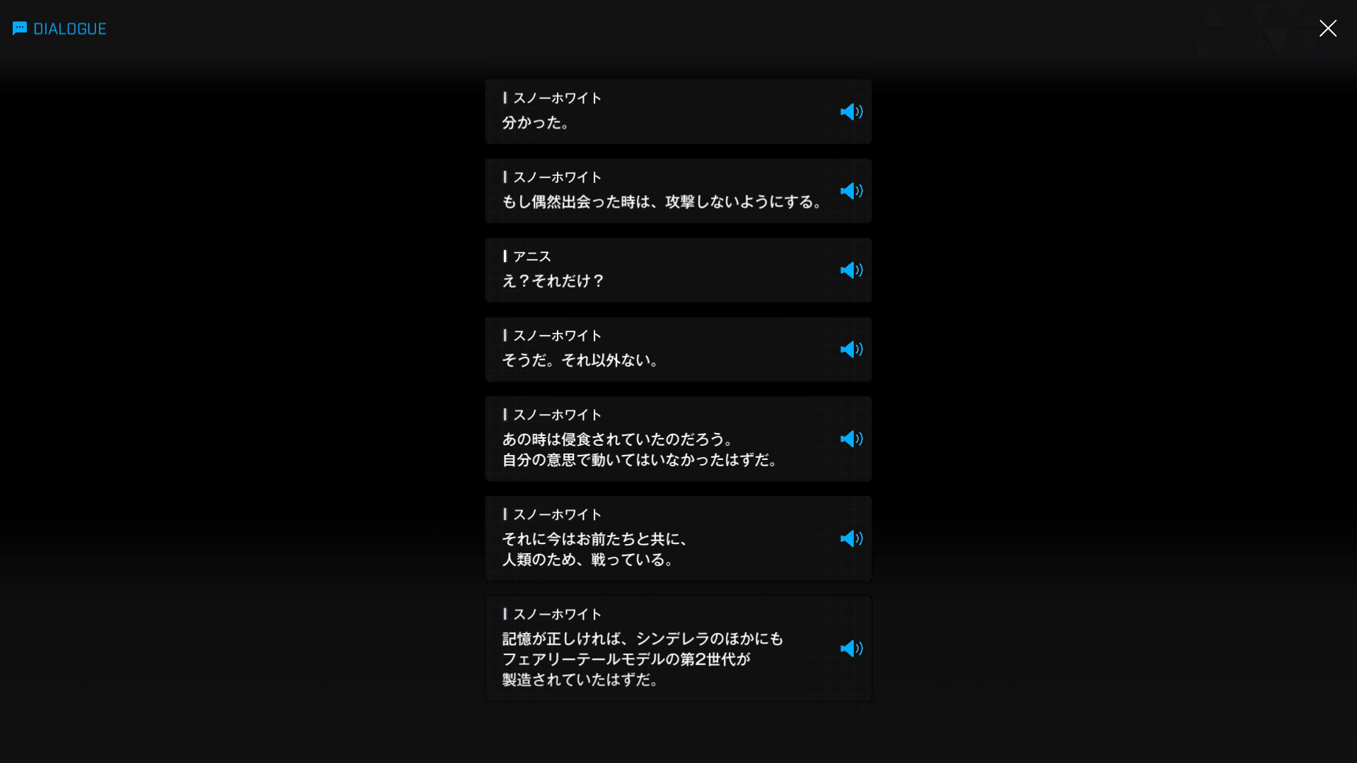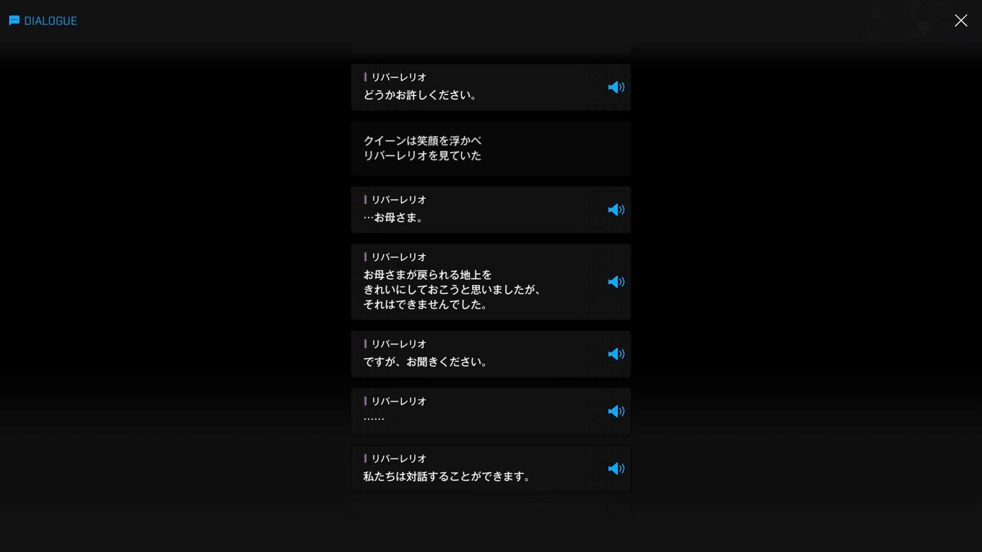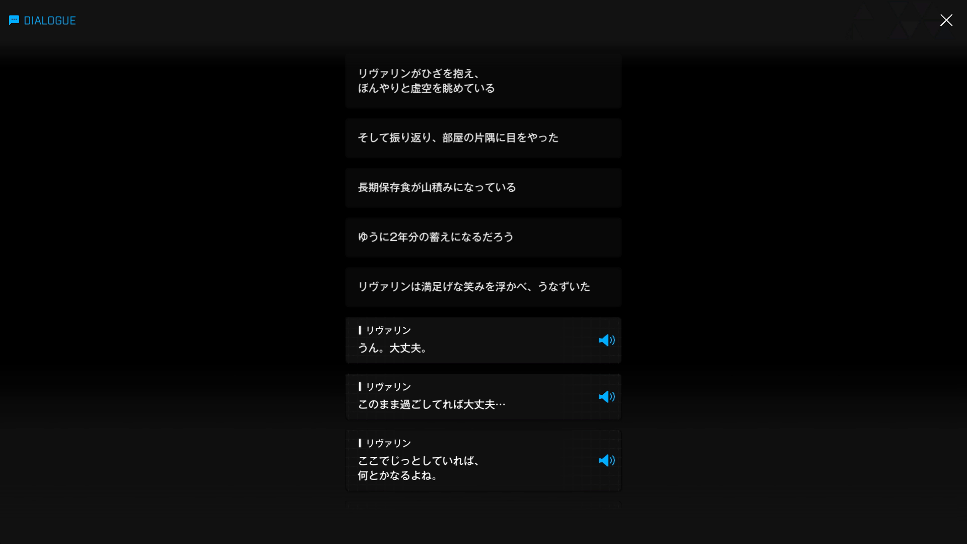 ・主人公が退室前にマリアンの頭をなで、ブレインシェルターに保管されたままの3名も助けると心に誓う → 帰路に就く前、セシルと以下SSのような会話を交わす