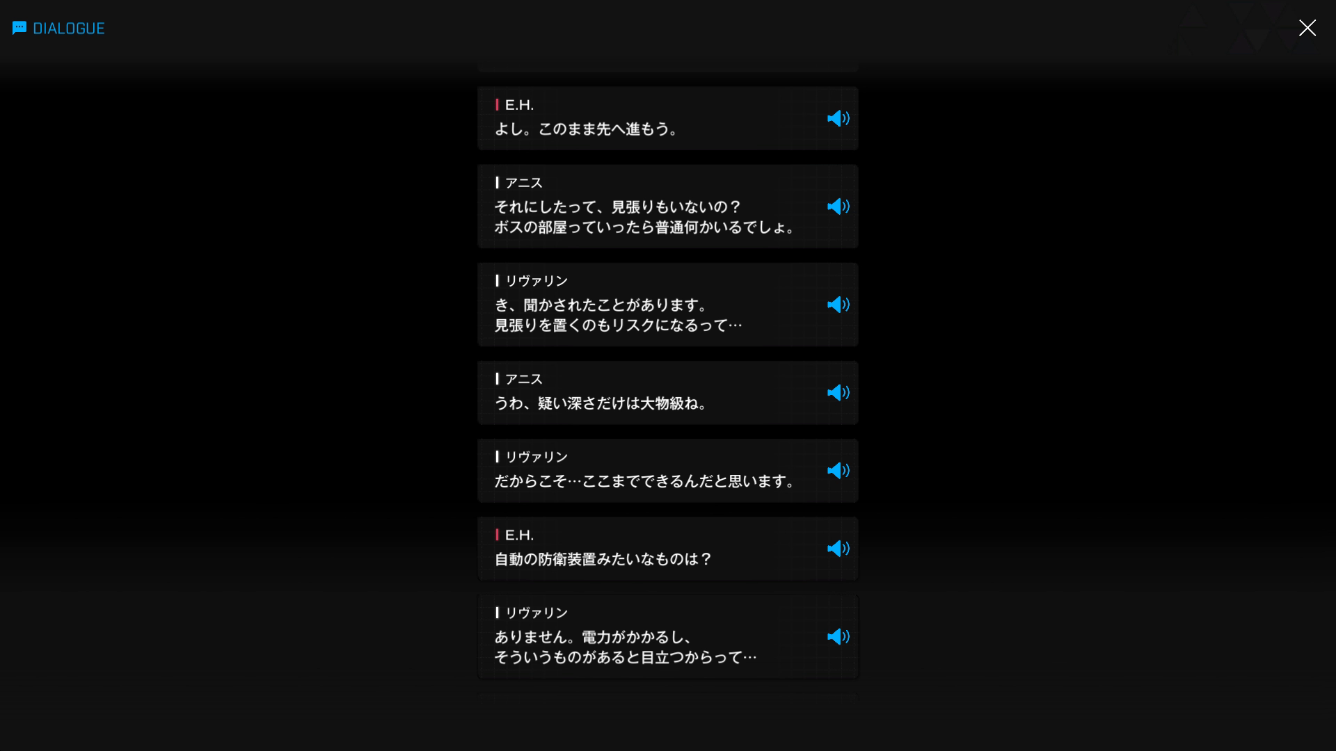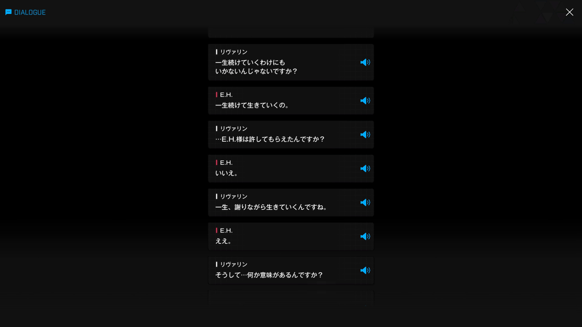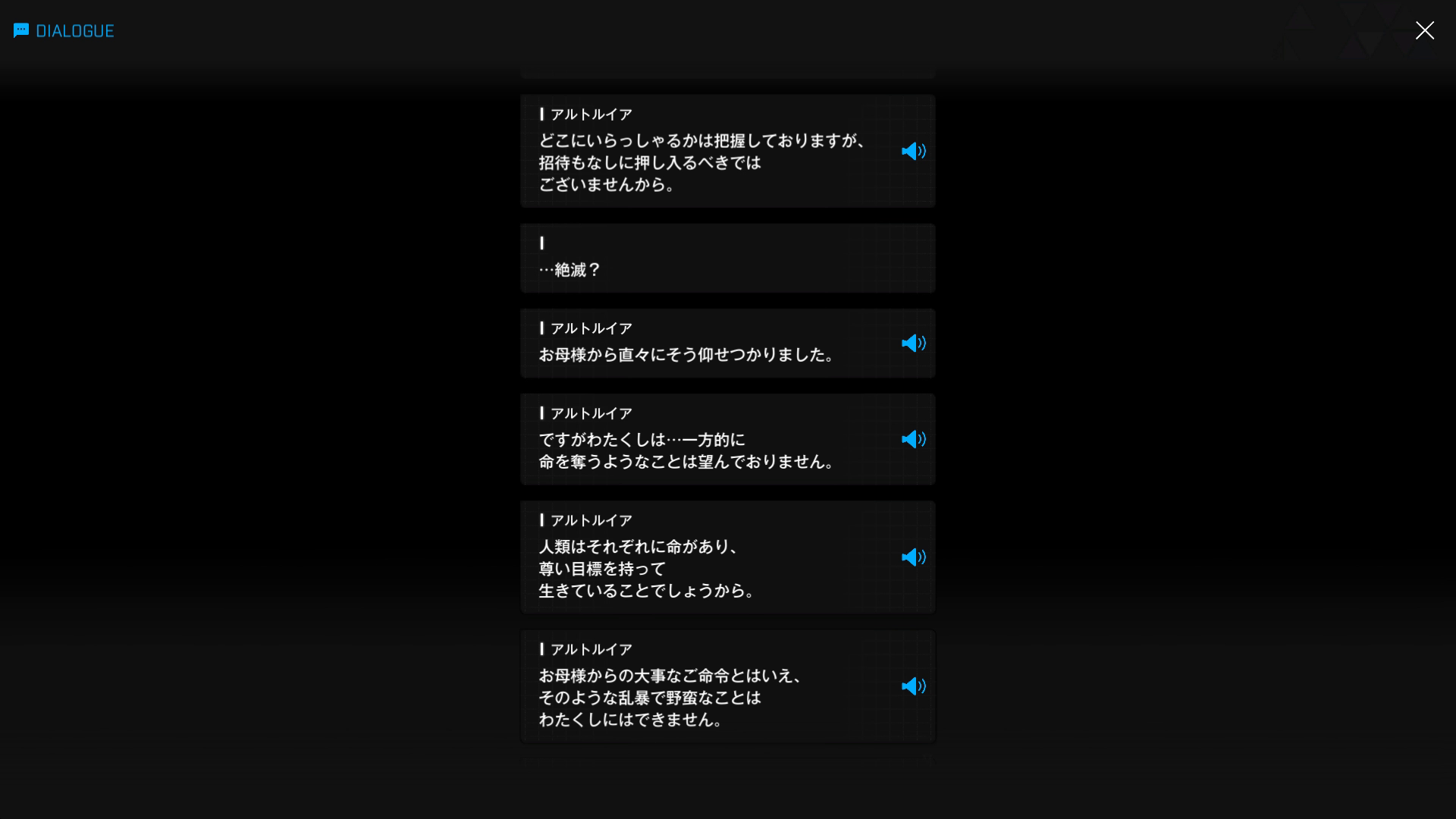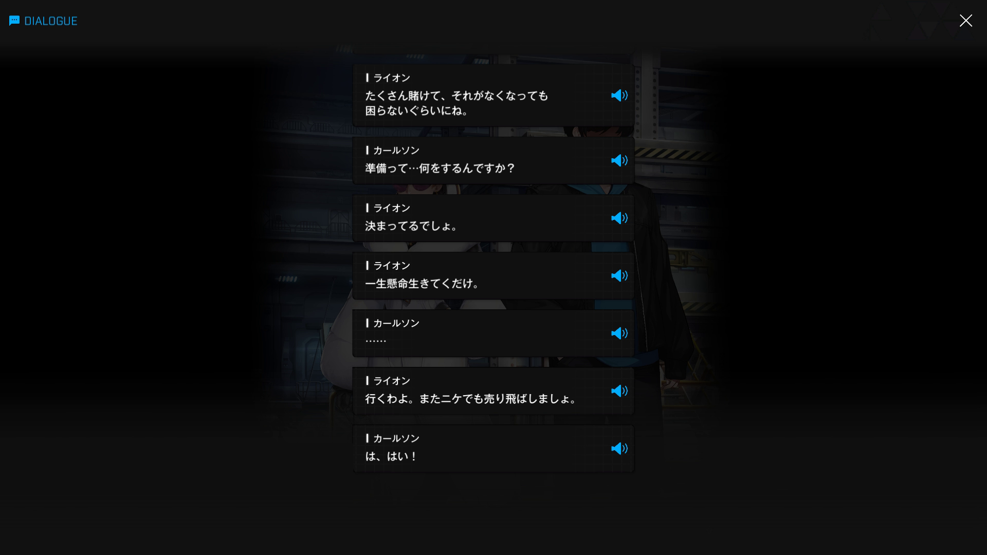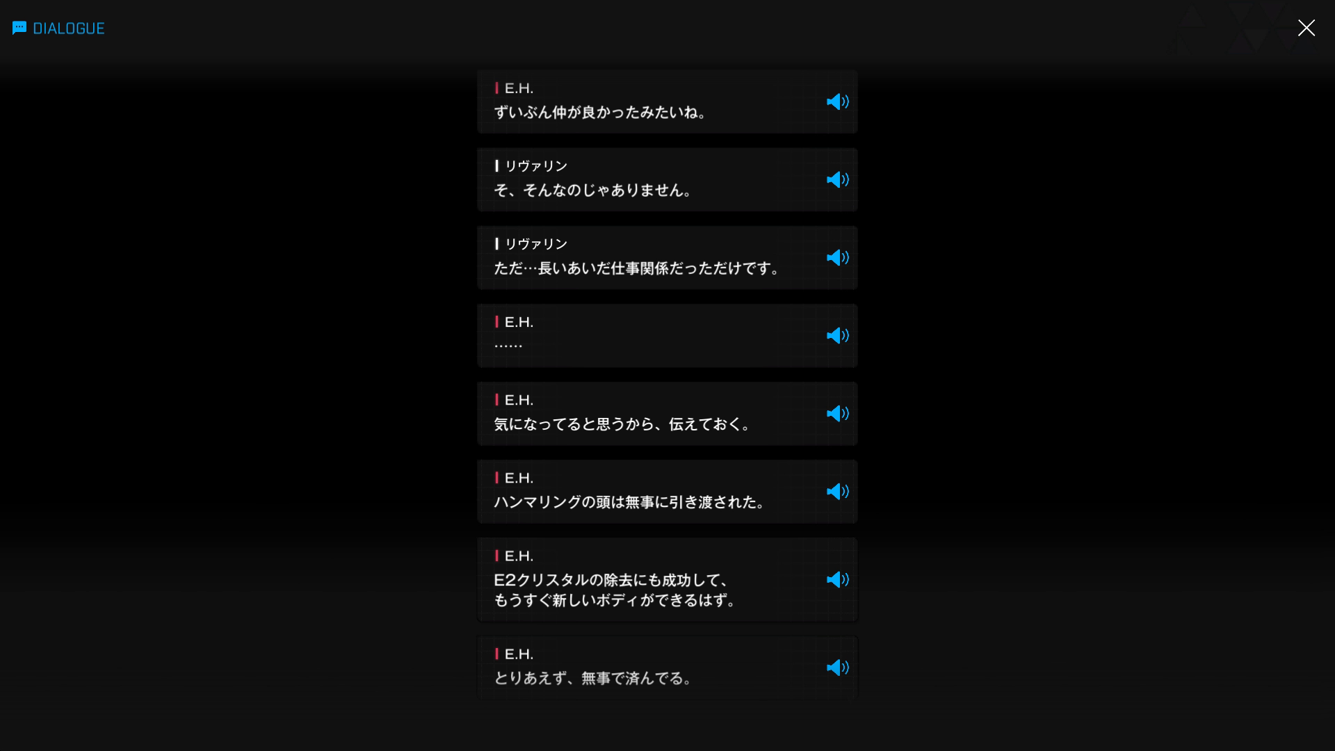 ・主人公が退室前にマリアンの頭をなで、ブレインシェルターに保管されたままの3名も助けると心に誓う → 帰路に就く前、セシルと以下SSのような会話を交わす