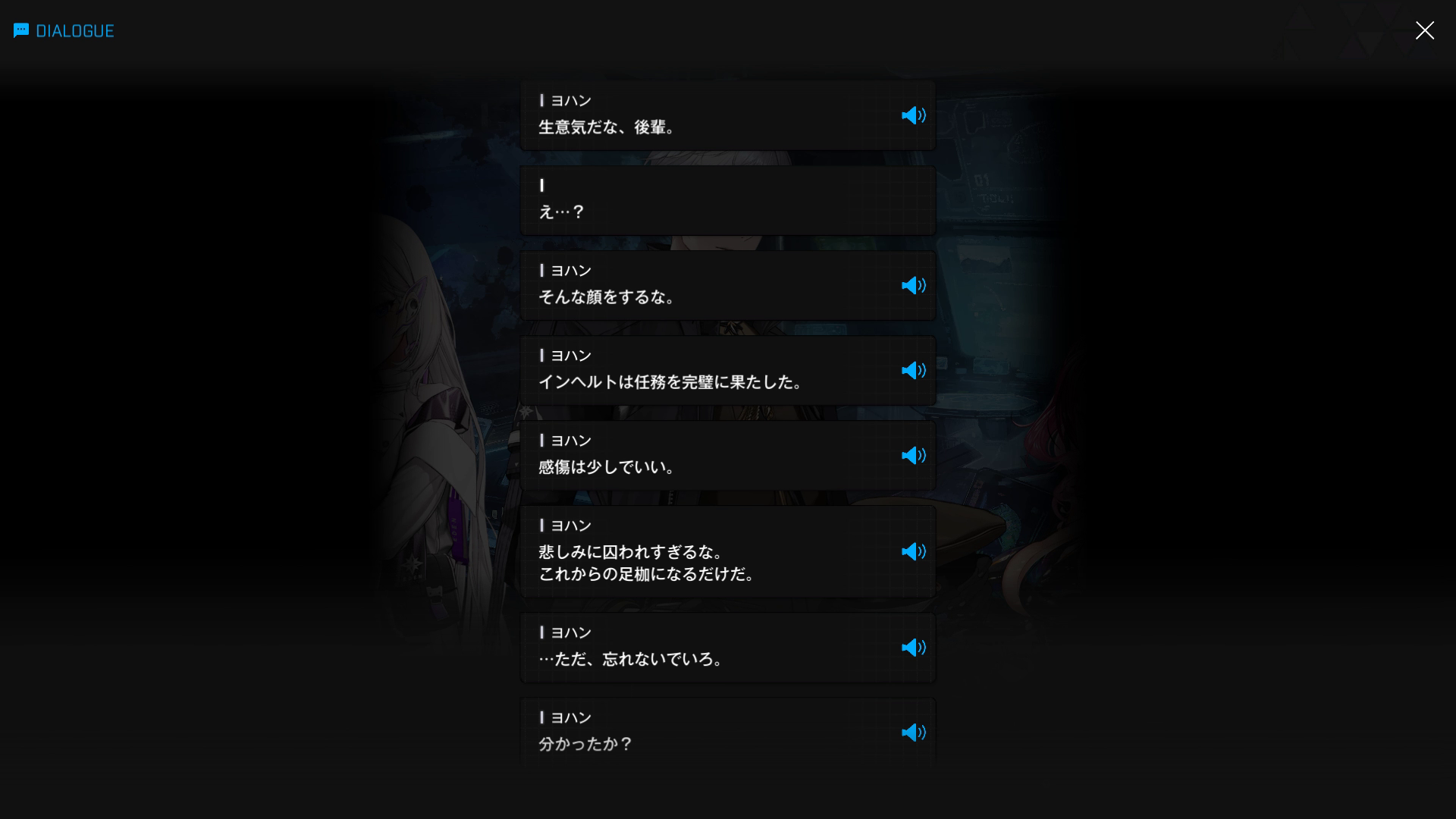 ・主人公を「従者、従者(ヨシヨシ)」と可愛がってくれたハラン &「愛しいあなた♡」と、ストーカーも尻尾を巻いて逃げるレベルで惚れられた彼女達の形見はおろか、遺灰の1粒 & 髪の毛1本でさえ残っていない状況に、さすがの彼も悲しみに打ちひしがれる → そんな後輩を見かねた先輩が、以下SSのように諭す