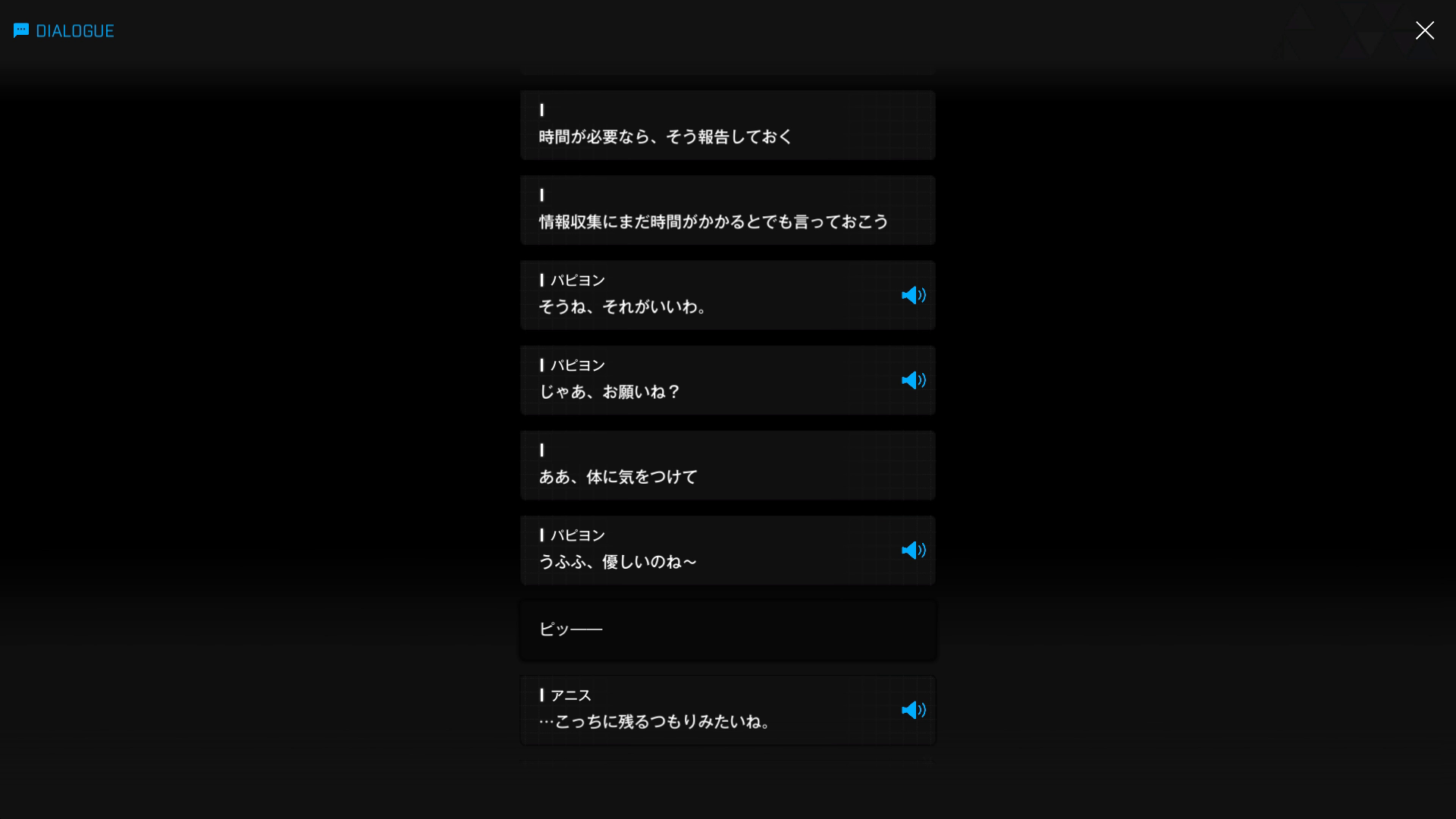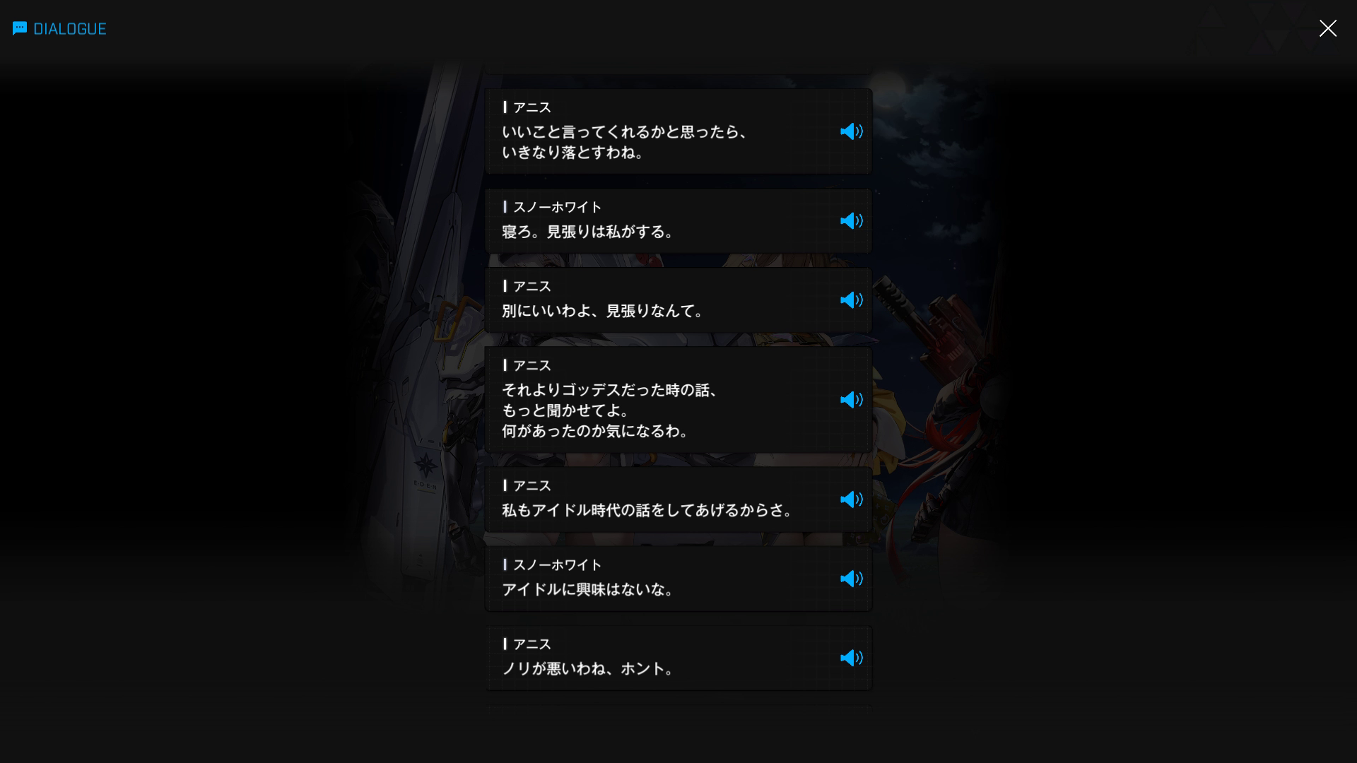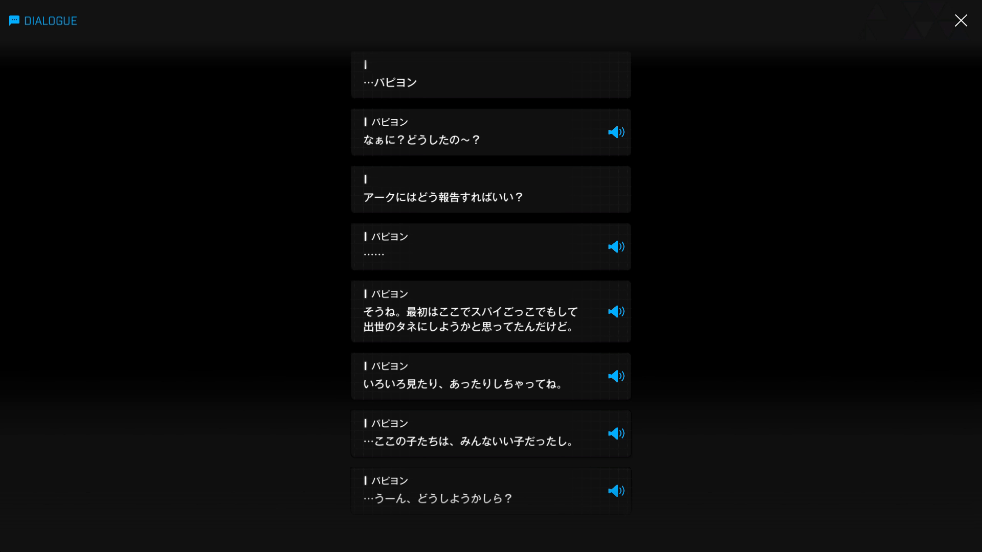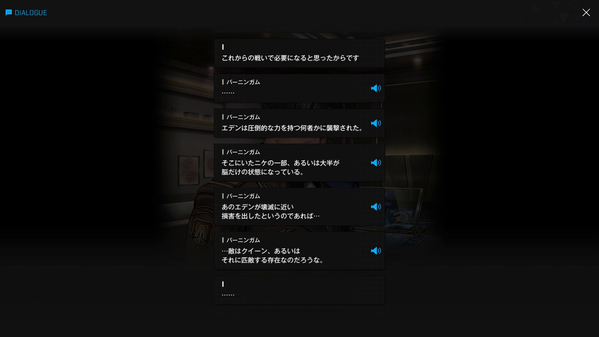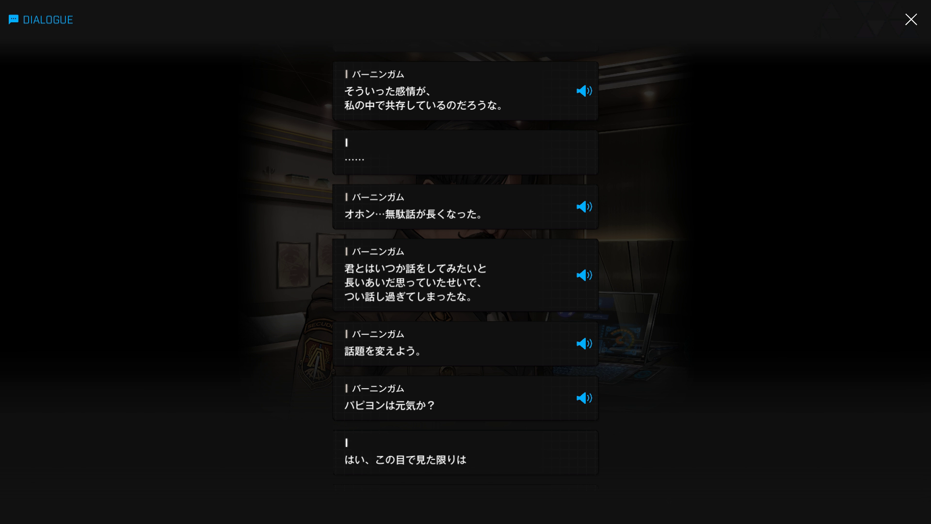 ・続けてパピヨンとも以下SSのような話をする → 忘れている諸兄はいないと思うが、元々はバーニンガムが主人公の行動を監視するために送り込んだニケであり、まだエデンのメンバーではない(居候のスパイという感じ)