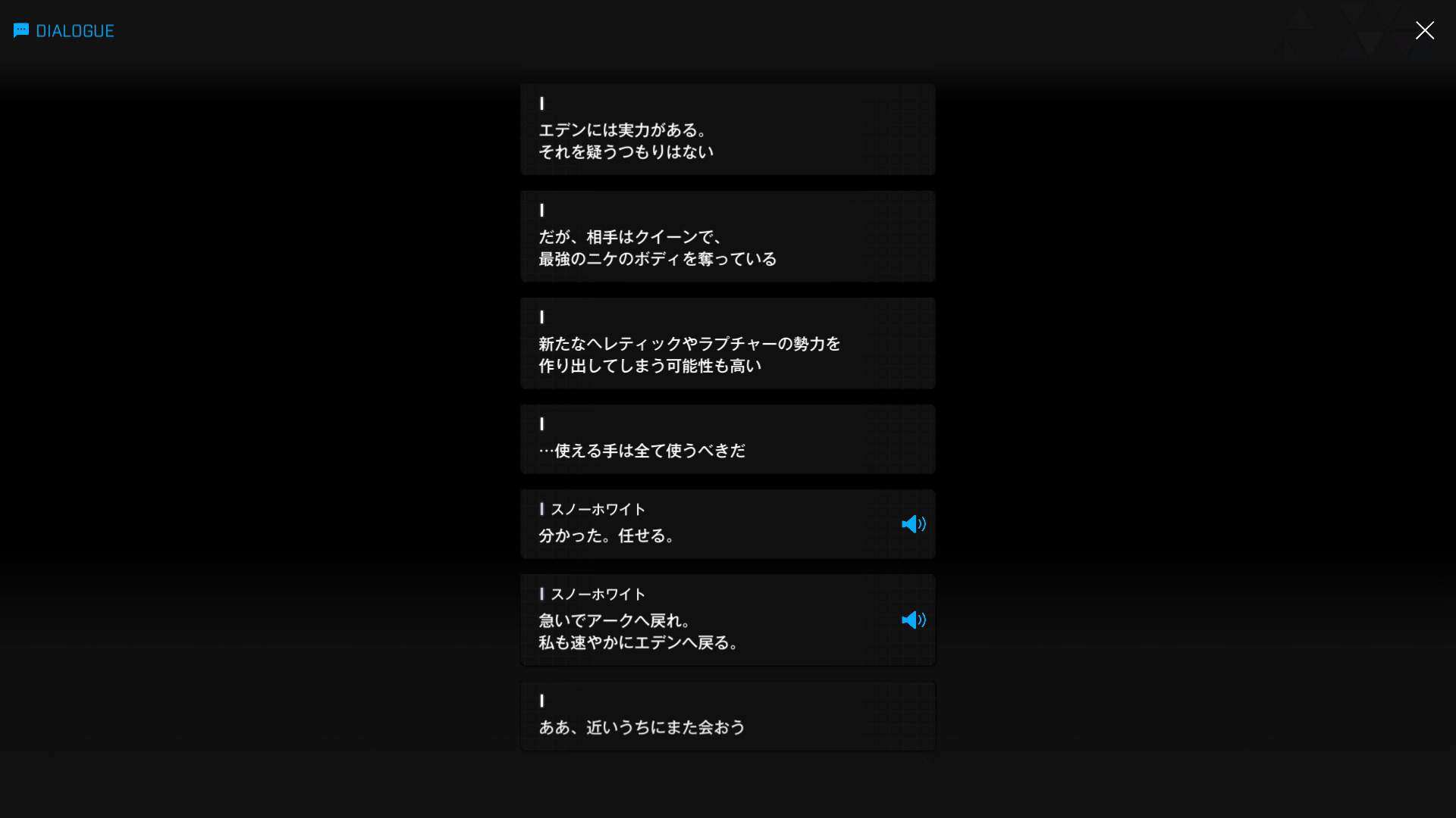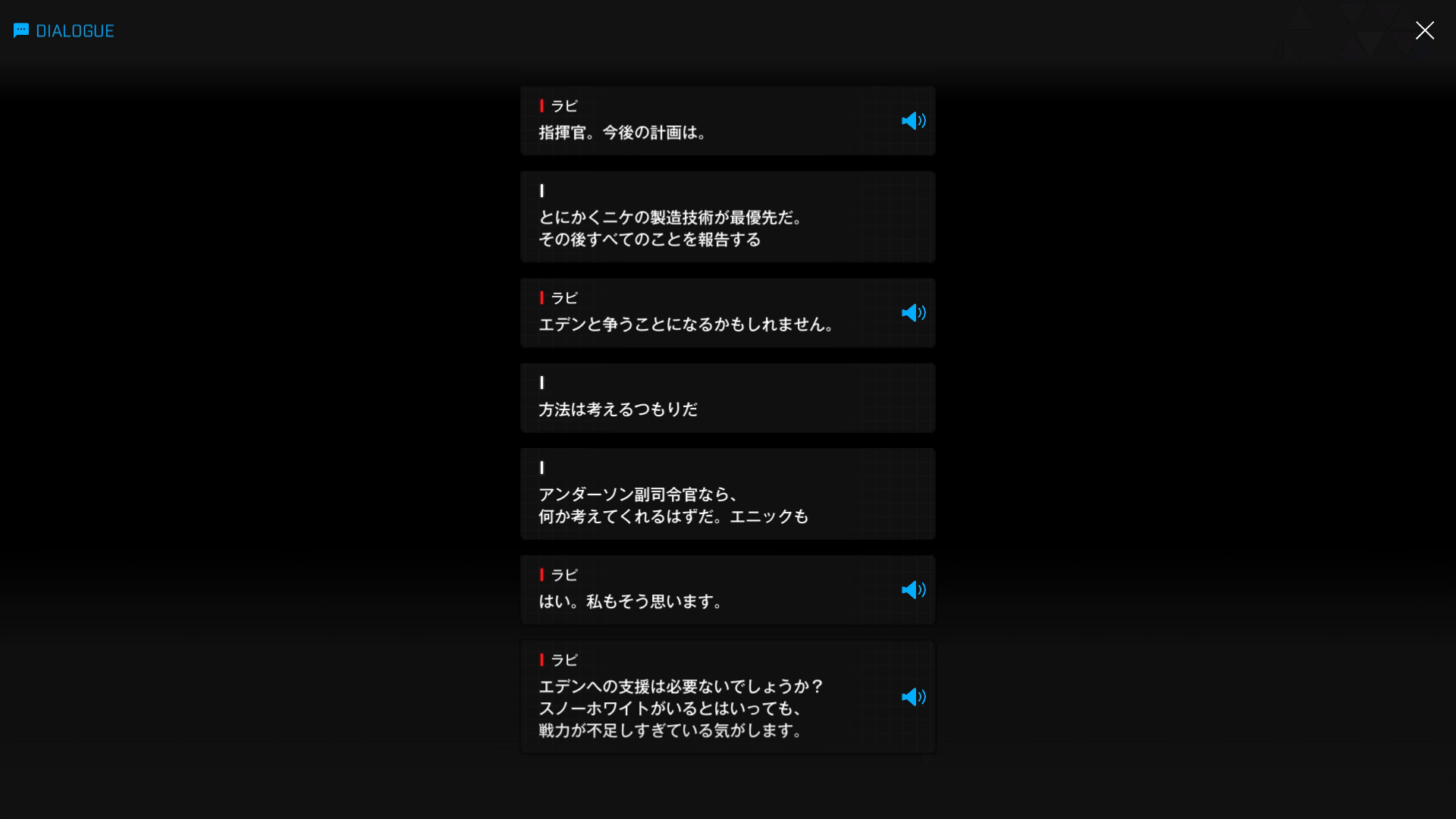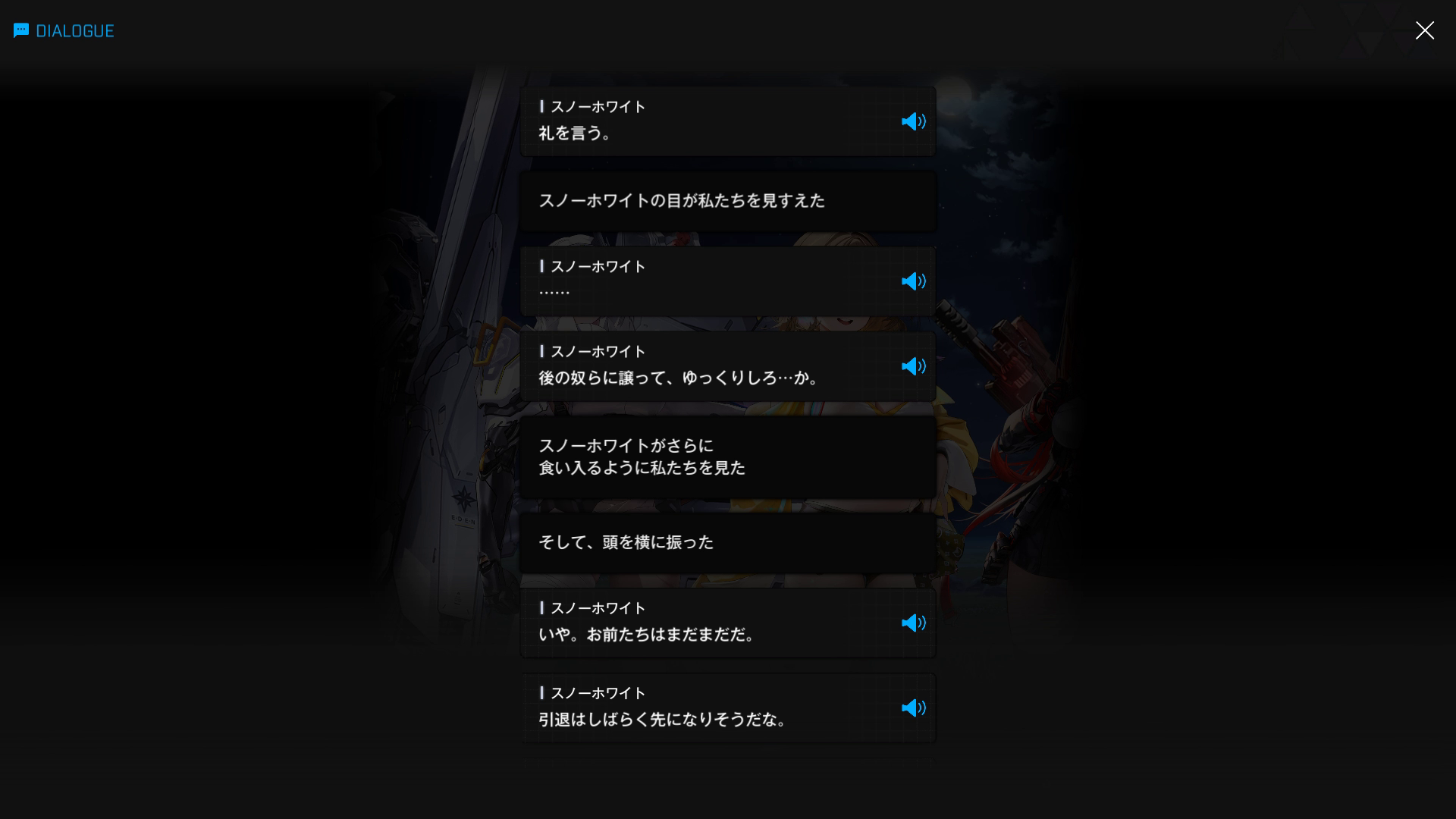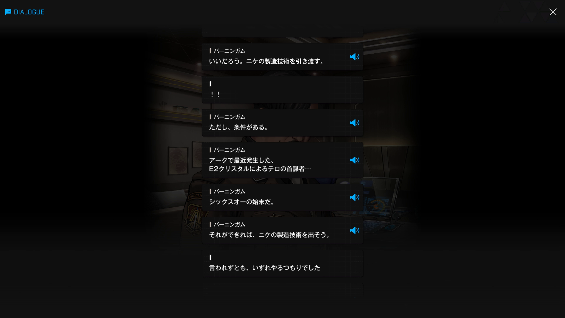 ・続けてパピヨンとも以下SSのような話をする → 忘れている諸兄はいないと思うが、元々はバーニンガムが主人公の行動を監視するために送り込んだニケであり、まだエデンのメンバーではない(居候のスパイという感じ)