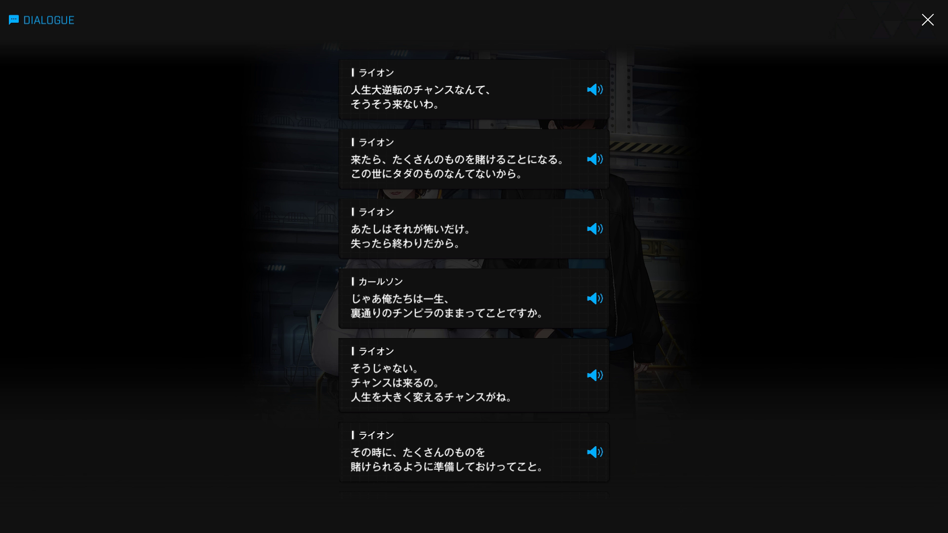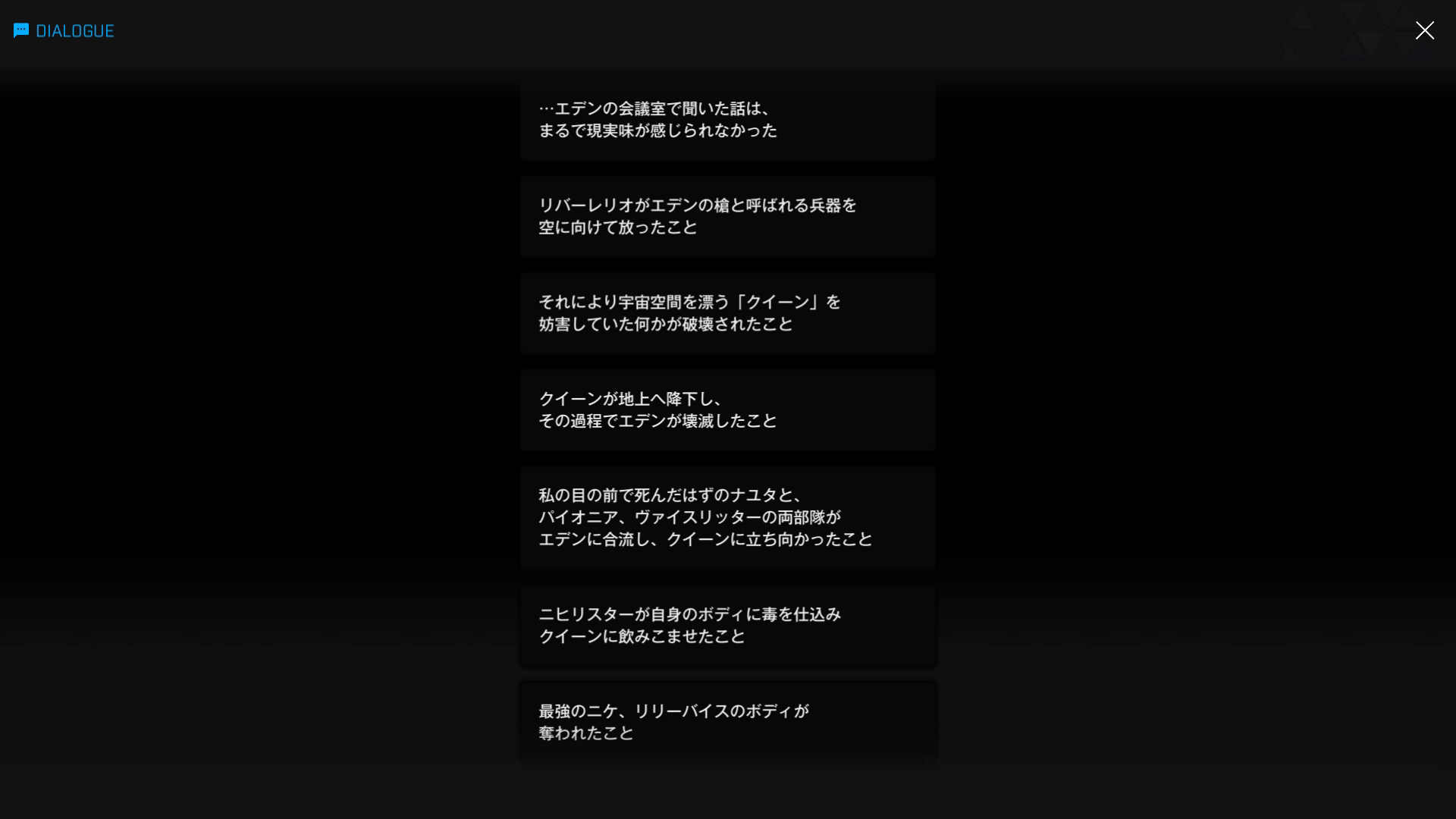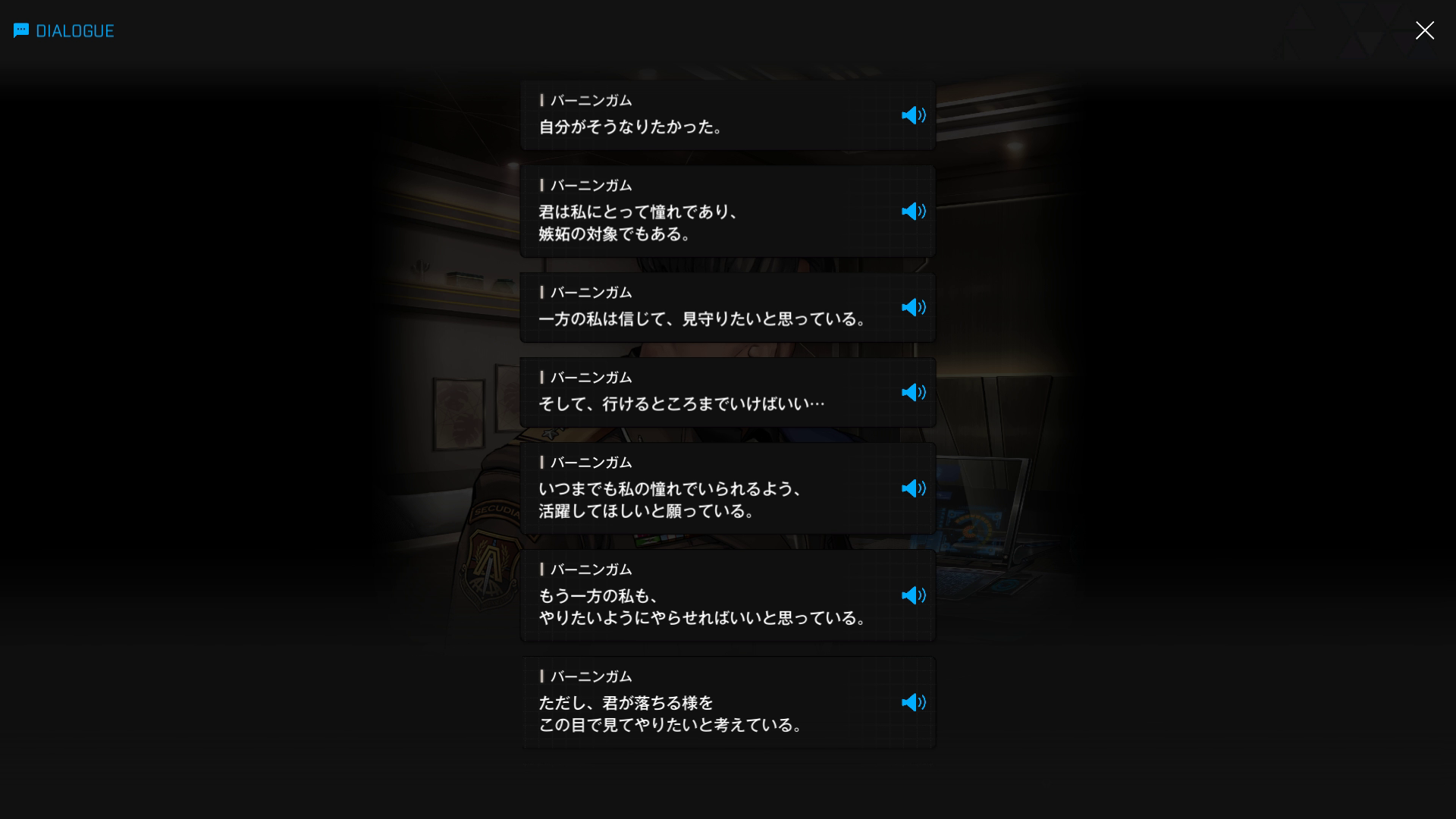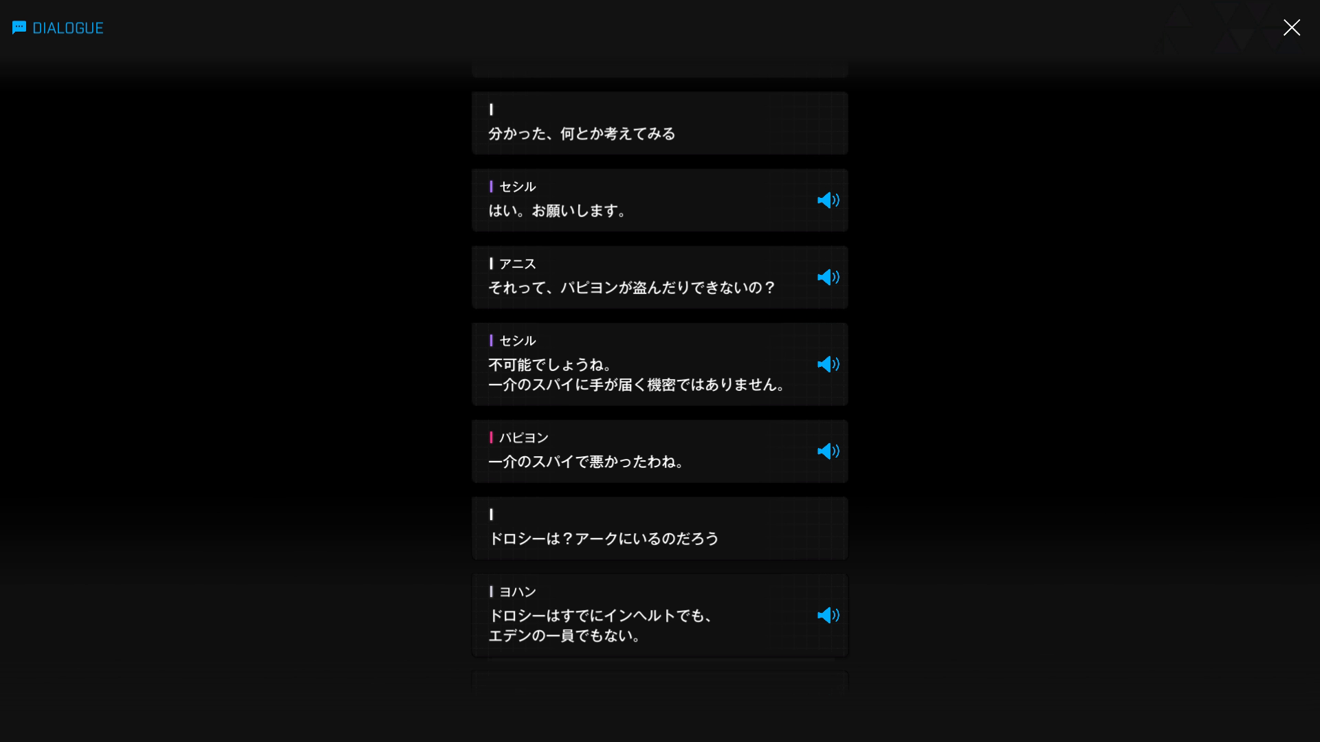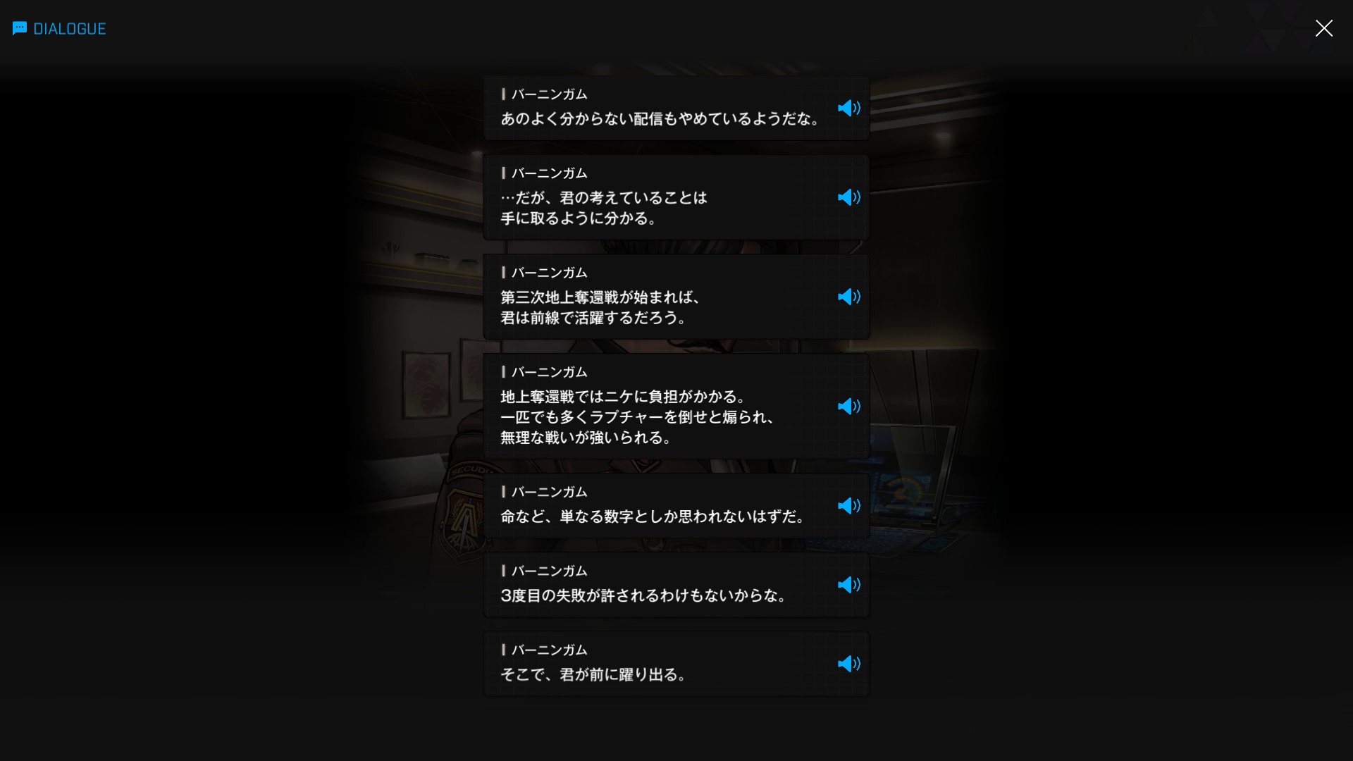・続けてパピヨンとも以下SSのような話をする → 忘れている諸兄はいないと思うが、元々はバーニンガムが主人公の行動を監視するために送り込んだニケであり、まだエデンのメンバーではない(居候のスパイという感じ)