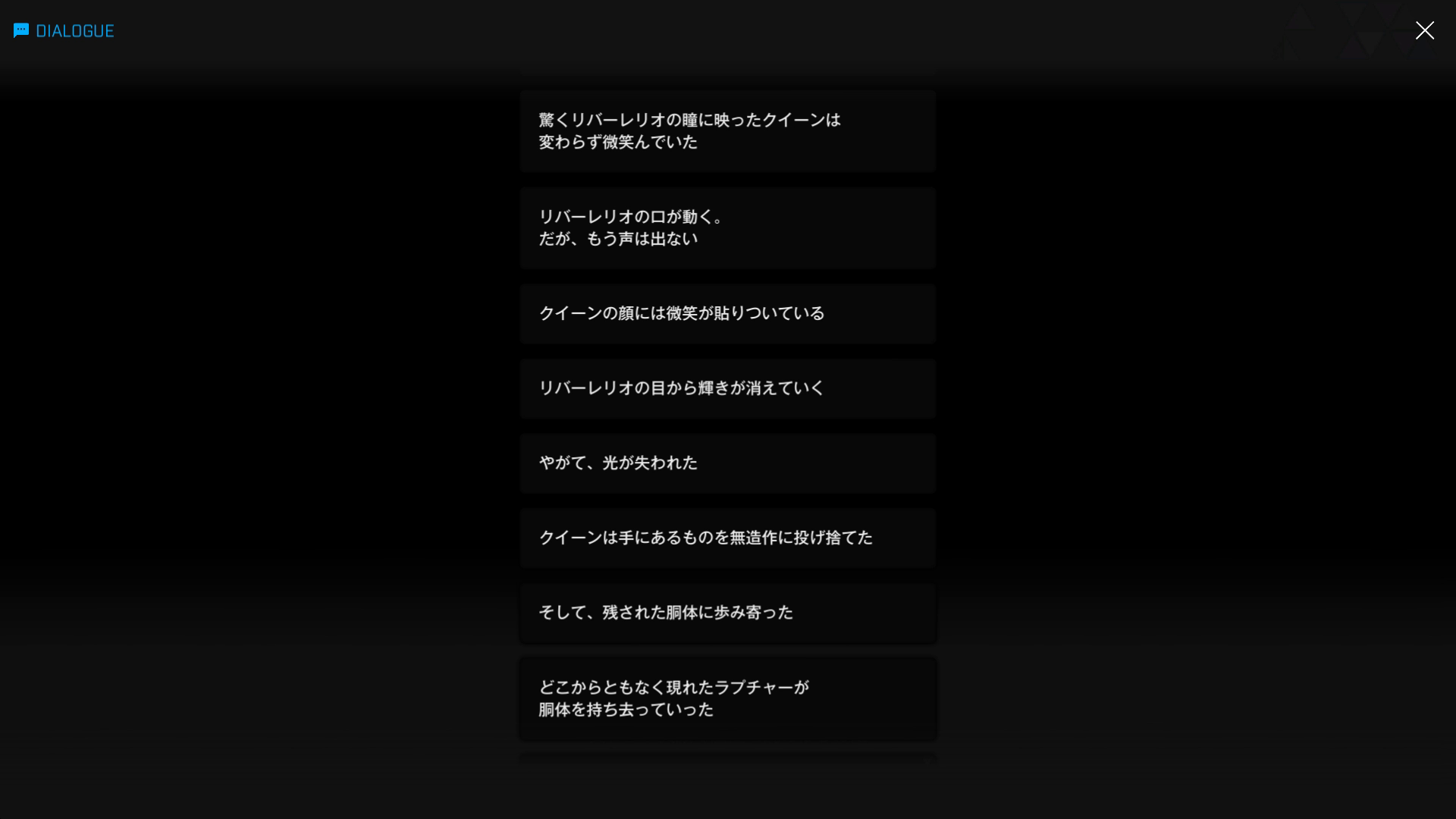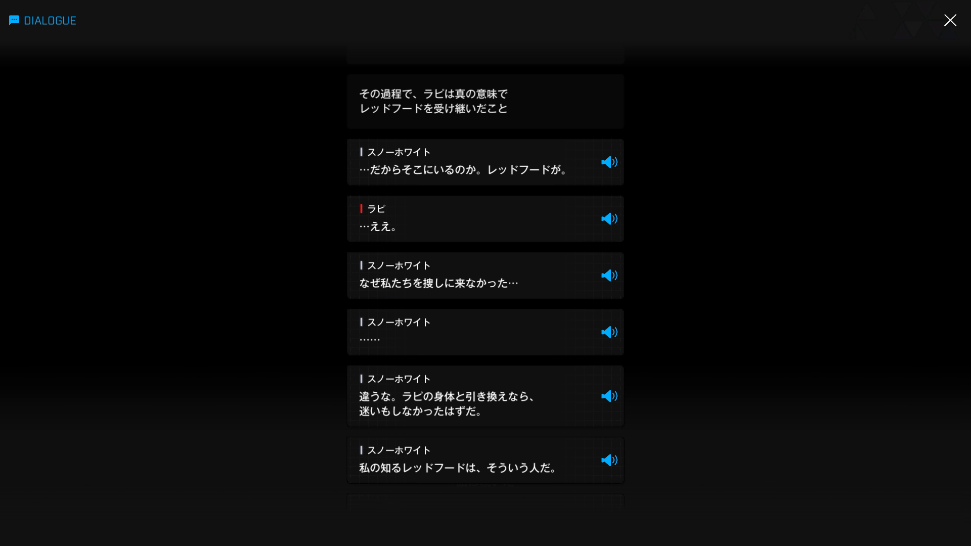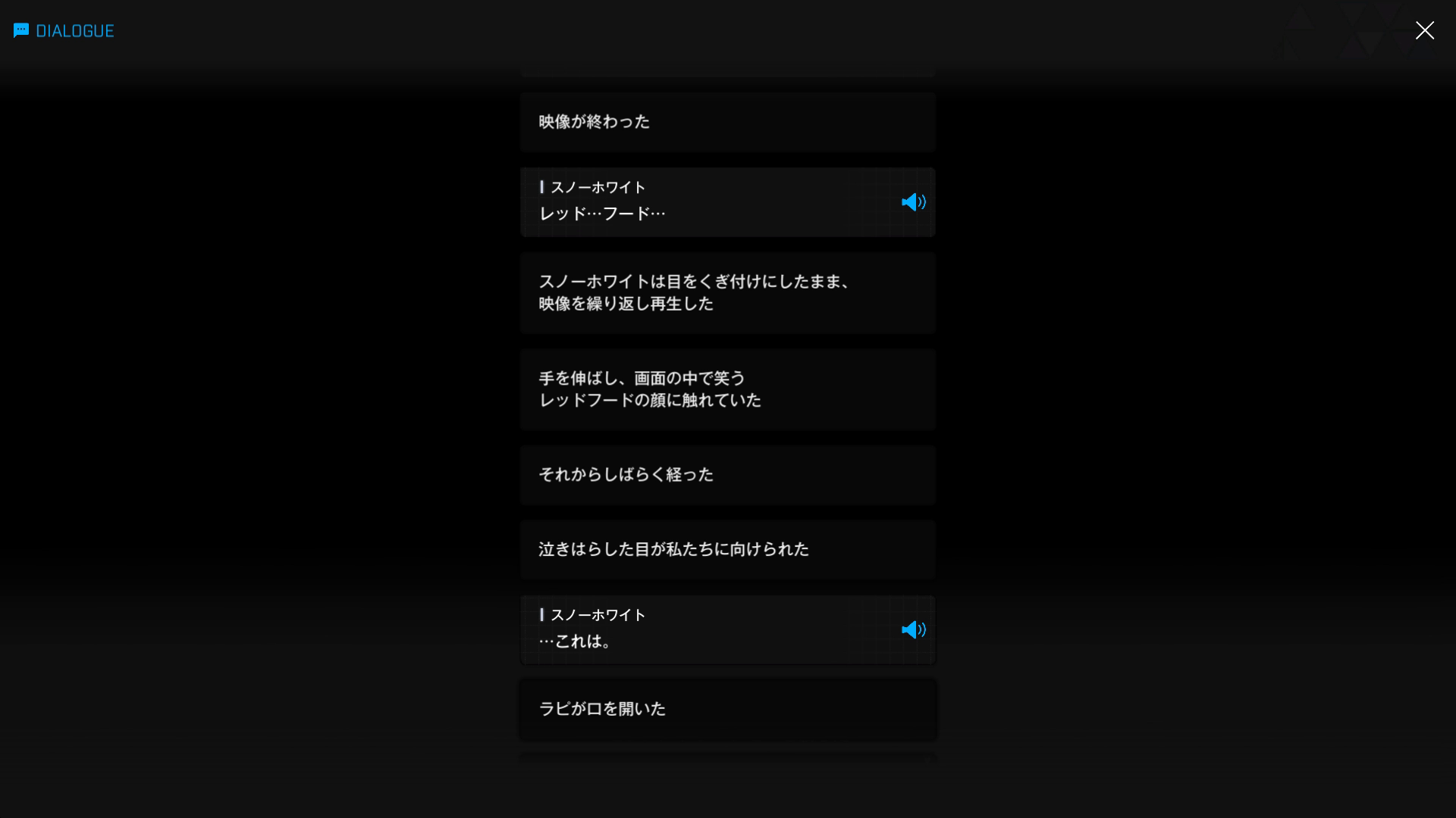 上記2枚目1段落で真っ先に食べ物の話が出るのは彼女らしいが、諸兄も5~6段落の台詞 & 映像が出た時点で、彼の言う「プレゼント」が何か理解したはず → こちらの『戻りたくて:B』でレッドフードが遺したメッセージのこと