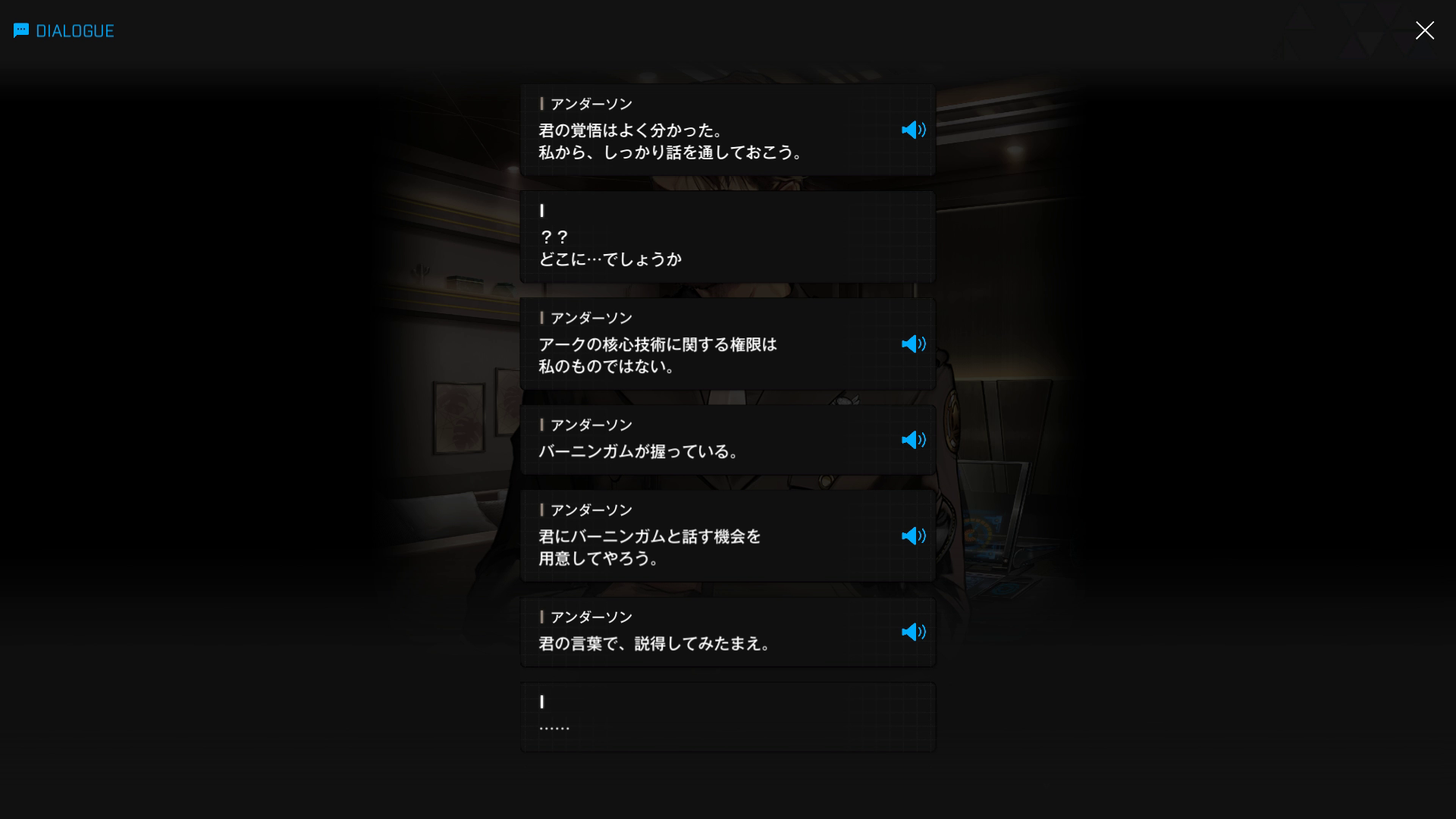 ・アーク帰還後、アンダーソンに事の経緯を説明する → イベント『GODDDESS FALL』を閲覧済みの諸兄なら、2枚目1段落の気持ちが痛いほどお分かりいただけるはず