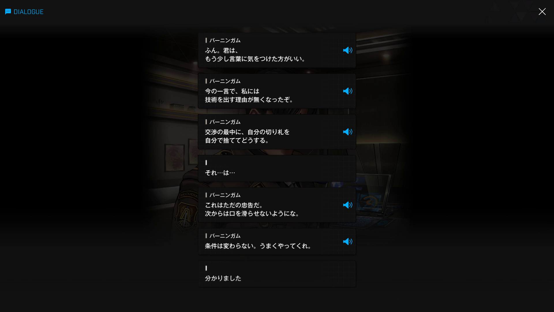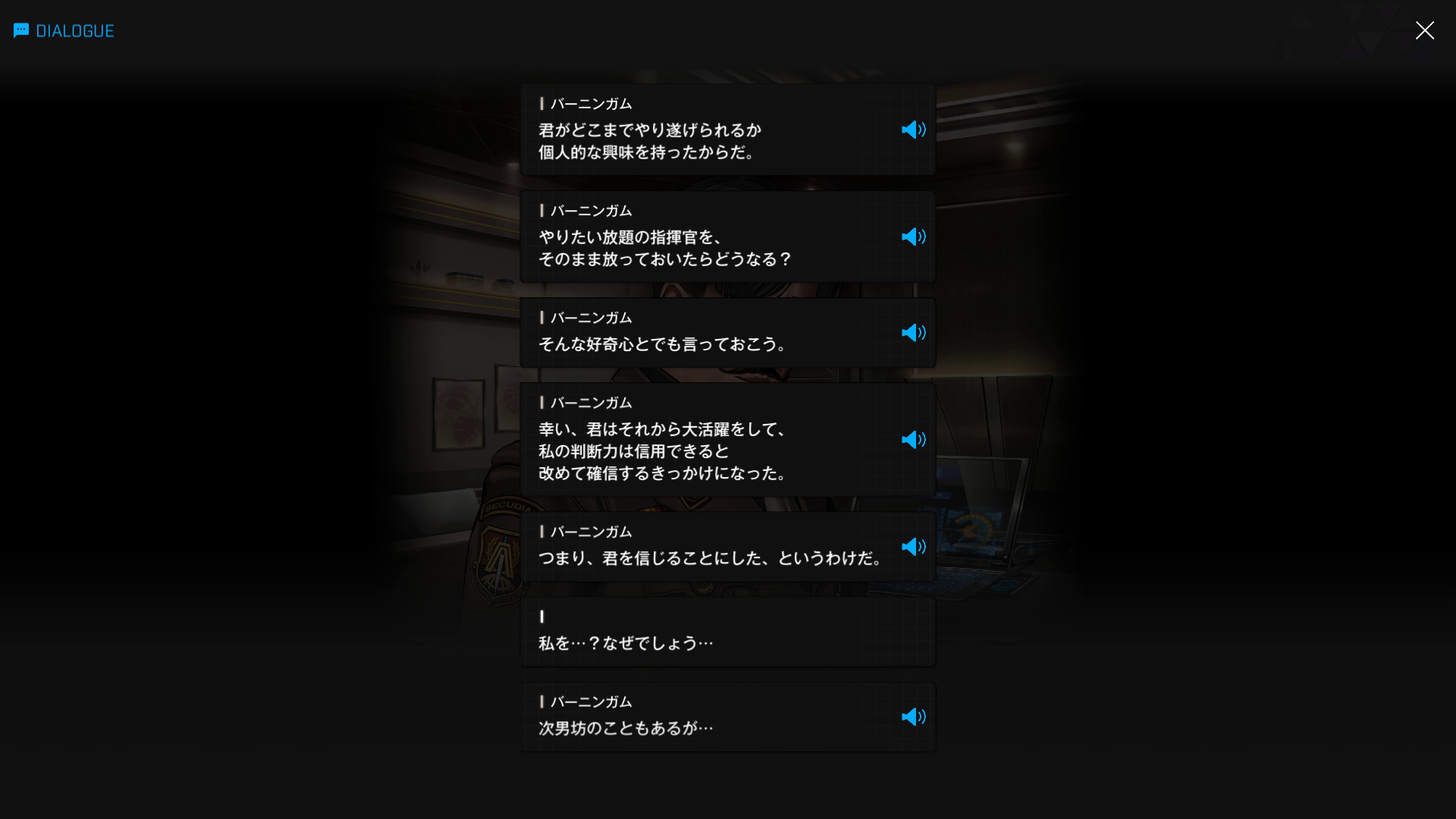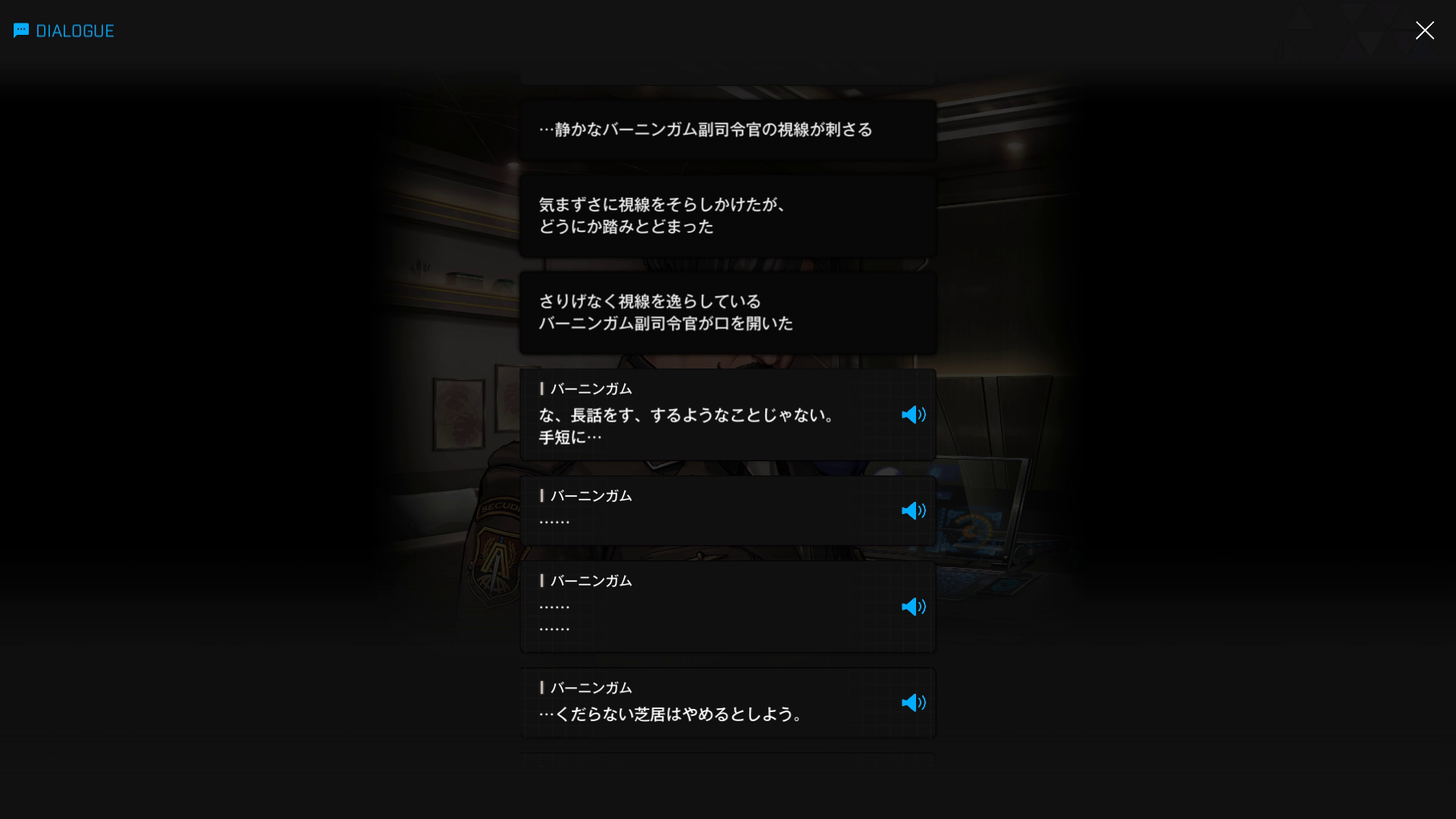 もしバーニンガムが短気 or 主人公がシュエンのように問題ばかり起こすような指揮官だったなら、メタボ副司令官は「おお、私が依頼しようとしていた条件をタダでやってくれるということか。では、私が君の条件を飲む必要はないわけだから、シックスオーのことはよろしく頼むよ。話は以上だ、ご苦労だった」として、さっさと執務室から追い出しただろう