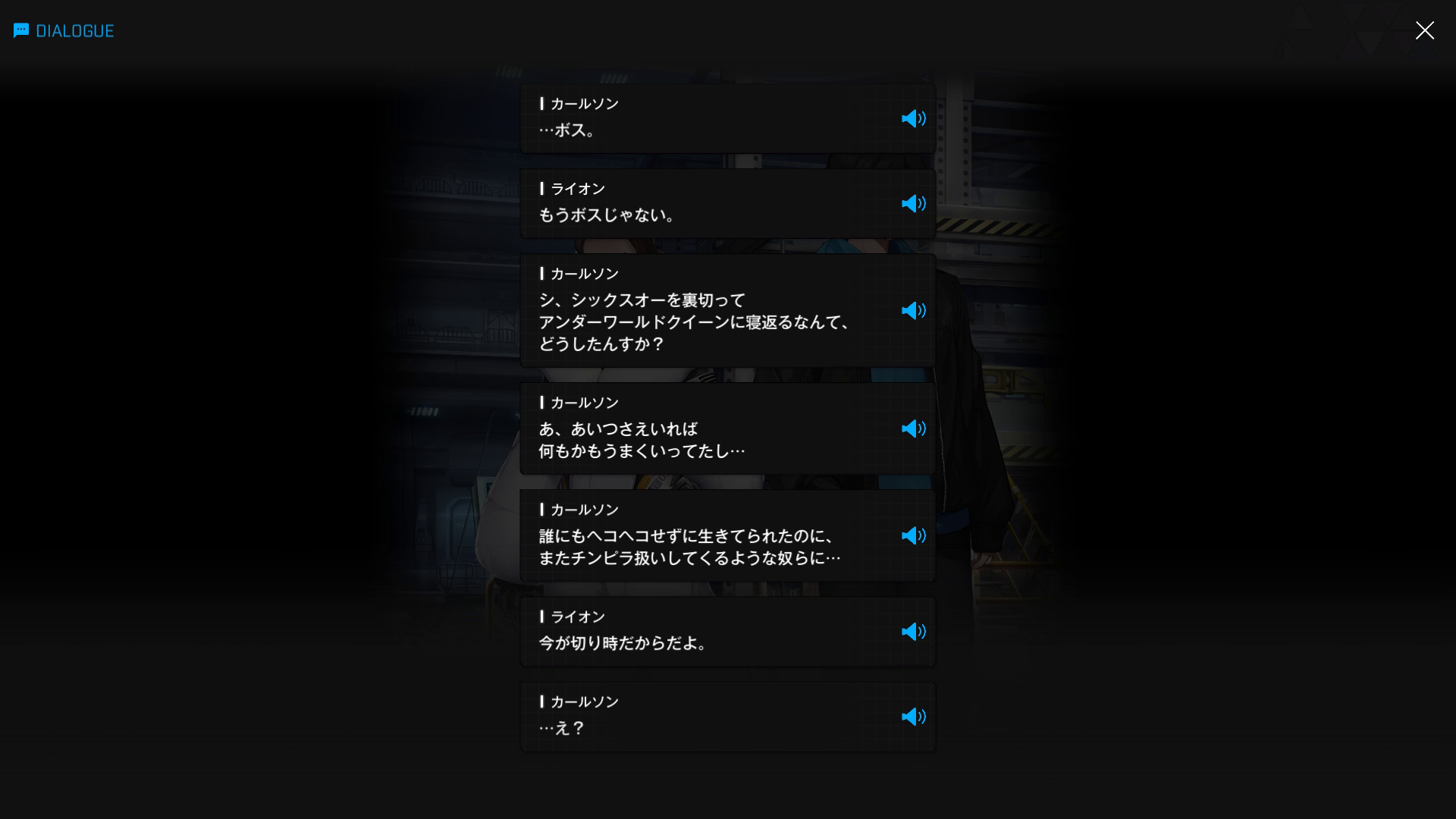 ・カールソンが、ついさっきまで獅子会のボス(現在はヘッドニア一員)だったライオンに説明を求める
