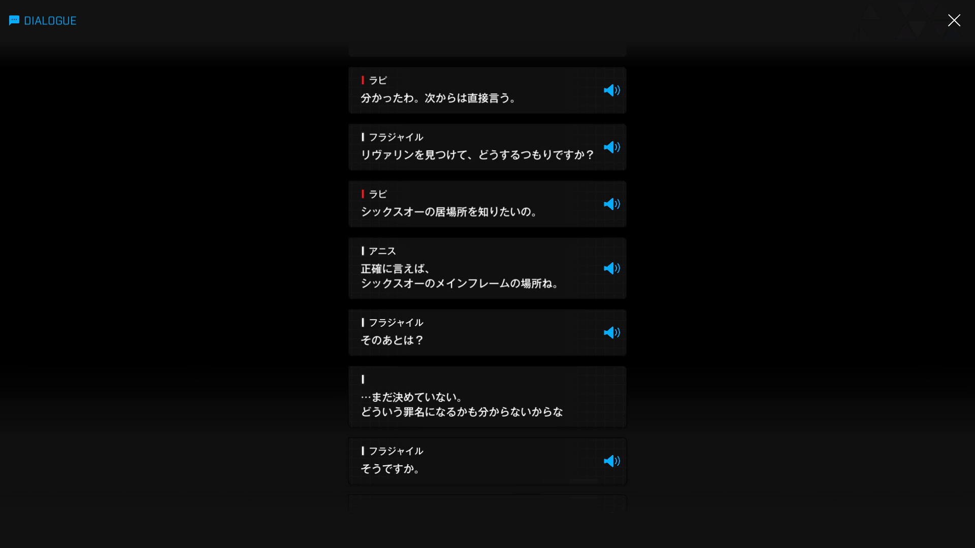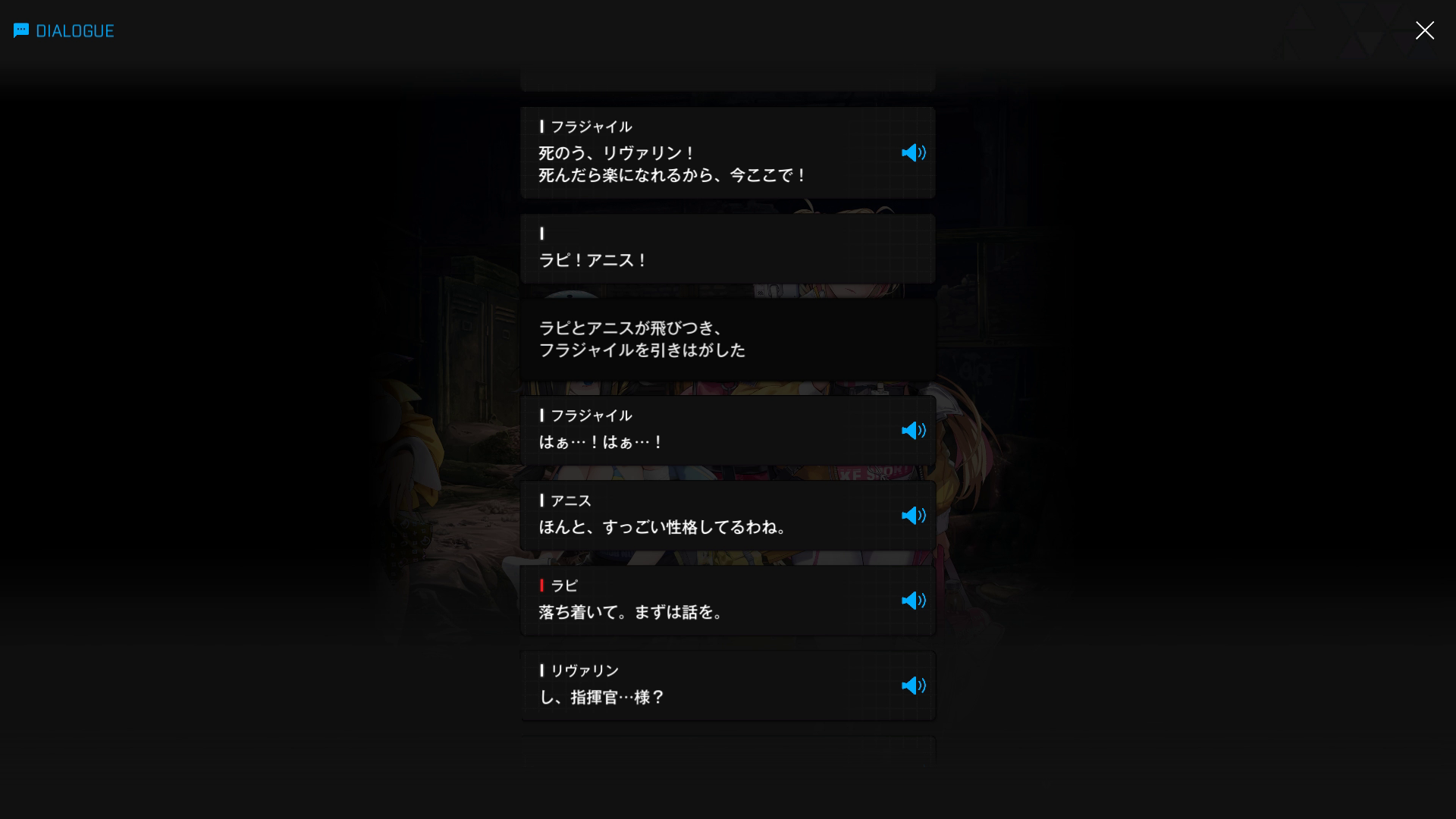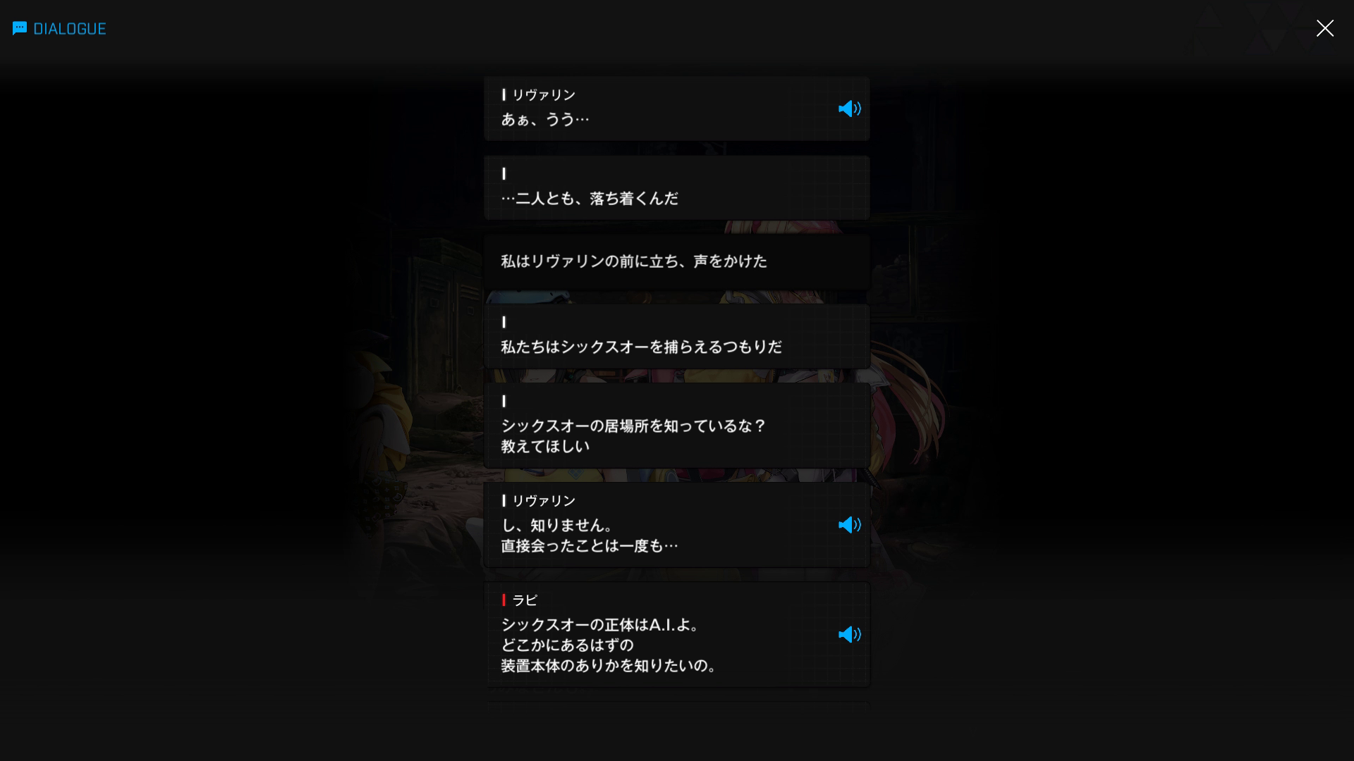 ・一方その頃、ラピRH & アニスと合流した主人公は、シックスオーの忠犬であるリヴァリンの居場所を特定すべく、同部隊メンバーのフラジャイルと面会