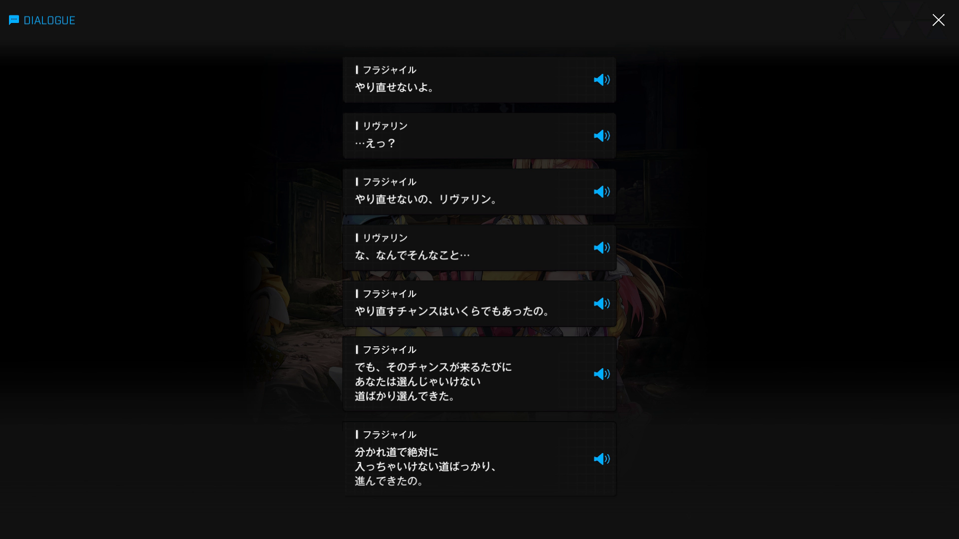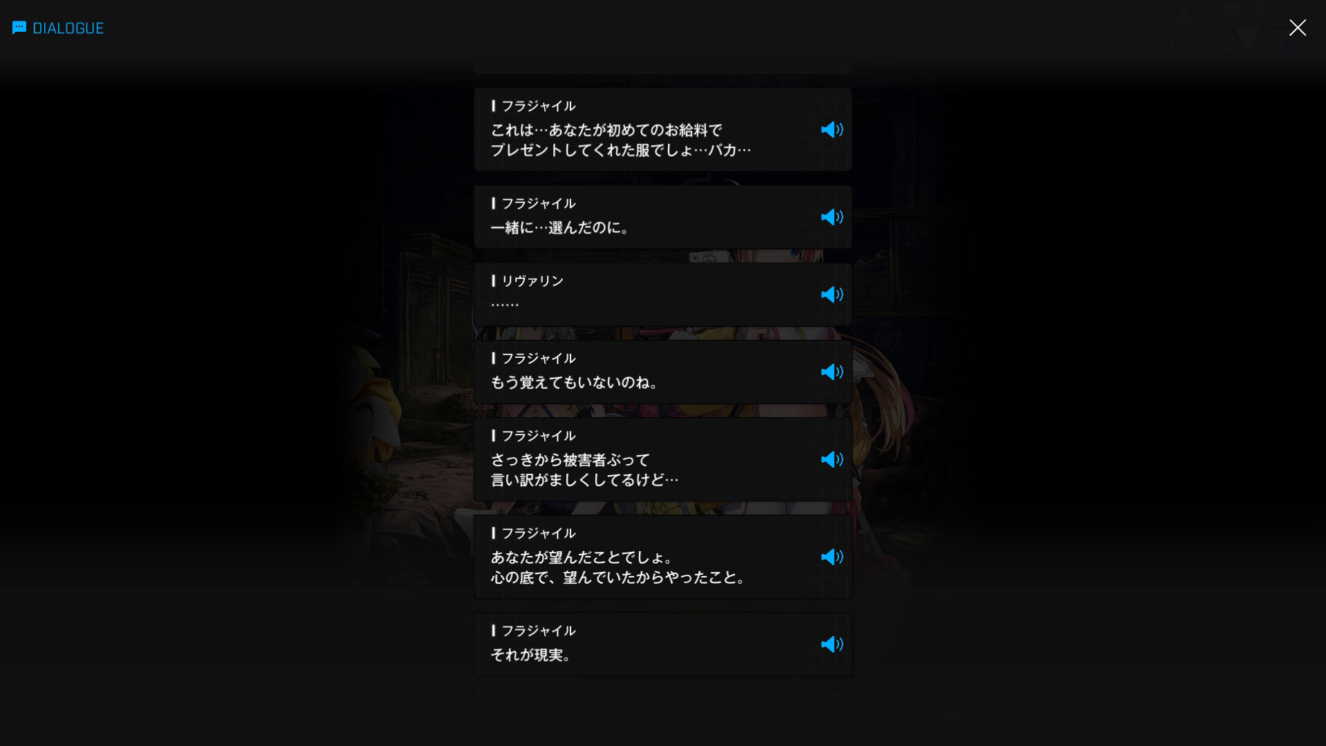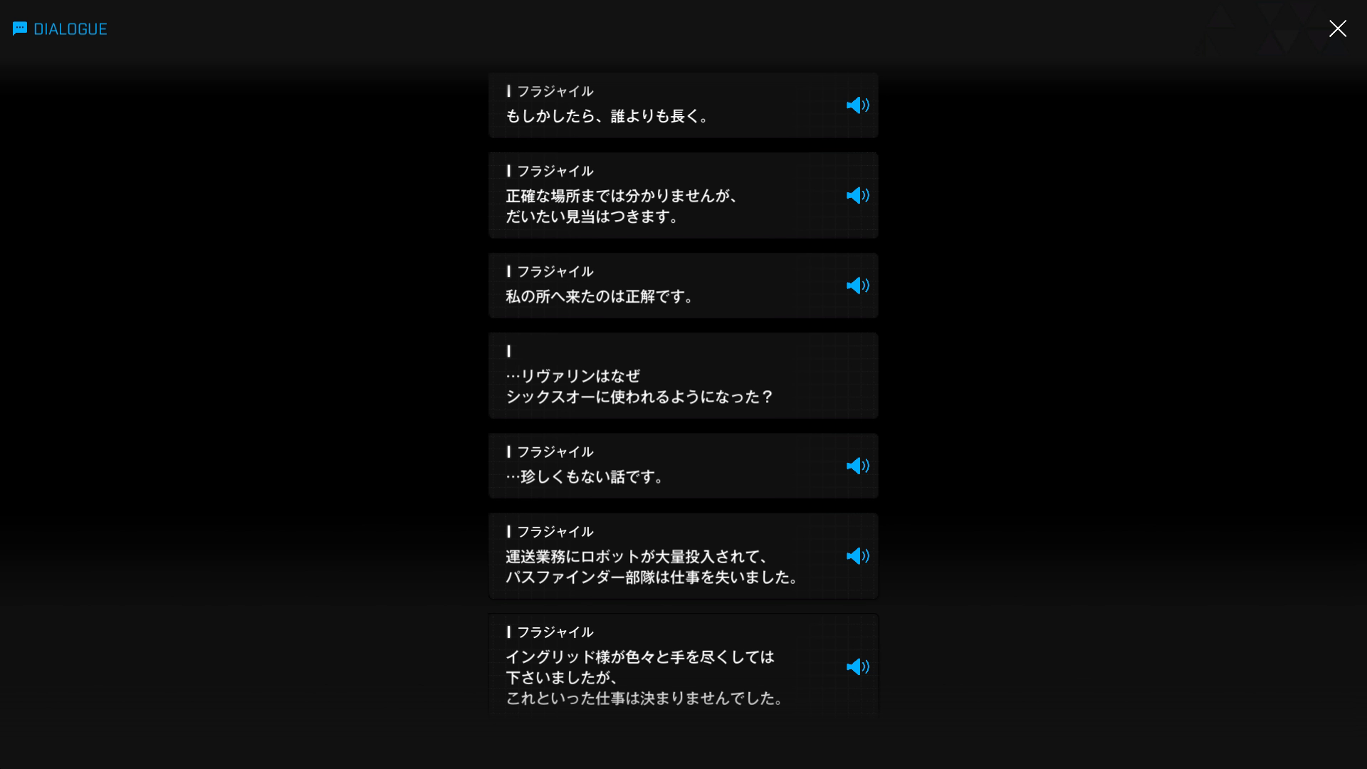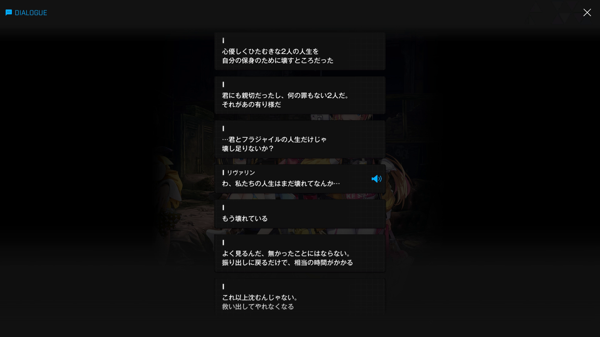 フラジャイルも被害者のように見えるものの、おそらくエニックは「リヴァリンがシックスオーと関わって様々な悪事を働いていることを知りながら、イングリッドに何の相談もせず黙認していた = 結果的に被害を拡大させる遠因」と判断するだろう → 管理人からすれば、『仲の良い友人がいじめ or 万引きなどをしている事実を知りながら、自分の交友関係を壊したくないがゆえに見て見ぬふりをした』クズに相当(運営も最初から未実装扱いで登場させたのかもしれないが、パスファインダー部隊の実装はほぼなくなった or あったとしても『ギルティーのような更生プログラム終了後』と思われる)