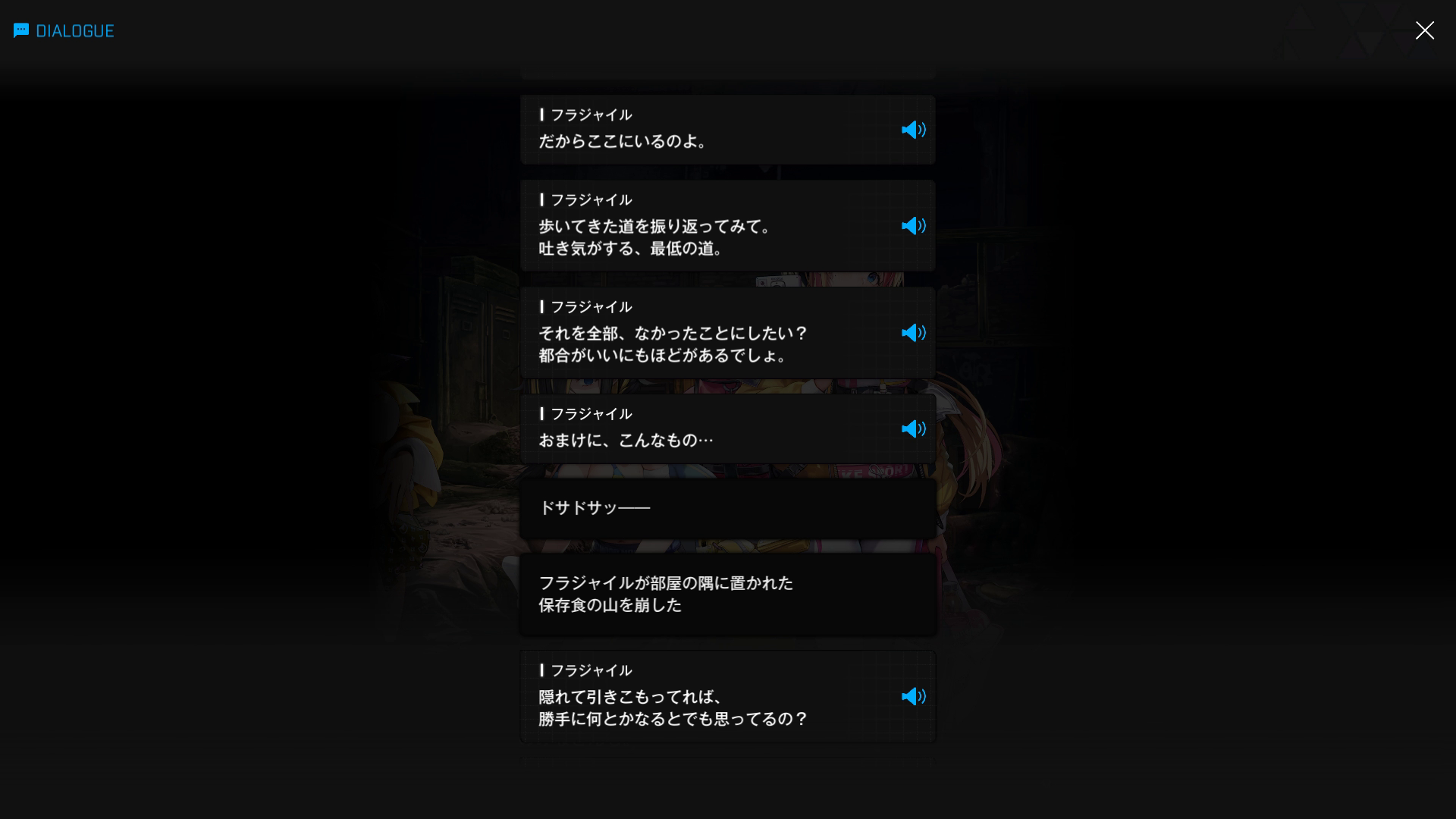 ・フラジャイルから上記のような説教 & ボロクソに言われても、ドクズはまだ非を認めないらしい → 管理人が主人公の立場なら、上記の時点でラピRH達に確保を指示+イングリッド & エニックに連絡を入れただろう