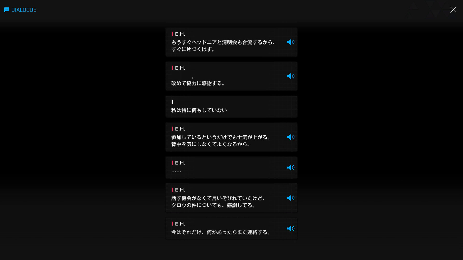 ・途中、E.H.から現状報告を兼ねた通信が入る