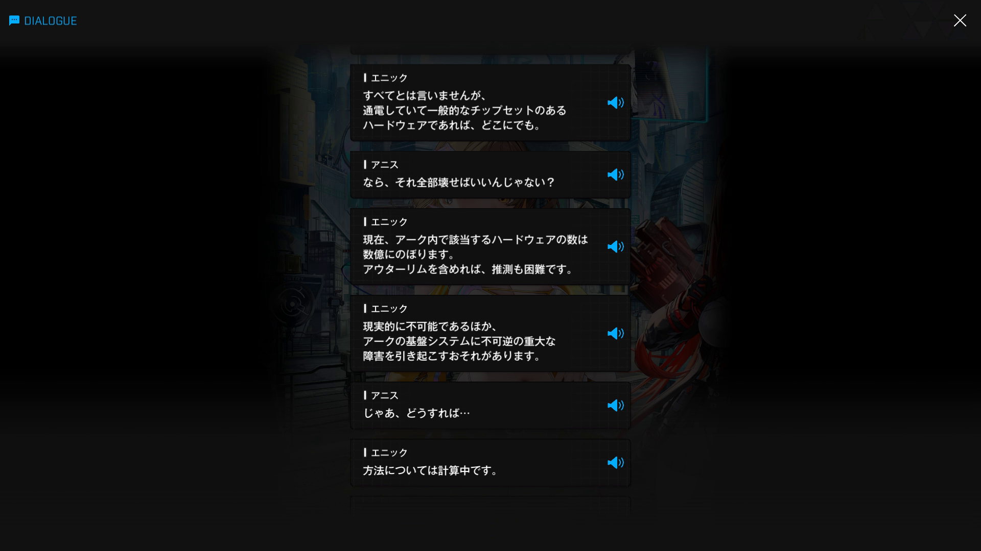 主人公が「アークを止めないか」という提案をするが、具体的な内容はCHAPTER.45以降に