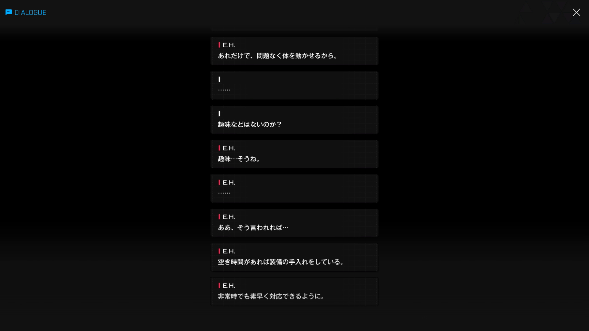 ・イニシャル表記だが、正式な呼び方は『エリシオン・ハーパー』→ なぜ3大企業の1つであるエリシオンの名前を冠しているのかは不明で、さらにアウターリムのテロ組織『Enter Heaven(エンターヘブン)』のリーダーでもあるが、この頭文字も『E.H.』であることは果たして偶然の一致だろうか?