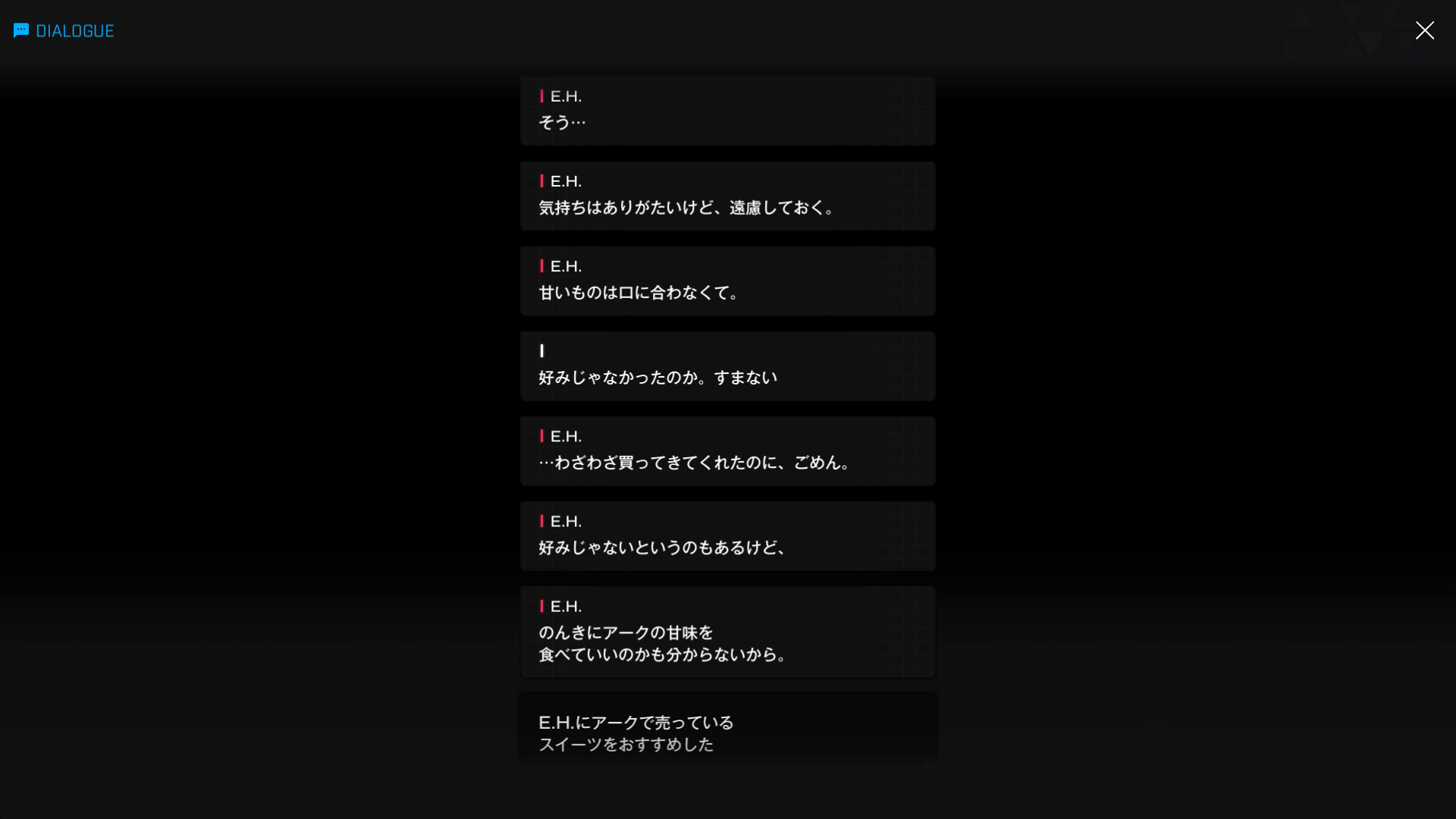 ・「甘いものは口に合わない」とのこと →『食べられない』のではなく、以下SSのような理由による(E.H.面談:16より)