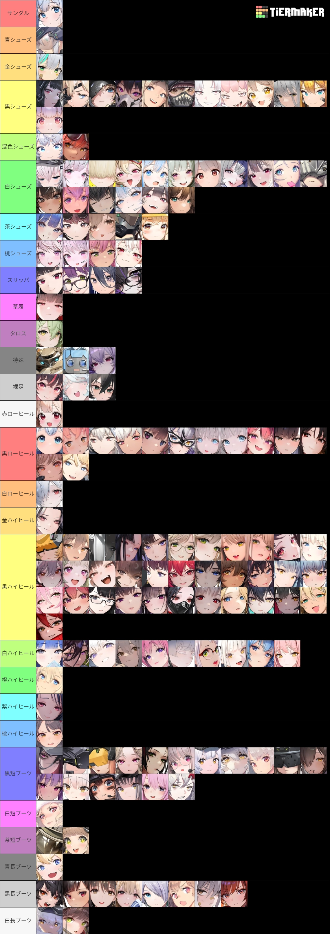 各ニケがどのような靴を履いた状態で戦闘をしているか、気になって夜も眠れなかったため(大嘘)、Tier表にしてみました。