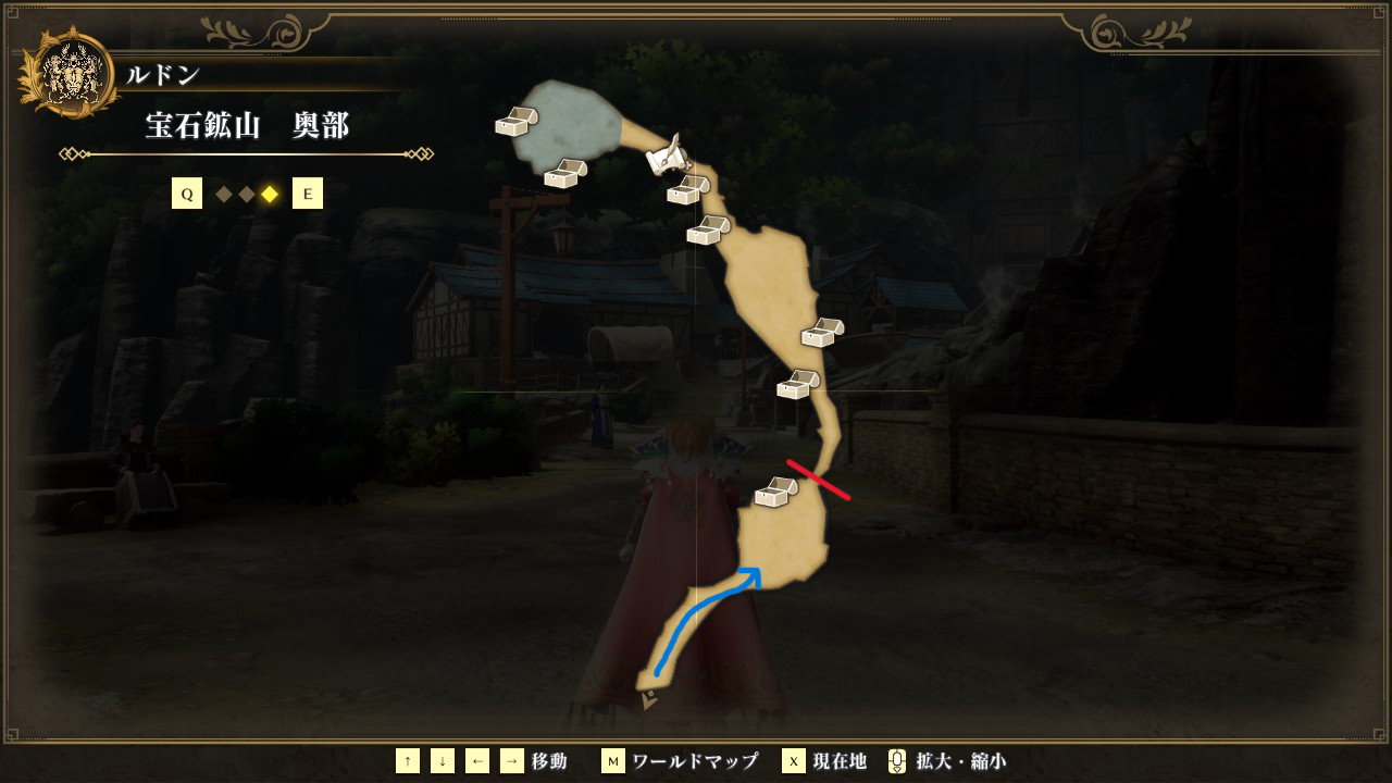 宝石鉱山、クリアすると敵がいなくなるので、宝箱など気にせずボスに向かいます。