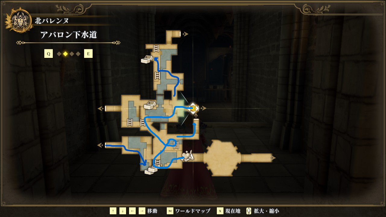 下水道を進む前に、北側の宝箱を取って、アバロン宮殿の牢屋に抜けます。牢屋には宝箱もあります。