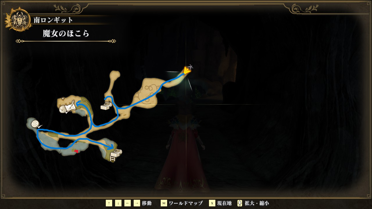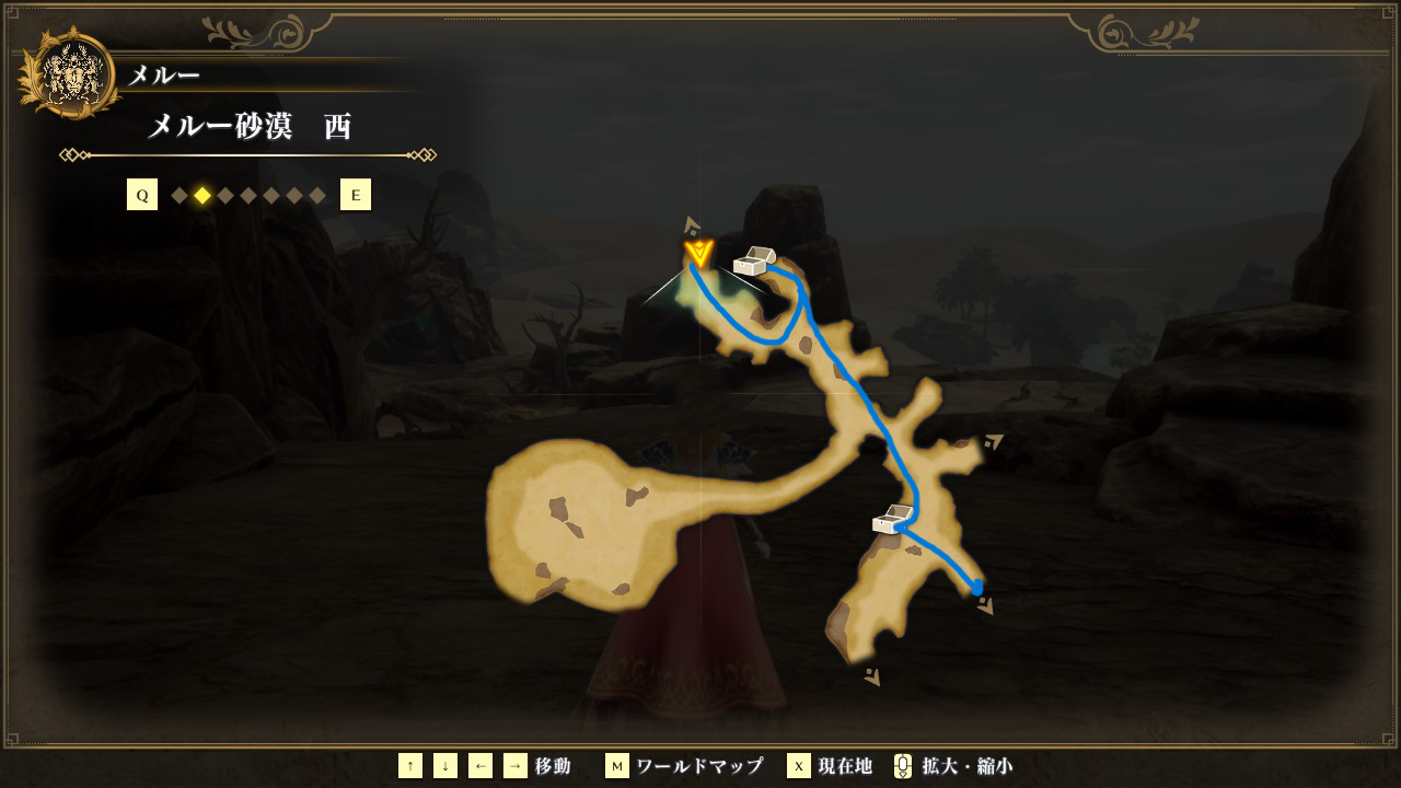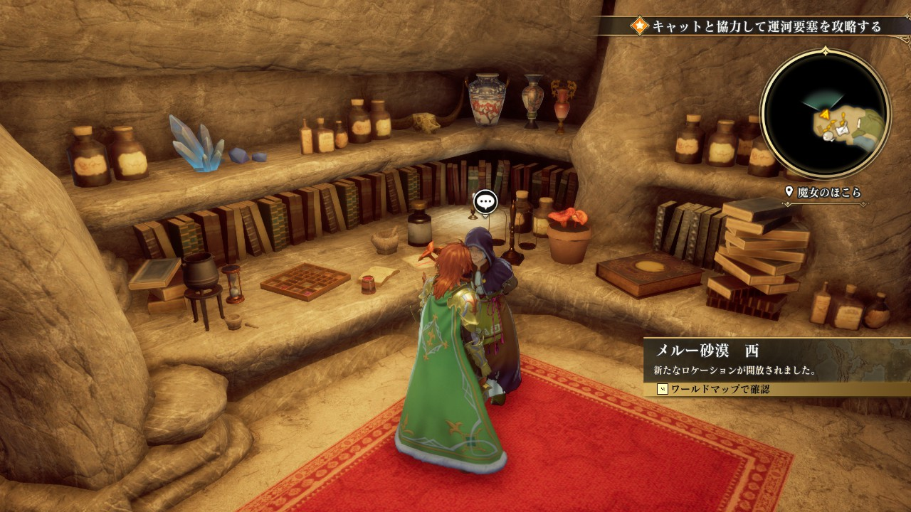 魔女のほこらで魔女に会って、メルー砂漠西の場所を教えてもらいます。
