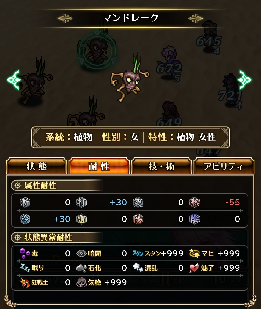 | マンドレーク(耐性) | マンドレーク(技・術) |