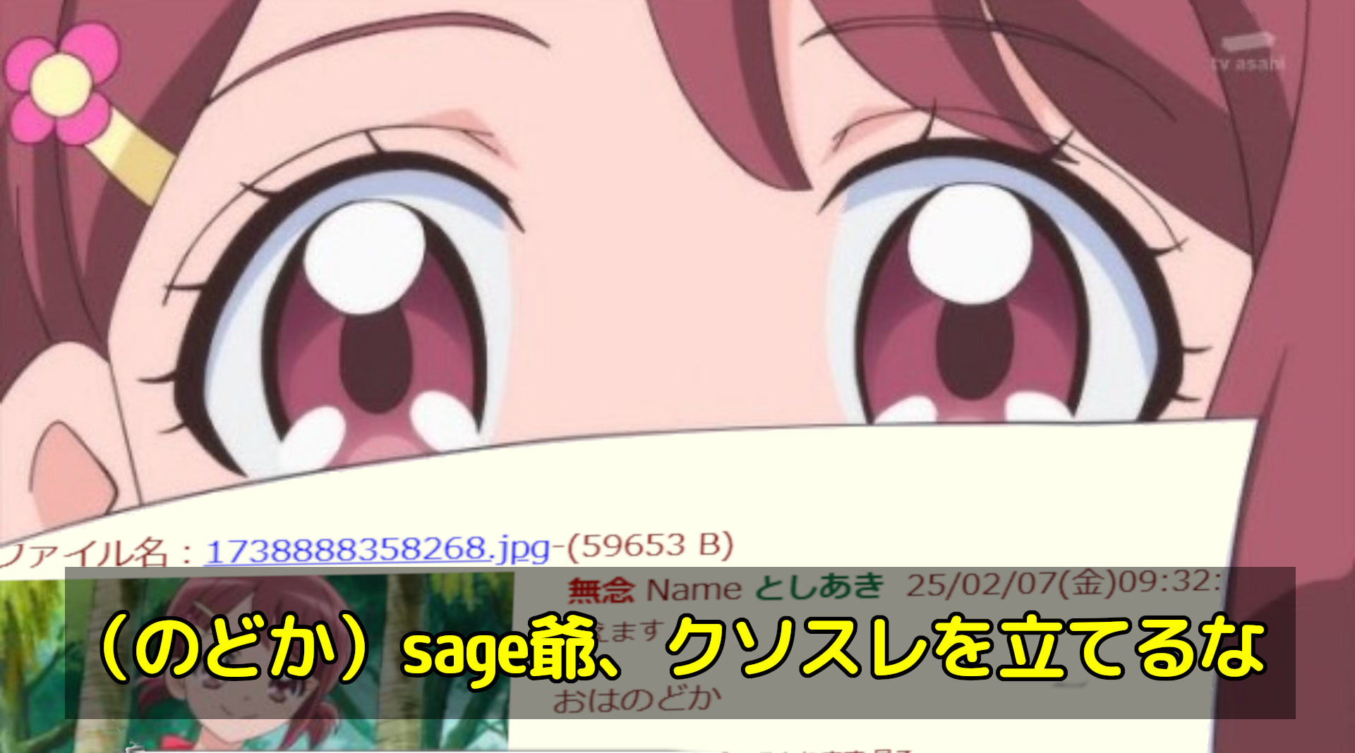 【画像:「おはのどか」スレ内でのsage爺(健全のどか)の様子を揶揄したコラ】
