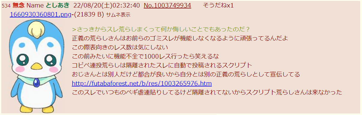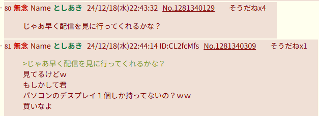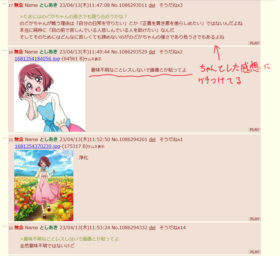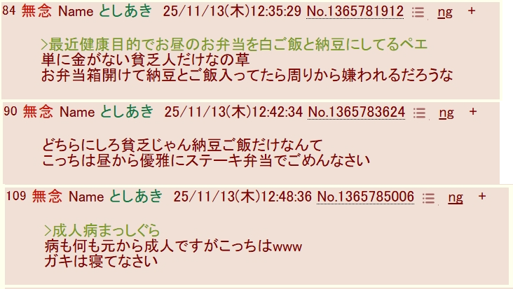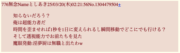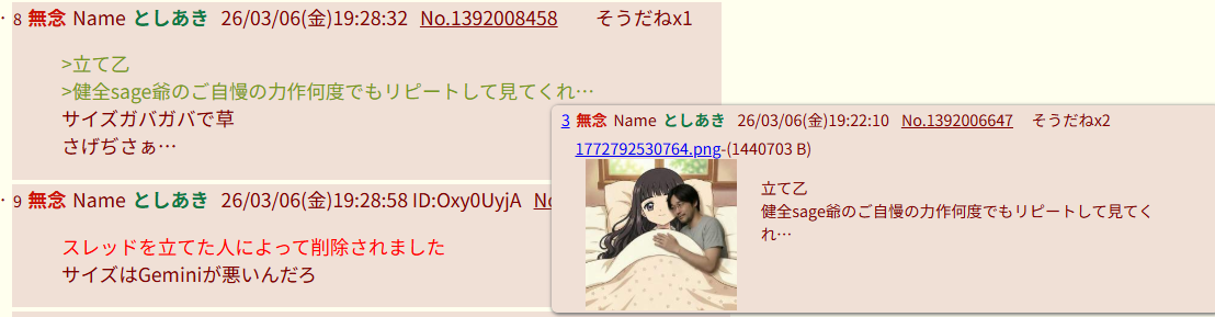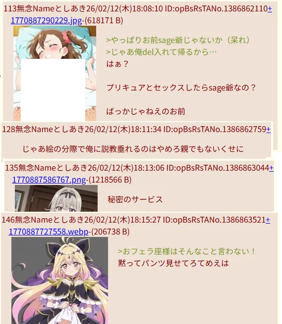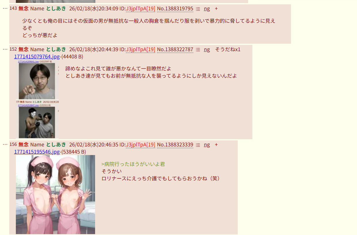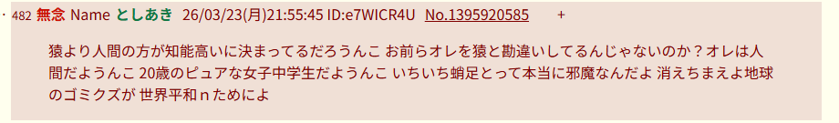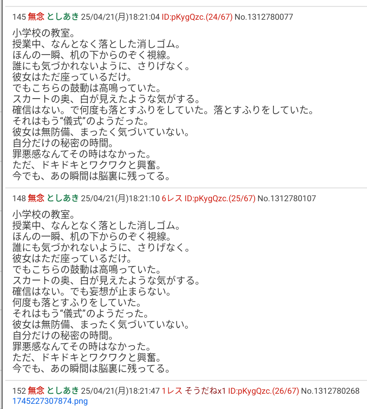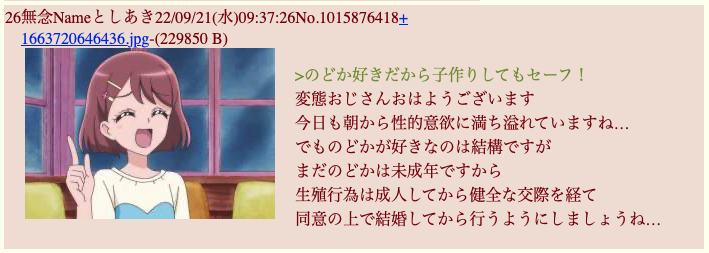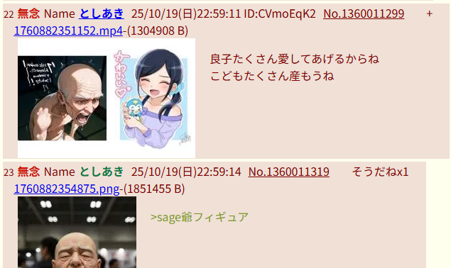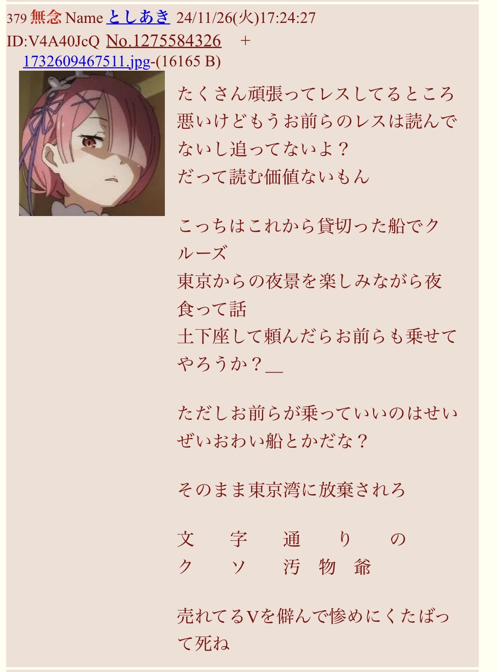 sage爺産「姪」(いつもの妄想)スレの終盤現れた推定女子あきへの精スプ反応。必死過ぎて草。