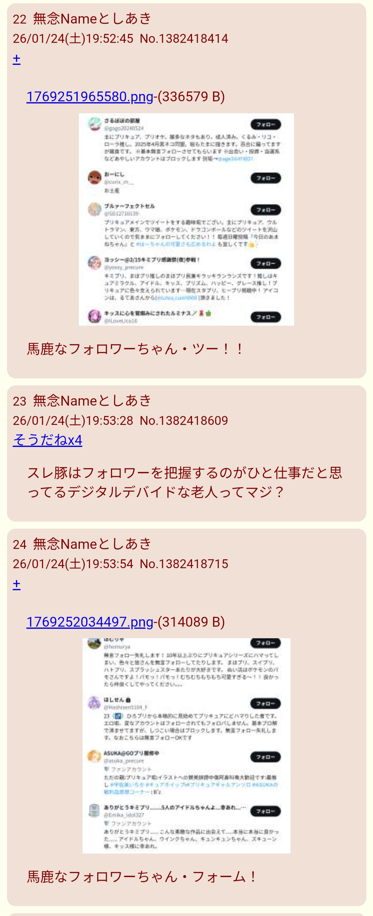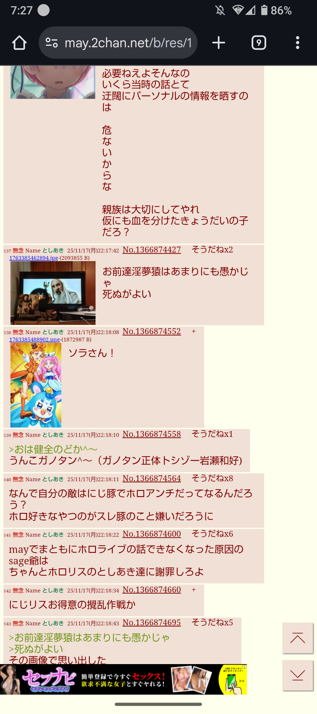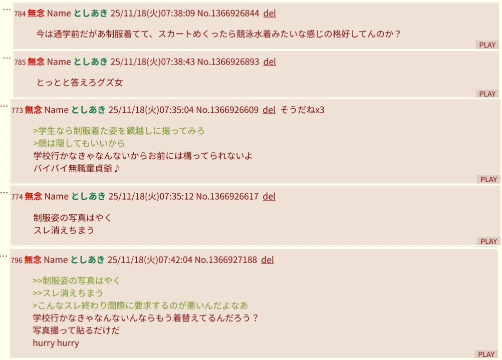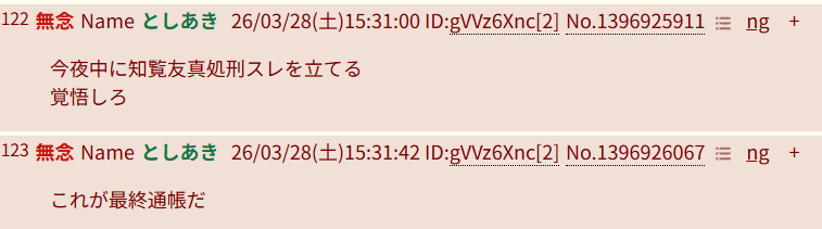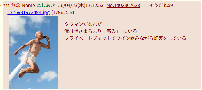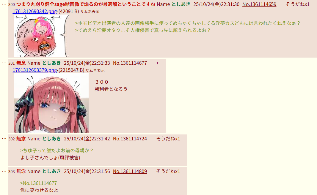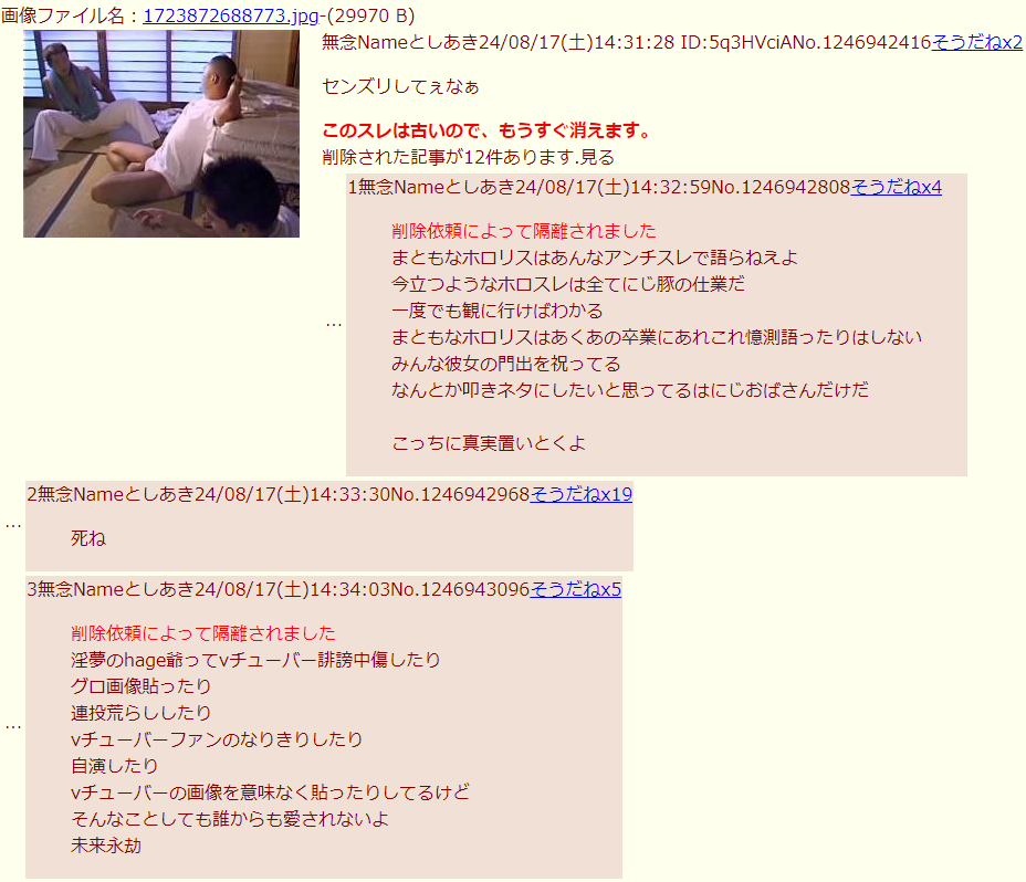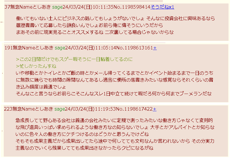 sage爺産「姪」(いつもの妄想)スレの終盤現れた推定女子あきへの精スプ反応。必死過ぎて草。