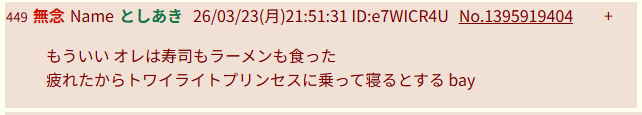 刑務所モノの受刑者のようにラーメンが自由に食べられないような生活でもしているのかも知れない。イラストを貼れば食べたことにでもなると考えているかのような言動がしばしば観測されている。