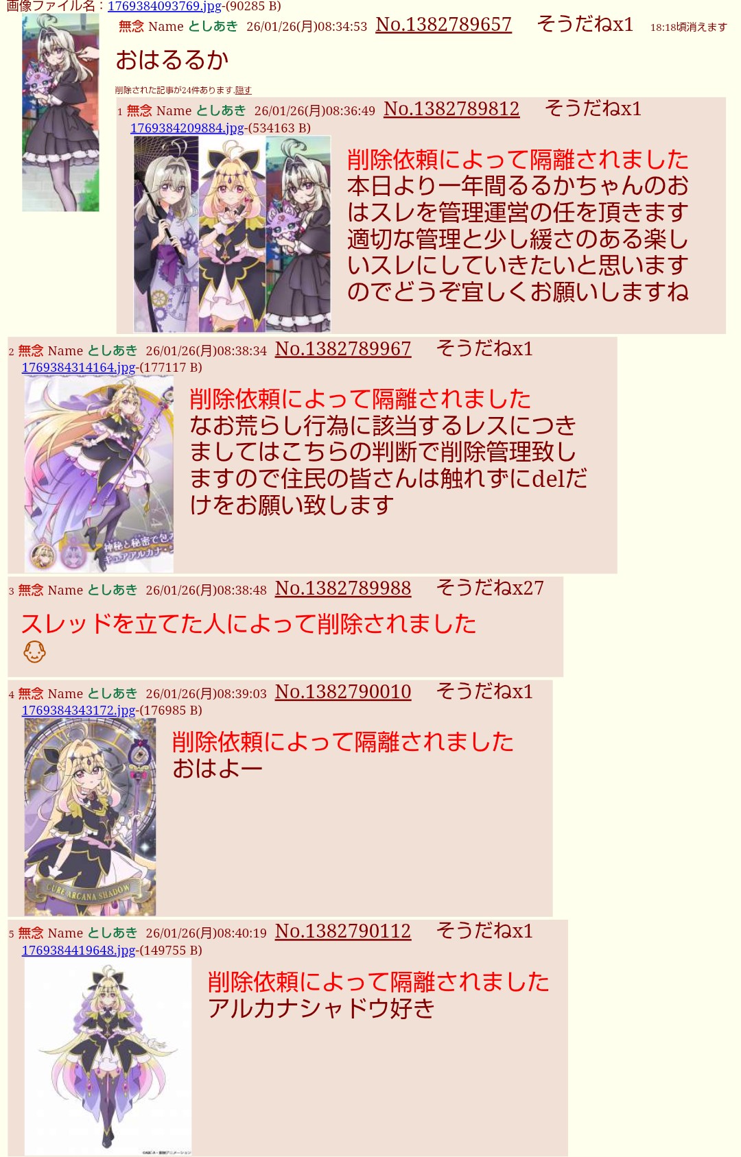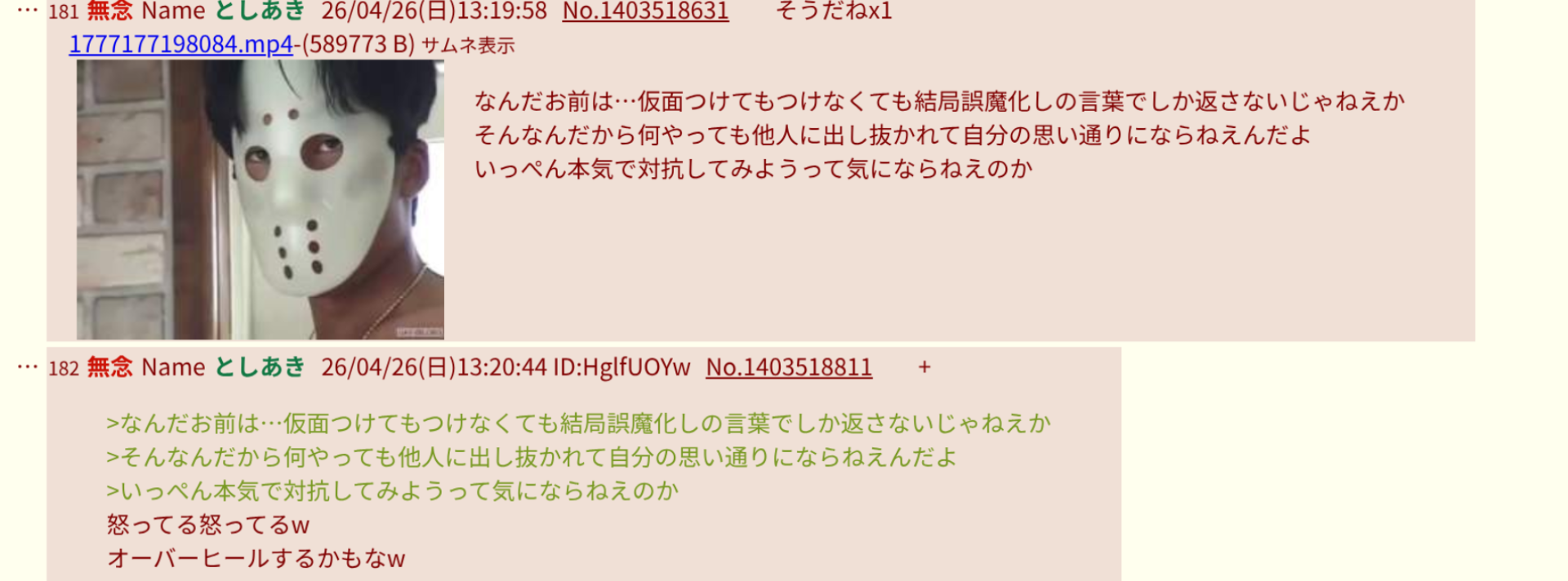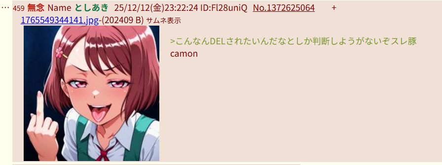 「おはのどか」スレ内での発言。delに怯える様子が見える見える…。